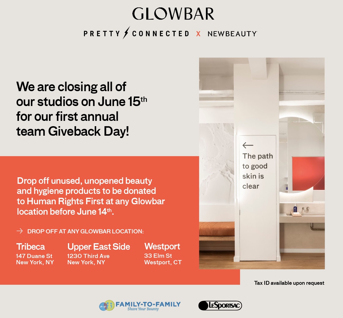 We’re partnering with Glowbar and NewBeauty magazine to collect your new beauty products to donate to refugee families in NYC through Human Rights First.