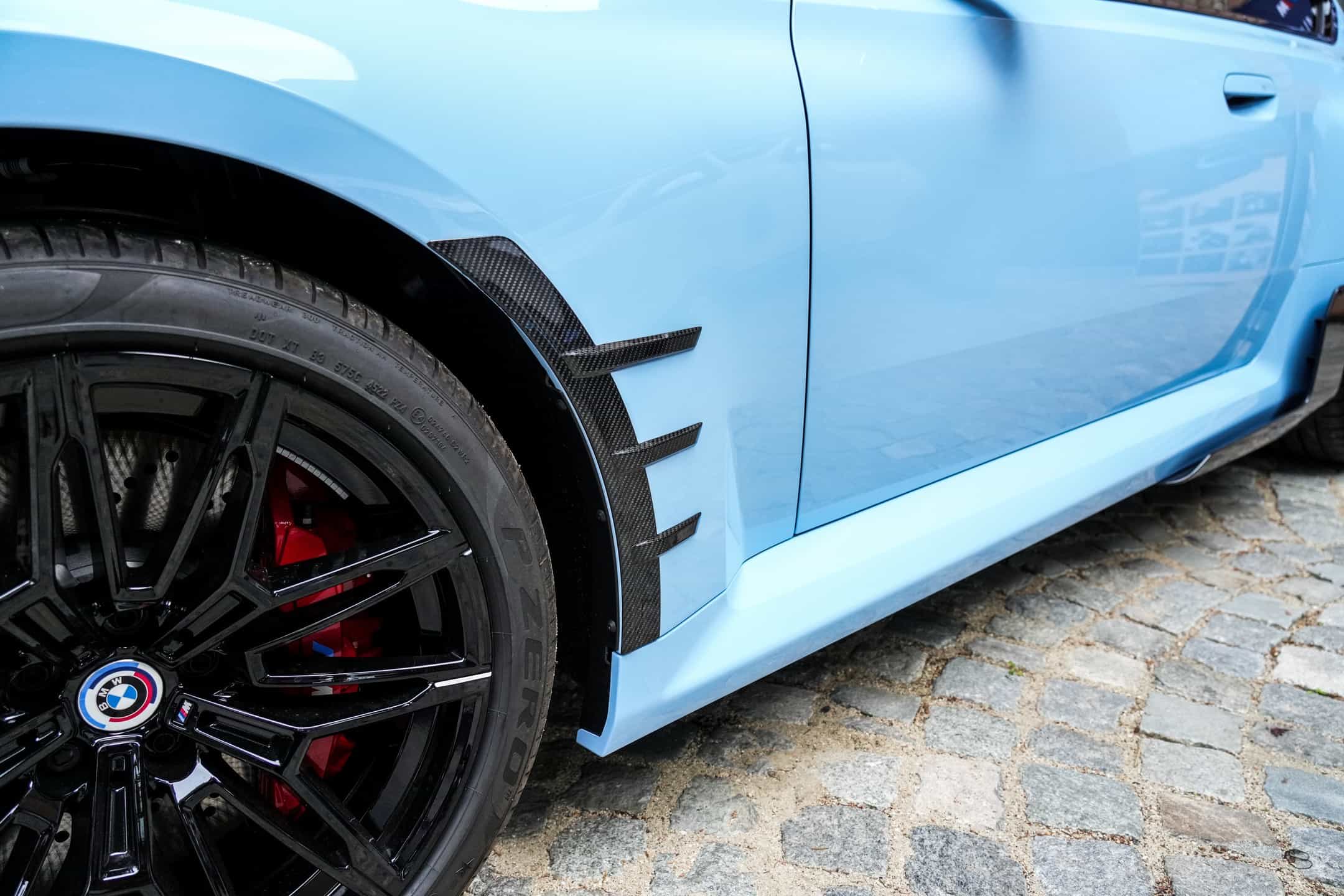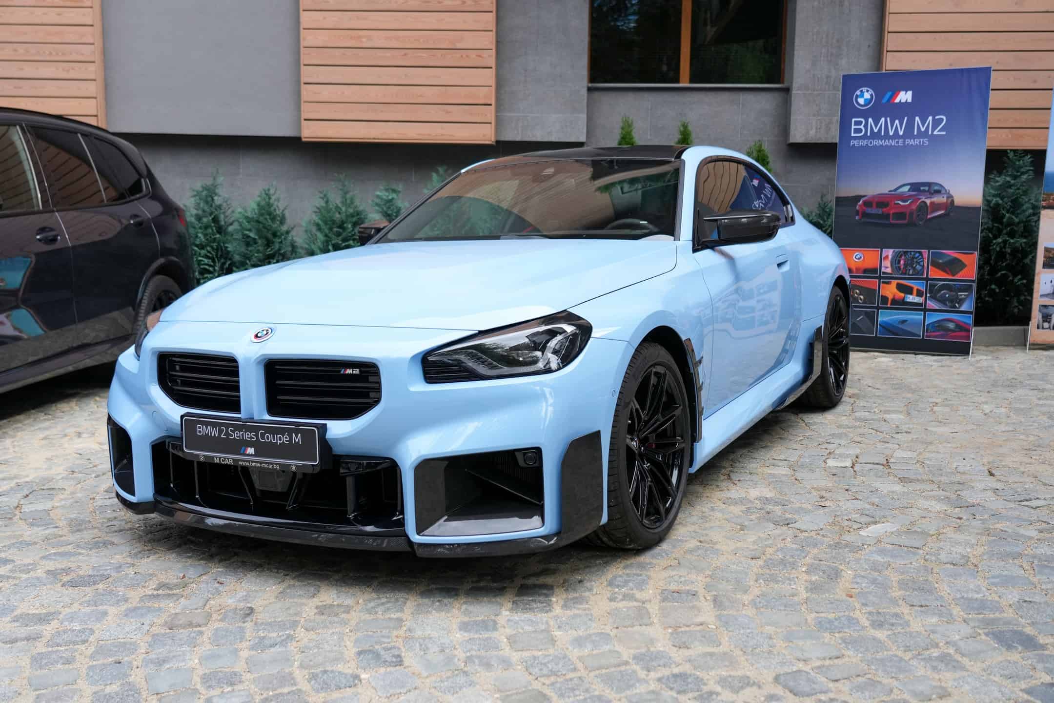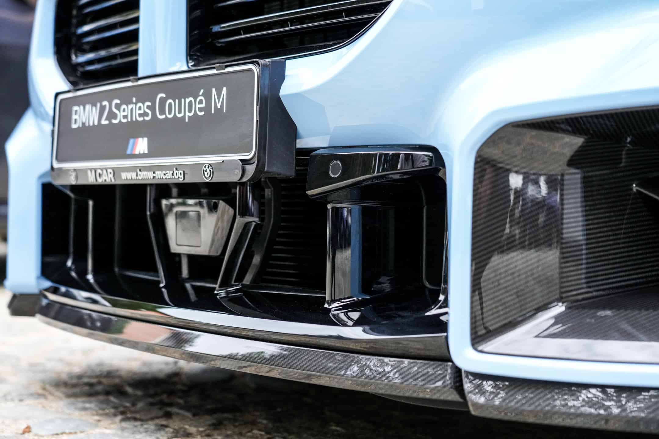 A media event held in Bulgaria was a great opportunity for BMW to show a second-generation M2 loaded with M Performance Parts. This pricey G87 build is painted in the exclusive Zandvoort Blue color and also happens to have the anniversary roundel introduced in 2022 when the M division celebrated its 50th anniversary. The 19-inch front and 20-inch rear wheels are the stock set (930M style) with a double-spoke design and Jet Black finish.