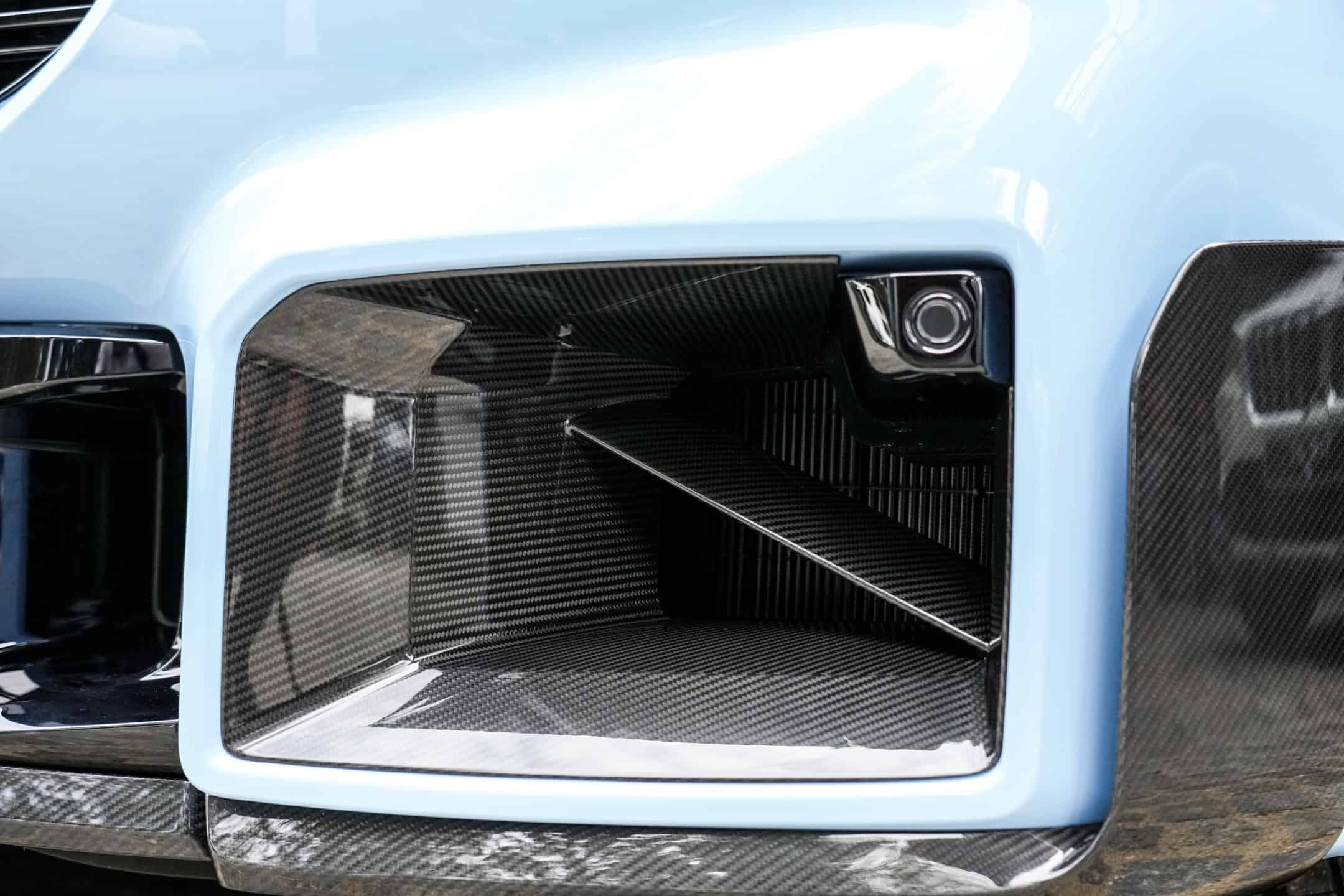 This kitted-out M2 has nearly all of the exterior M Performance upgrades BMW is offering for the sports coupe. The carbon add-ons vary from the front bumper attachment with end plates to side spats and a rear diffuser – all of which are made from carbon fiber. It’s the same story with the rectangular air intakes, side mirror caps, and the roof.