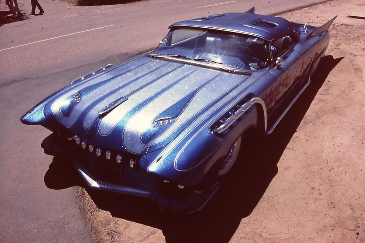 Oncoming drivers could be forgiven for wondering whether Bob Bowen’s speeding 1960 Cadillac is real or hallucinatory. Under construction all during the Jaws movie mania, the radical kustom debuted in 1978 as “Vendetta 9”. “But everybody called it ‘Jaws’ or ‘Shark,'” said builder Frank DeRosa, Sr. He gave into a name change after someone exclaimed that the car “looked like it could sneak up behind a Volkswagen, open its jaws, eat the whole car, and spit out the tires!” A 2023 Kustomrama picture showed the Shark-mobile alive, though not at all well after decades of outdoor docking in the Pacific Northwest.