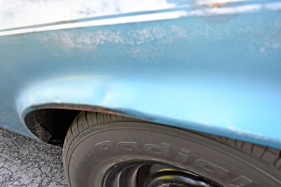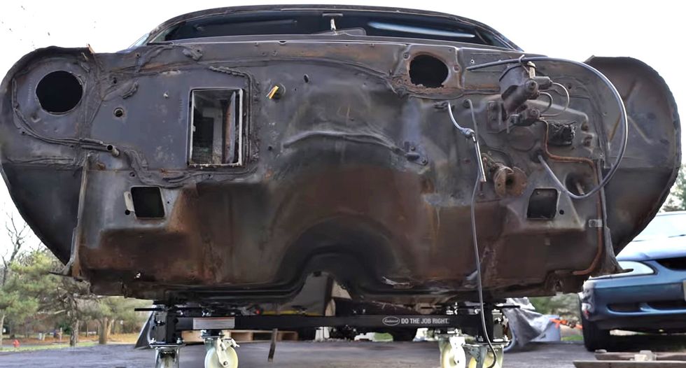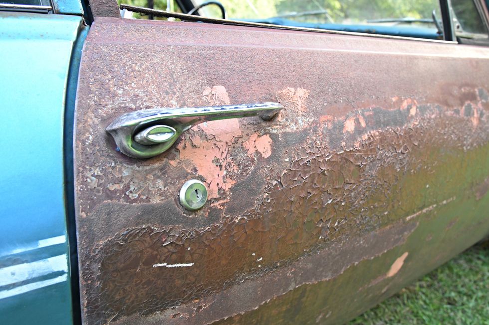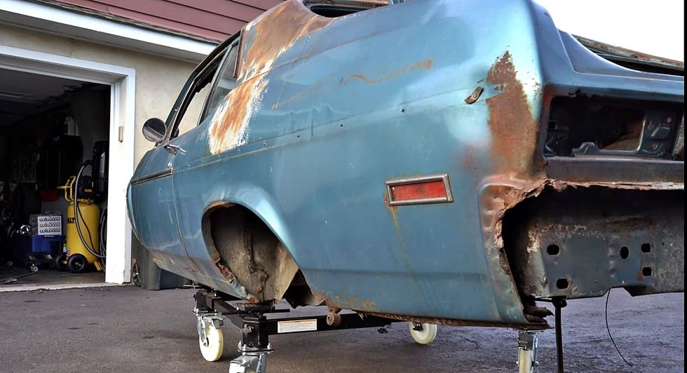 Once back home, Dan dug right into the mess. “I started a new YouTube series on this ride right from the start. It was a budget build to say the least, so I did all the repairs to the body, building floors and cleaning up the rust.” The front clip, passenger door, and deck lid were taken from a parts car and are all in “the rough”. The engine, a base model 210-horsepower 327 small-block, was pulled from a 1968 Camaro that was undergoing an LS swap, and the Saginaw four-speed was donated to the cause from one of Dan’s friends.
