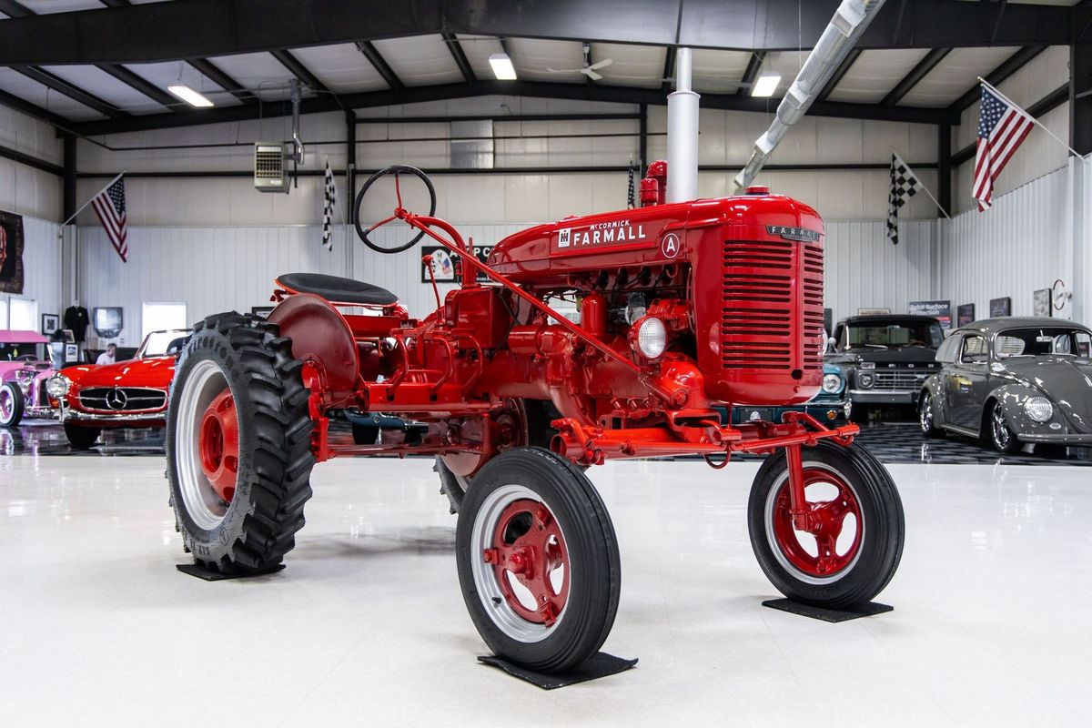 This Farmall A features a recent restoration in the classic McCormick red color. It is powered by a 1.9-liter inline four-cylinder engine coupled to a four-speed transmission. The clutch is said to be original but working as it should. Known as a “Row Crop” tractor, this Farmall features a wide front end. The simple tractor looks especially clean in the photos and Marc Schiliro of MS Classic Cars considers the restoration to be of “show quality” and says that it “presents beautifully, but it’s not a concours restoration.”