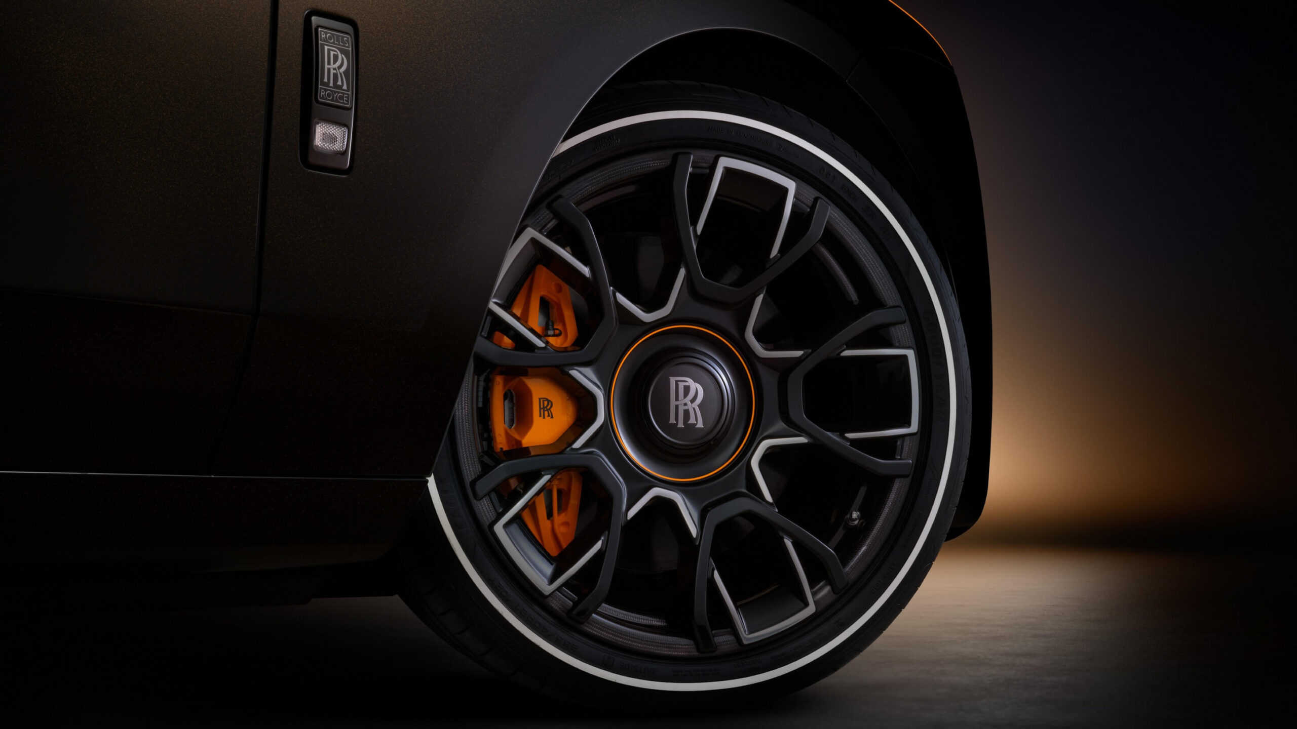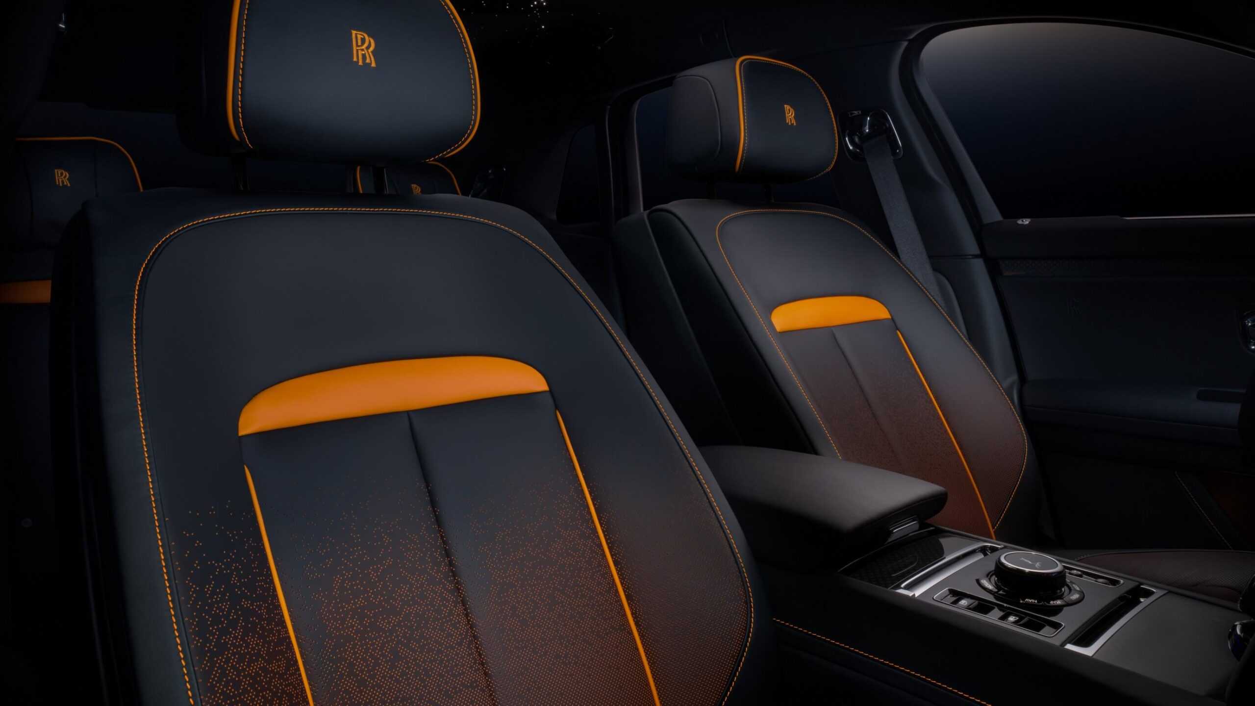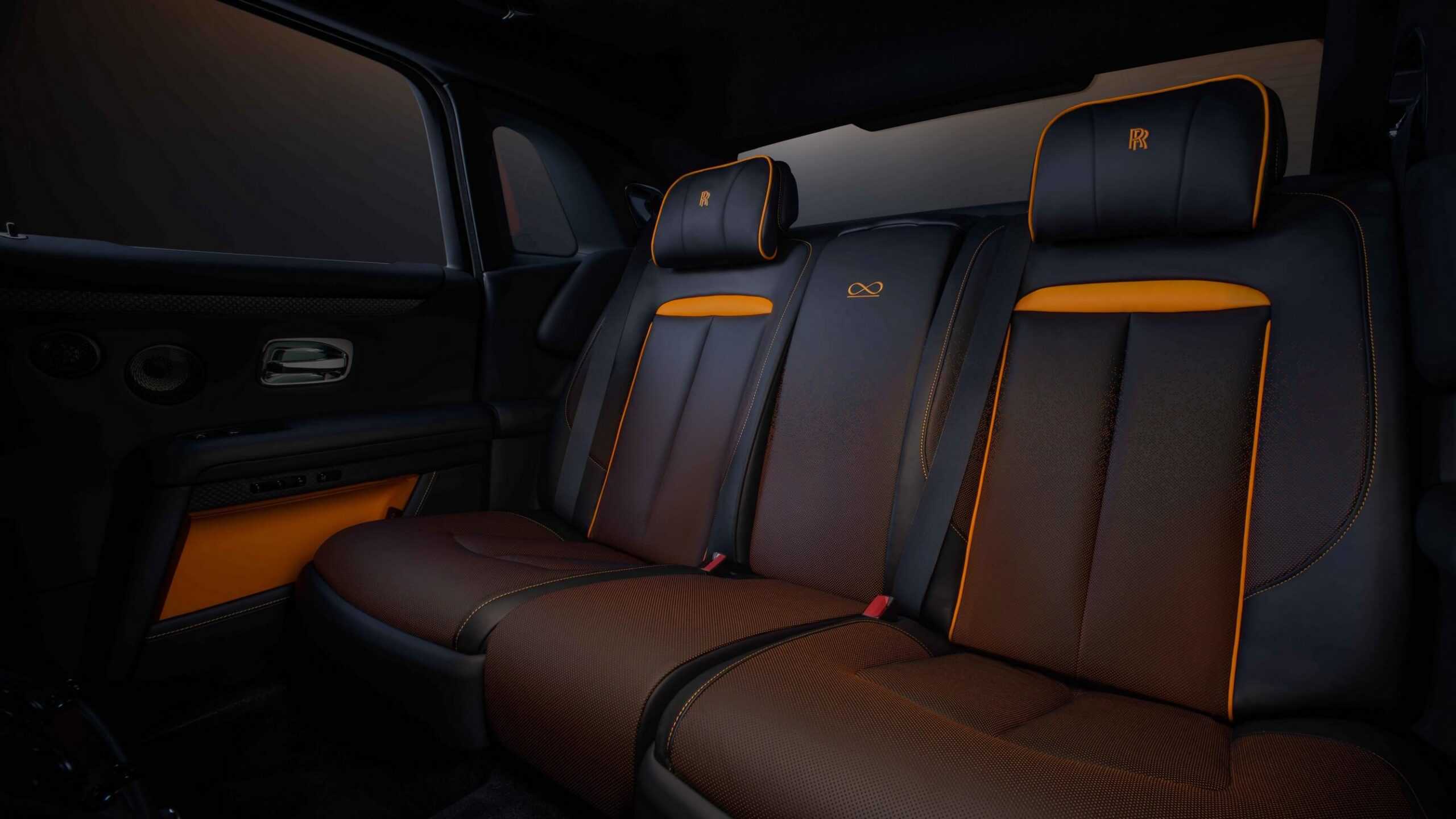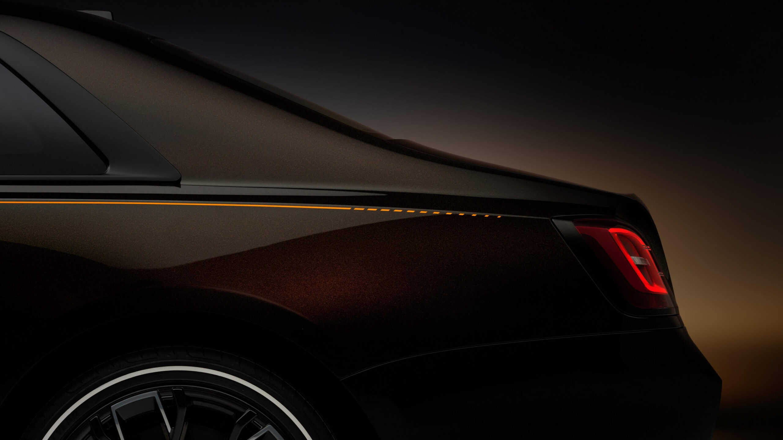 Rolls-Royce has given the sumptuous sedan a Lyrical Copper paint with powdered copper pigment. Depending on how the light hits the body, the color appears darker or brighter. The special hue has been combined with Mandarin accents noticeable on the brake calipers, below the grille, and for the coachline painted by hand. The line is interrupted on the rear fenders to echo the transition from sunlight to darkness.