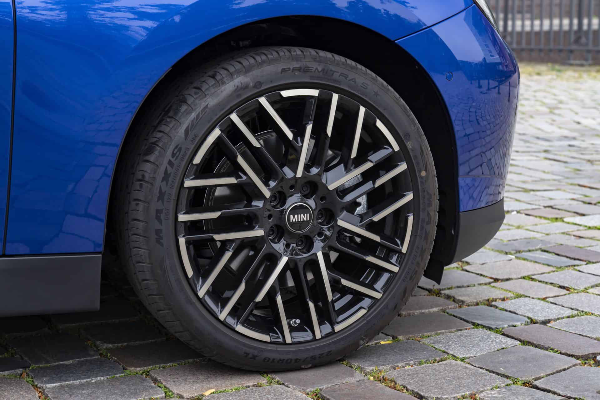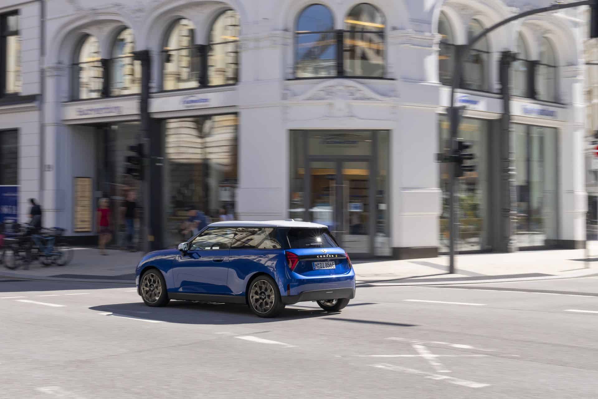 This 2024 Cooper SE painted in Blazing Blue is very much a MINI from every angle, including inside where the dashboard layout harkens back to the classic models before the BMW era. Taking center stage in the minimalist interior is a 9.4-inch circular OLED developed by Samsung and running on the MINI Operating System 9. The large screen hasn’t swallowed all conventional controls since there’s a toggle bar below it from where you’ll access the most often-used functions: parking brake, gear selector, start/stop, volume control, and the experience mode toggle. Because there’s no gear lever anymore, MINI was able to free up space between the front seats for extra storage capacity in the center console. You know have bigger cup holders, a wireless charging pad for your smartphone, and four trims to choose from: Essential, Classic, Favoured, and JCW. These also bring a subset of changes to the exterior.