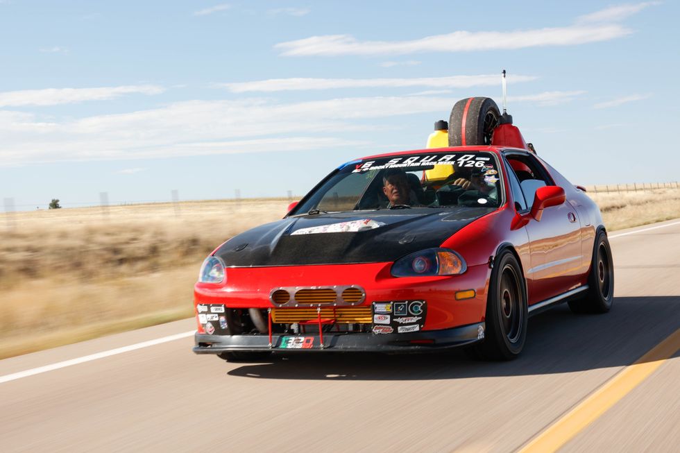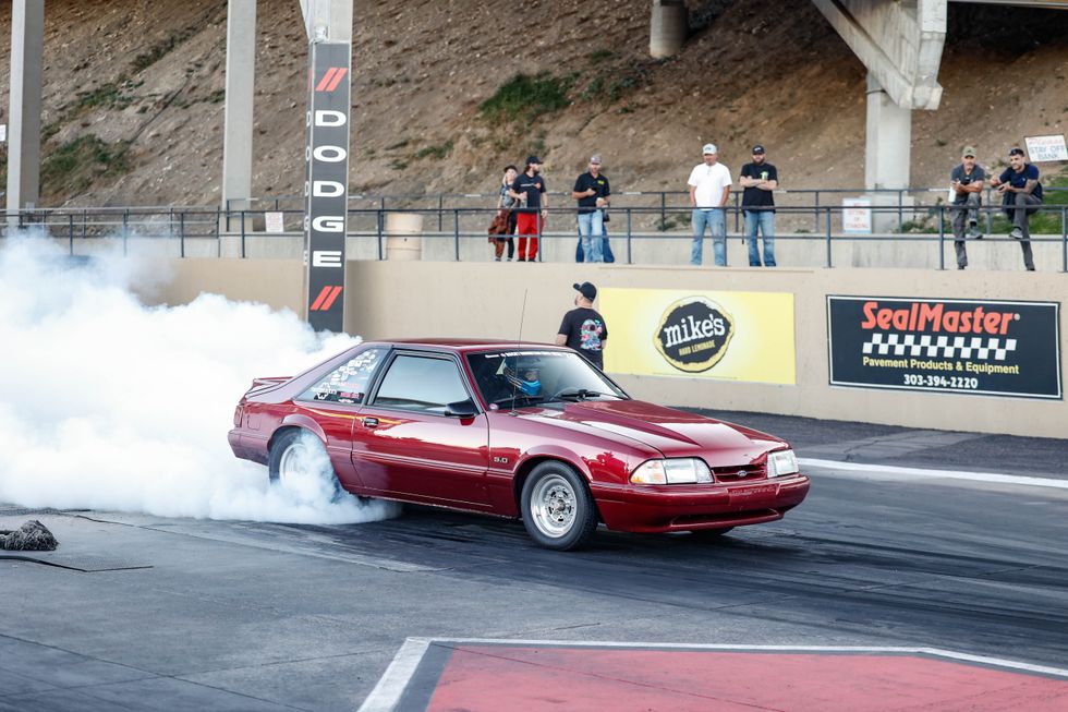 Day two took racers 400-miles to Kearney Nebraska, where, on day three, competitors were greeted with favorable weather, an excited crowd, and a well-prepped track at Kearney Raceway Park. The roar of engines echoed through the cornfields as participants prepared to give it their all. Jason Hurley, driving his 1985 Pontiac Firebird, held his place as fastest overall and first in the Unlimited class with an average of 7.283. As the convoy of racers embarked on the journey from Kearney to Denver, the skies had other plans, unleashing a torrential downpour that painted the asphalt with a treacherous sheen. Those running drag radials or slicks found themselves at the mercy of the rains, but everyone eventually made it to Denver, Colorado to race at the famed Bandimere Speedway, amidst a picturesque Rocky Mountain backdrop.