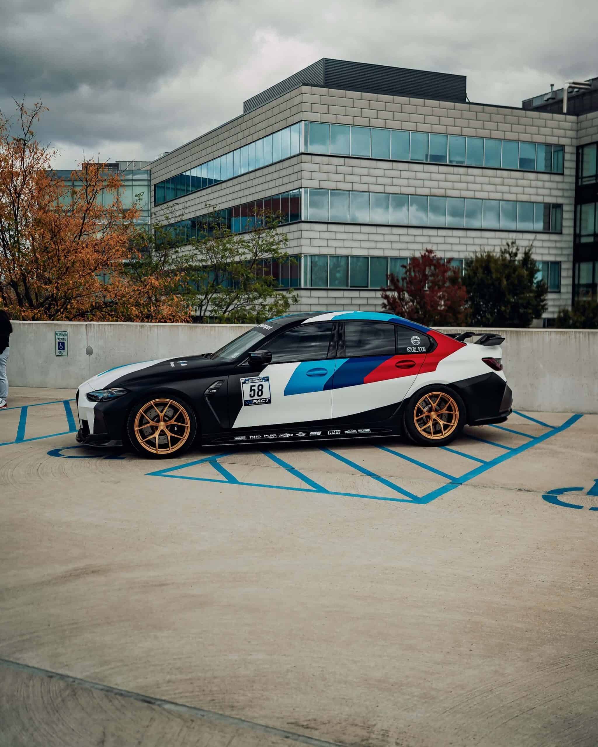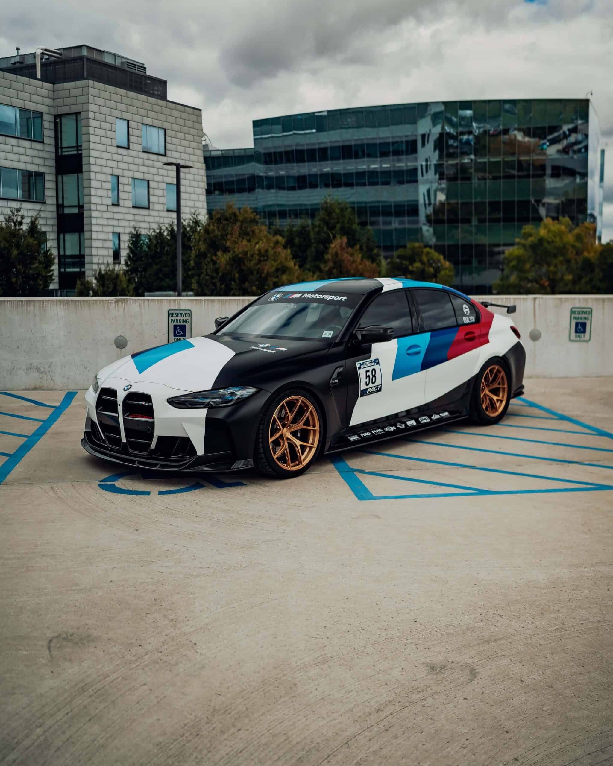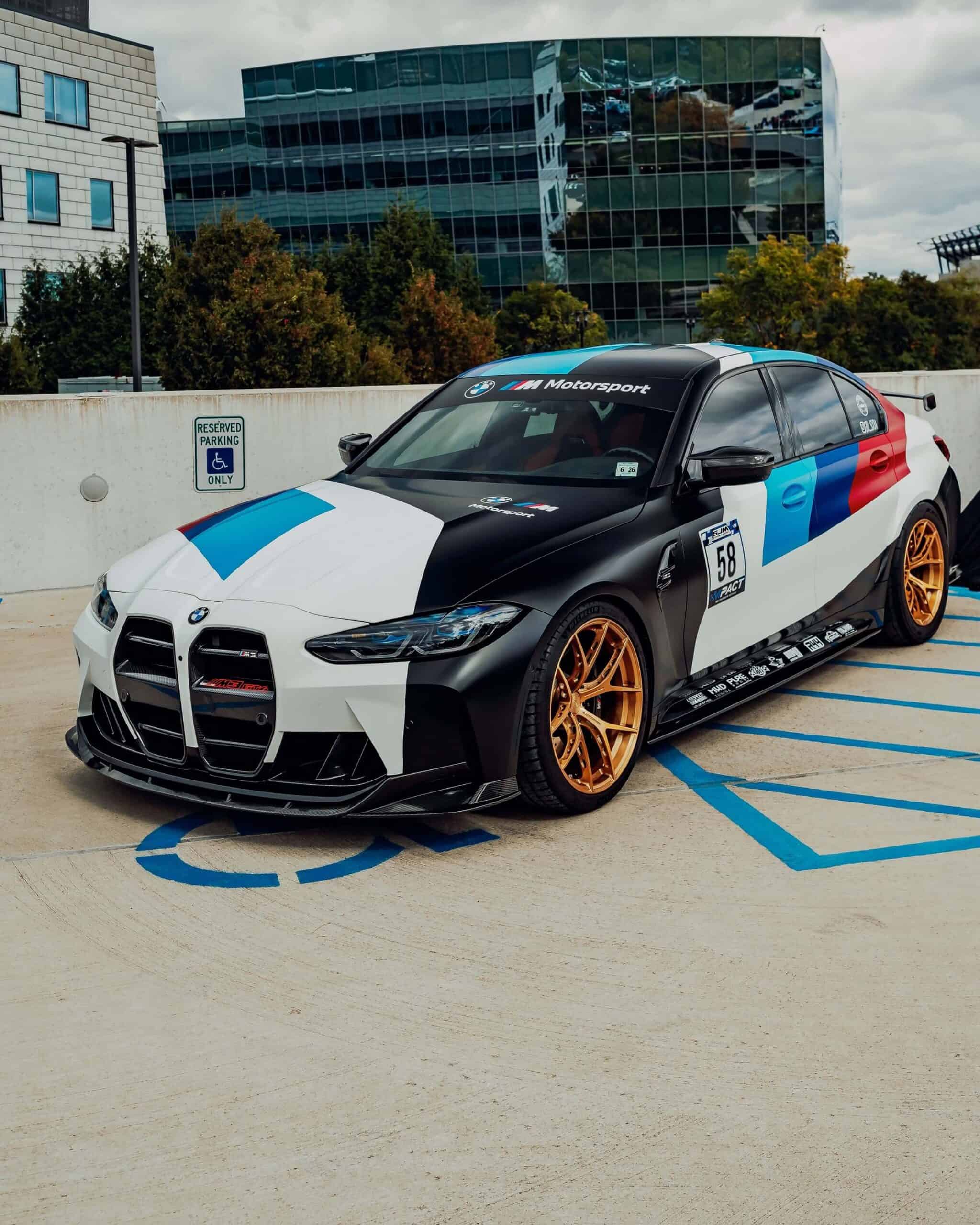 The high-performance saloon features a full body wrap that takes inspiration from BMW’s own M4 GT3 and GT4 race cars. It has an impressively long list of mods that includes everything from a body kit and forged lightweight wheels to a rear wing and yellow daytime running lights. It’s not all show without any extra go as the S58 engine has been fully built with hybrid turbos and other changes that have boosted output to an enormous 900 hp at the wheels.