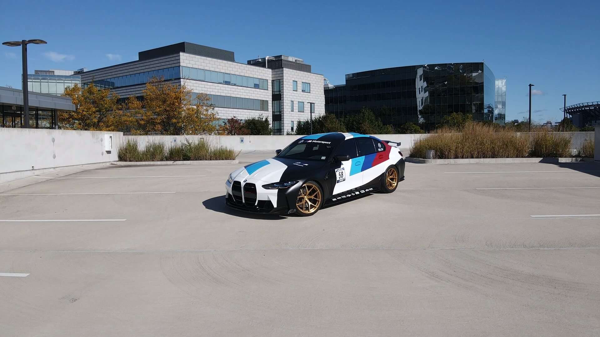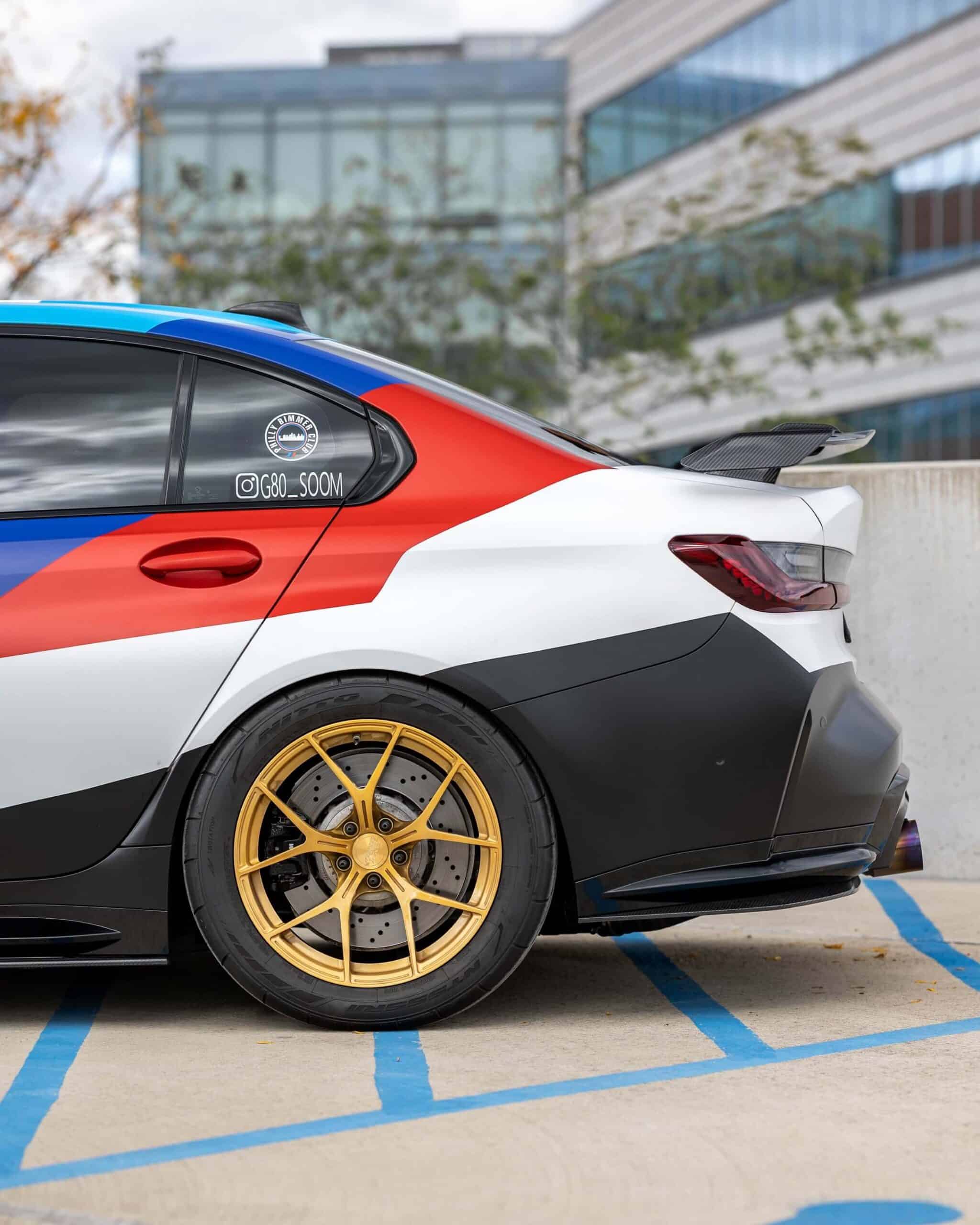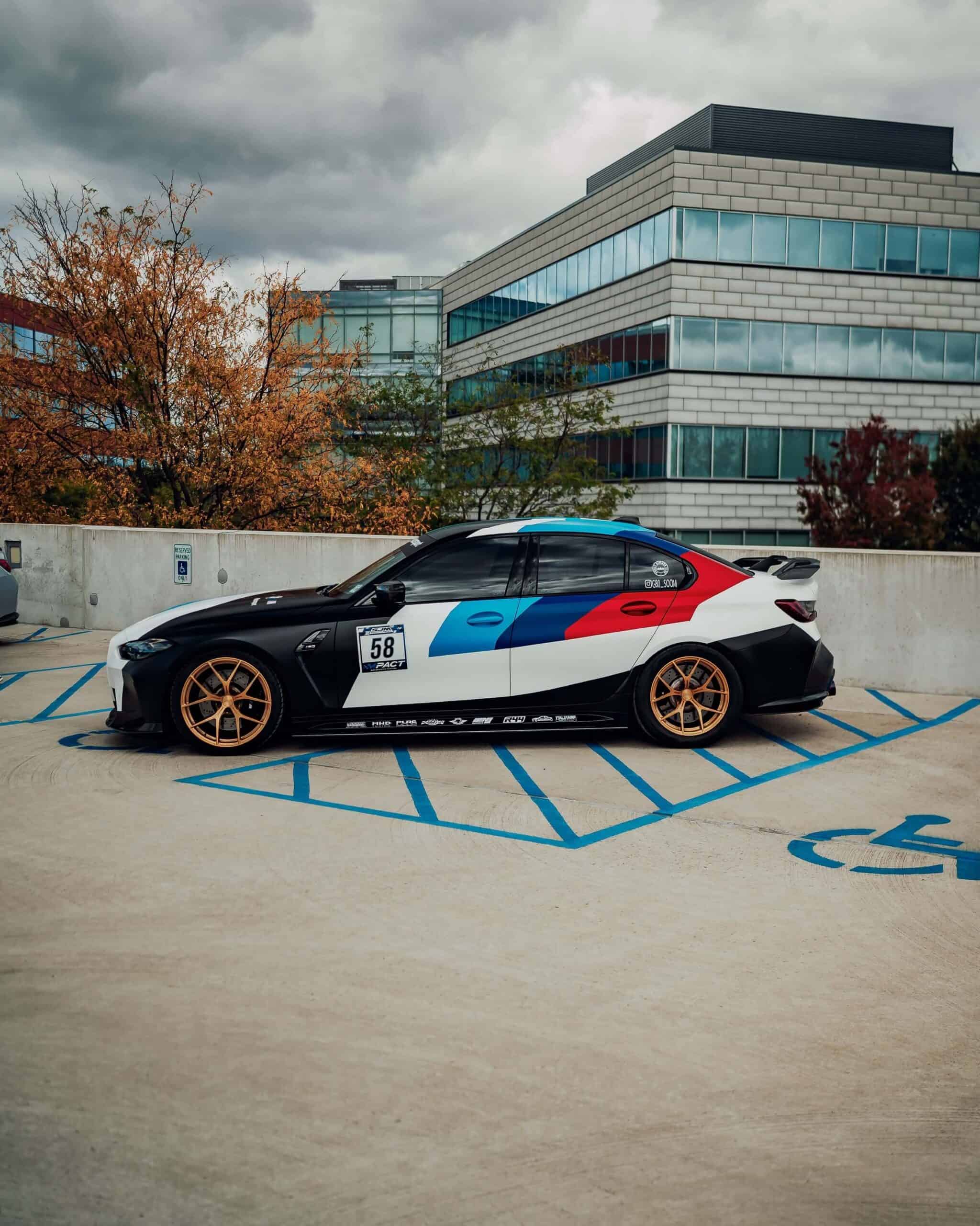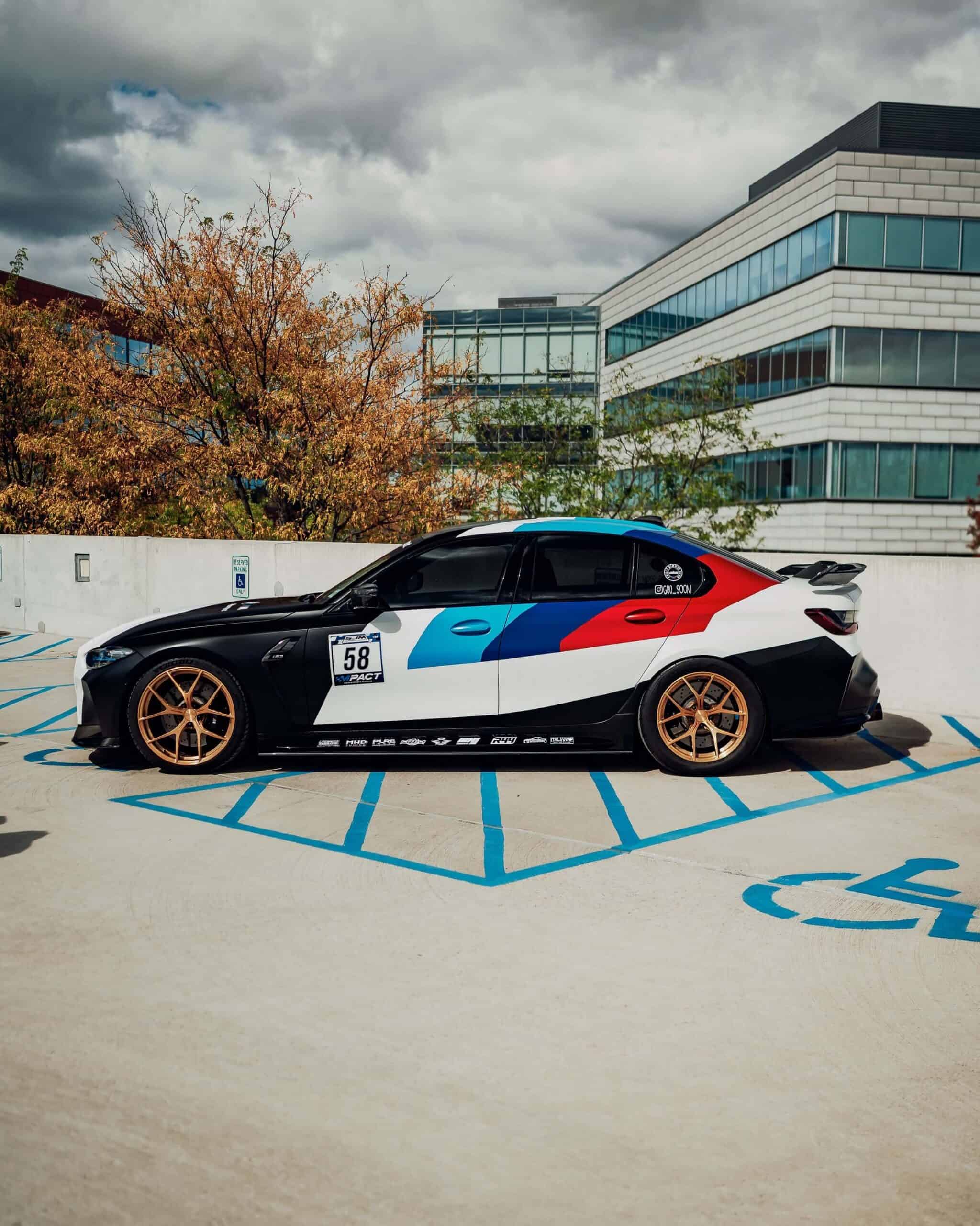 The high-performance saloon features a full body wrap that takes inspiration from BMW’s own M4 GT3 and GT4 race cars. It has an impressively long list of mods that includes everything from a body kit and forged lightweight wheels to a rear wing and yellow daytime running lights. It’s not all show without any extra go as the S58 engine has been fully built with hybrid turbos and other changes that have boosted output to an enormous 900 hp at the wheels.