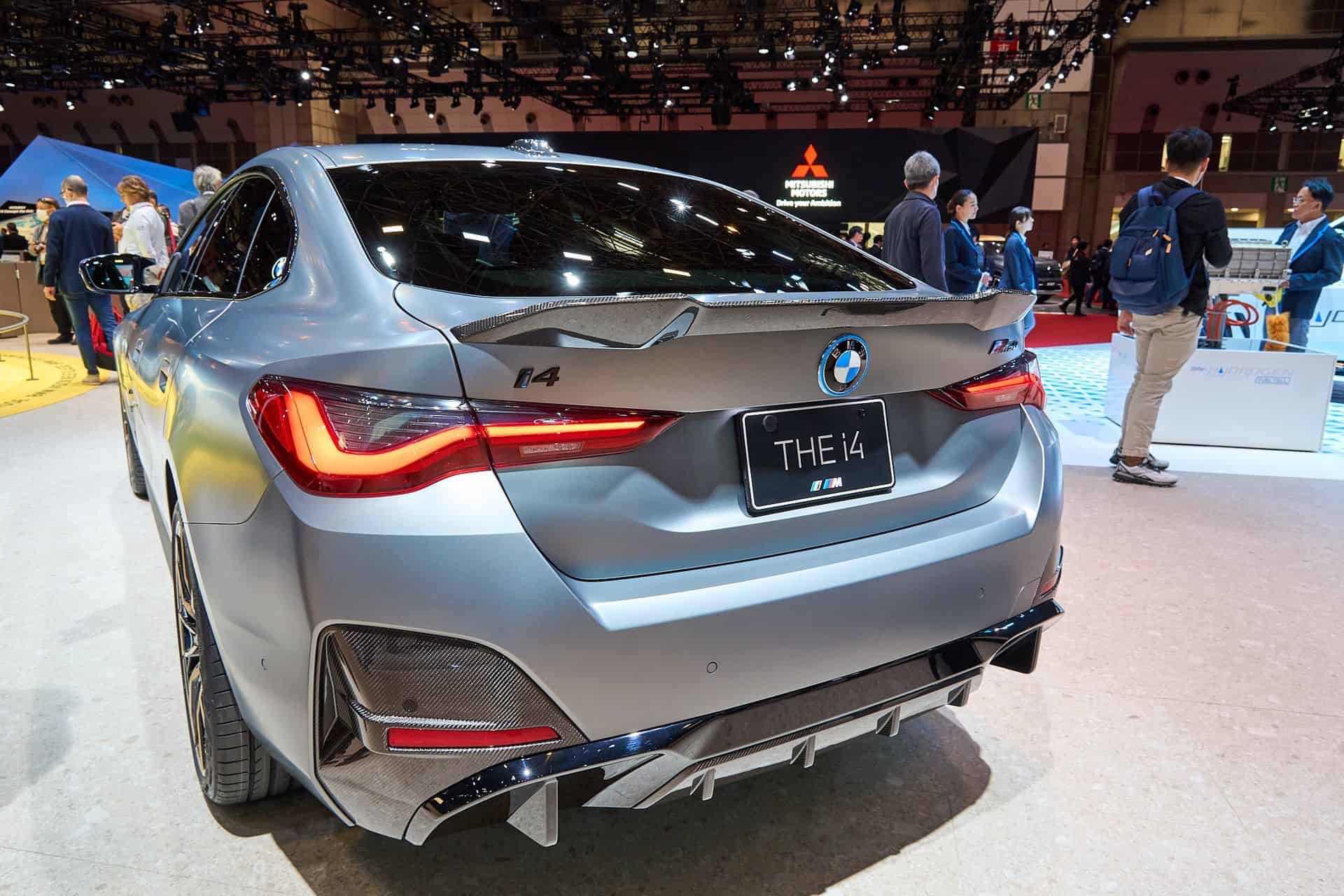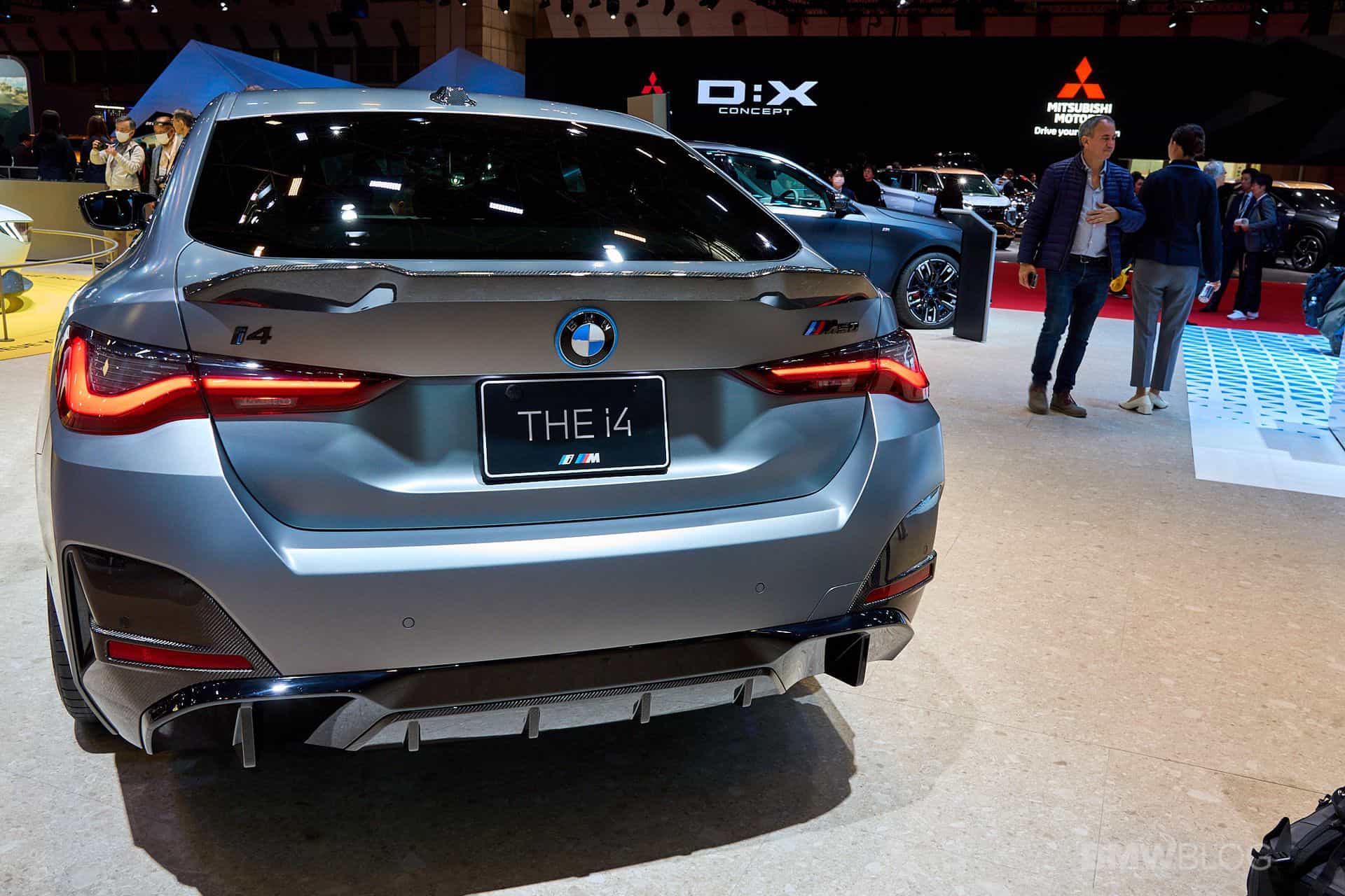 BMWBLOG is attending the show held at the Big Sight exhibition center in the Land of the Rising Sun and we couldn’t pass up the opportunity to revisit the i4 M50. It’s painted in Frozen Pure Grey, a pricey matte color from the Individual catalog, which has been combined here with blacked-out rear badges. The sporty five-door liftback has a large tailgate spoiler that’ll cost you extra, as will the diffuser and carbon fiber accents in the corners of the rear bumper.