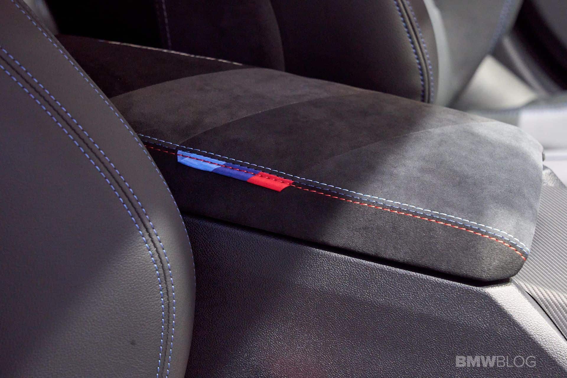 Those M Performance wheels are a sight to behold what with their unusual black and gold look contrasted by the red brake calipers. While the side mirror caps in carbon fiber are no surprise, even the antenna is made from the same material. To drive the point home, BMW glued an “M Performance” decal that runs along the bottom of the front doors like it’s 1985 again. There’s more carbon to be found at the front for the air intakes and the newly added spoiler lip.