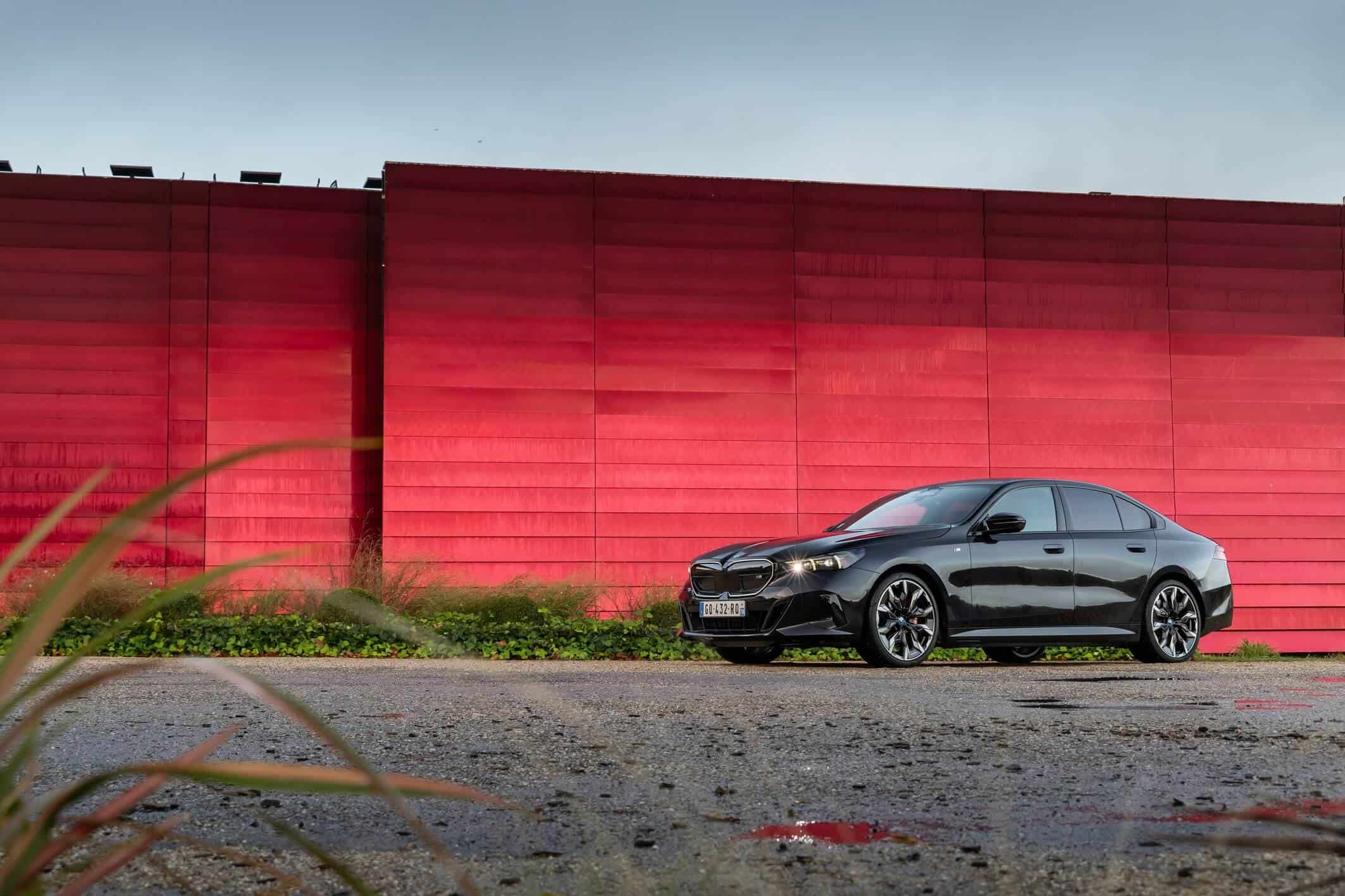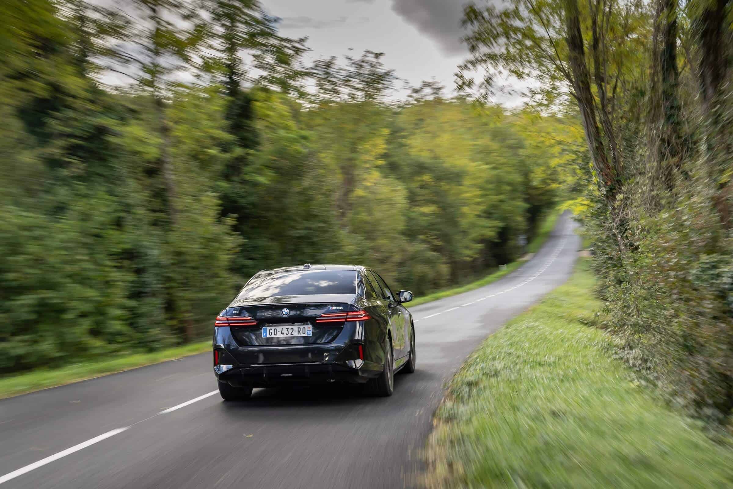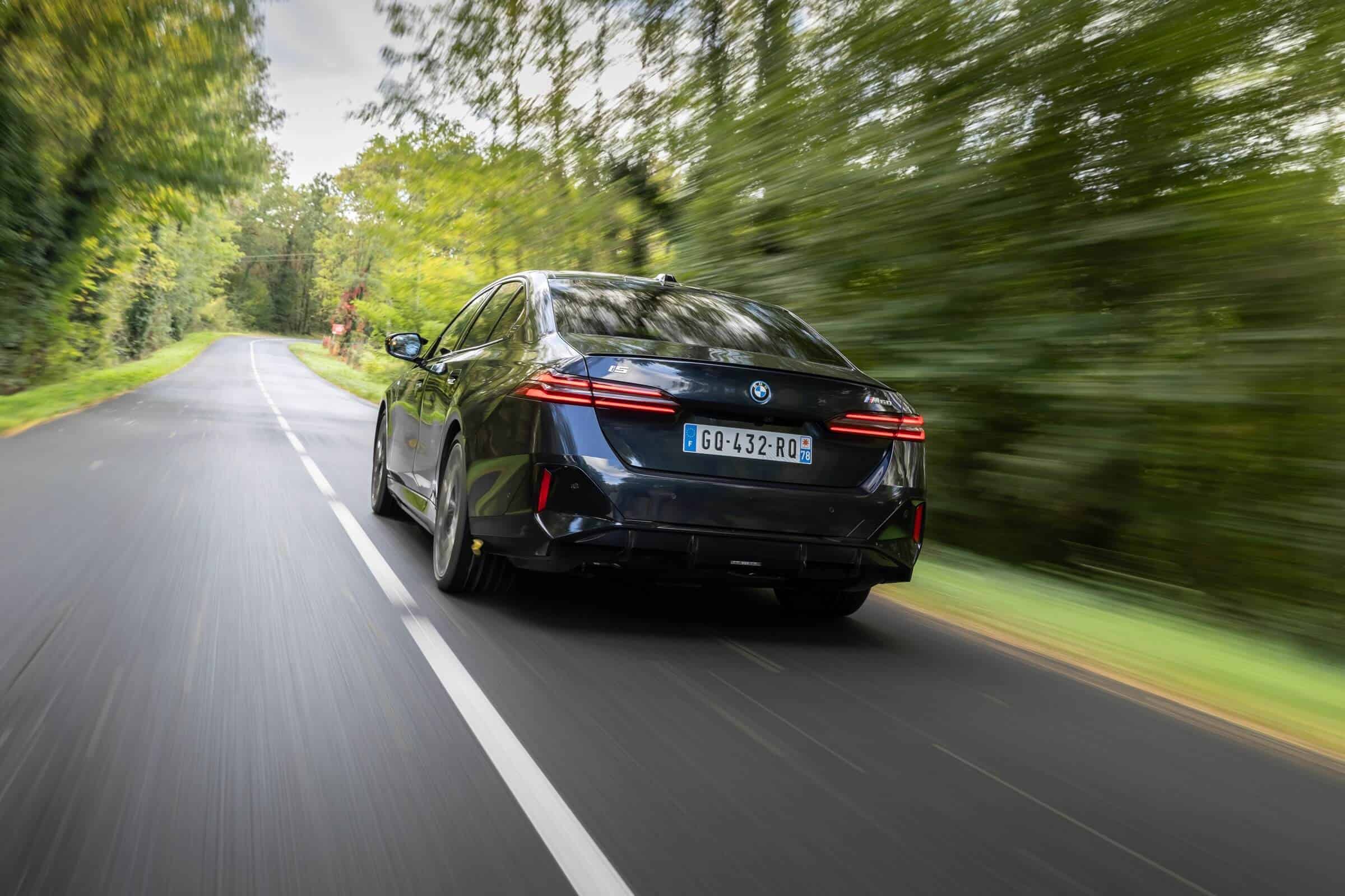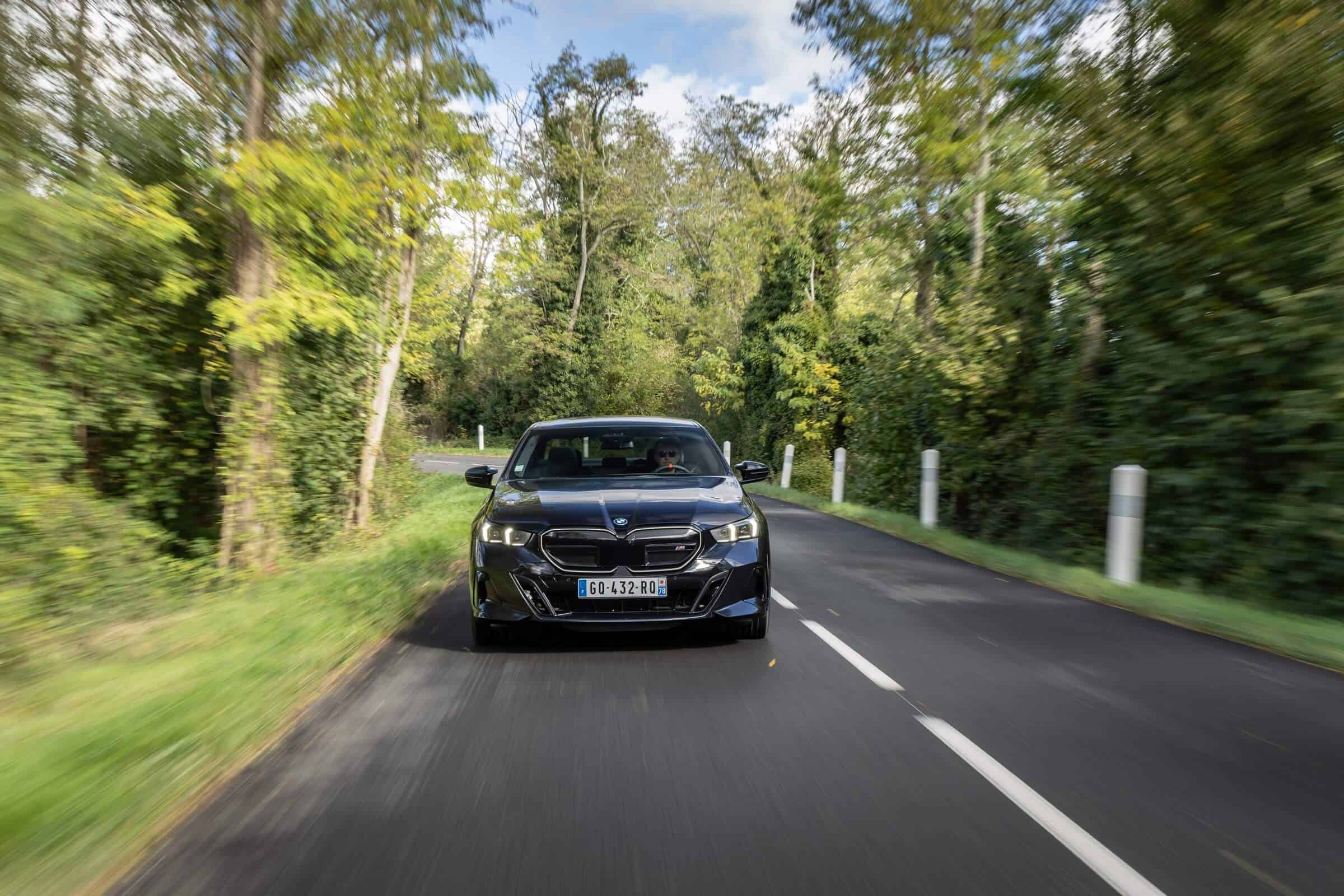 We’re being given the opportunity to see the electric M Performance variant from just about every angle with an M Carbon Black paint. The color looks a bit blue from some angles, depending on how the light hits the body, making it harder to distinguish it from Individual Tanzanite Blue. The latter is a lot more expensive though as BMW France is charging €2,500 whereas M Carbon Black can be had for less than half, at €1,200. This car also happens to have 21-inch wheels – the largest set ever offered from the factory on a 5er.