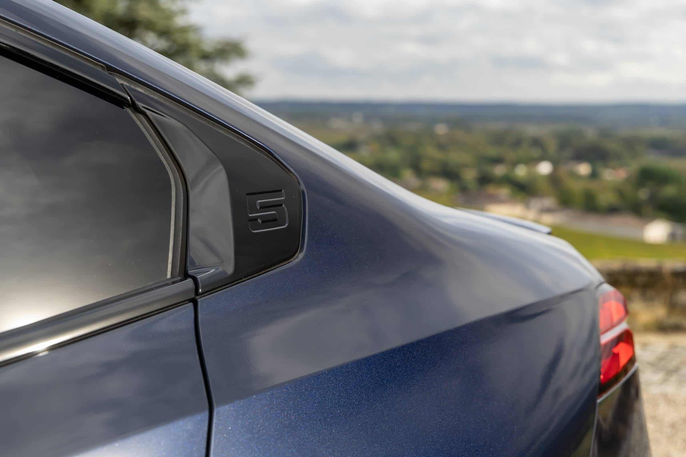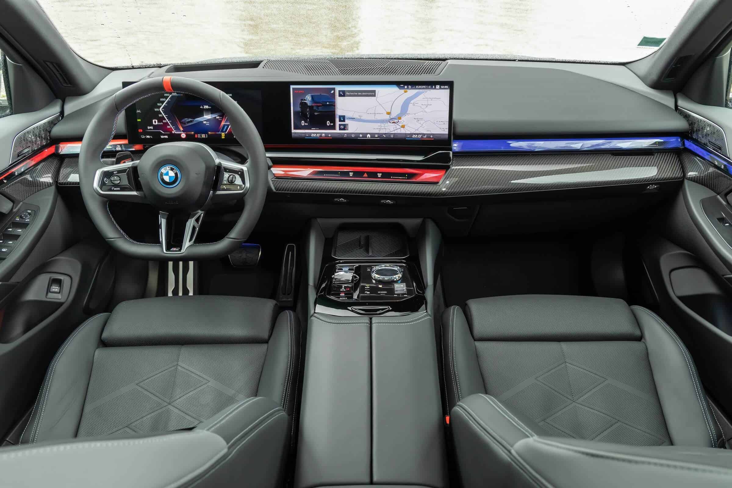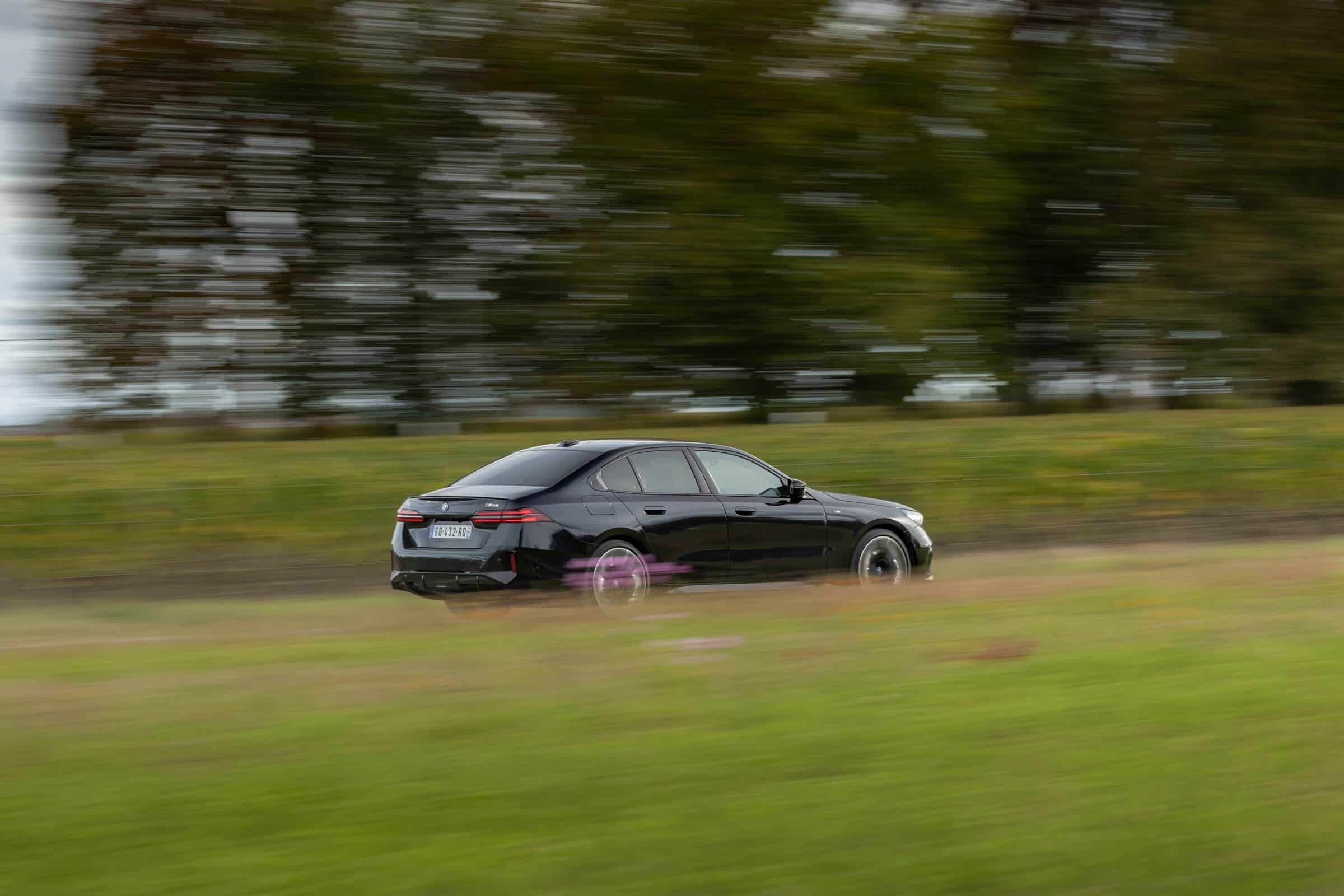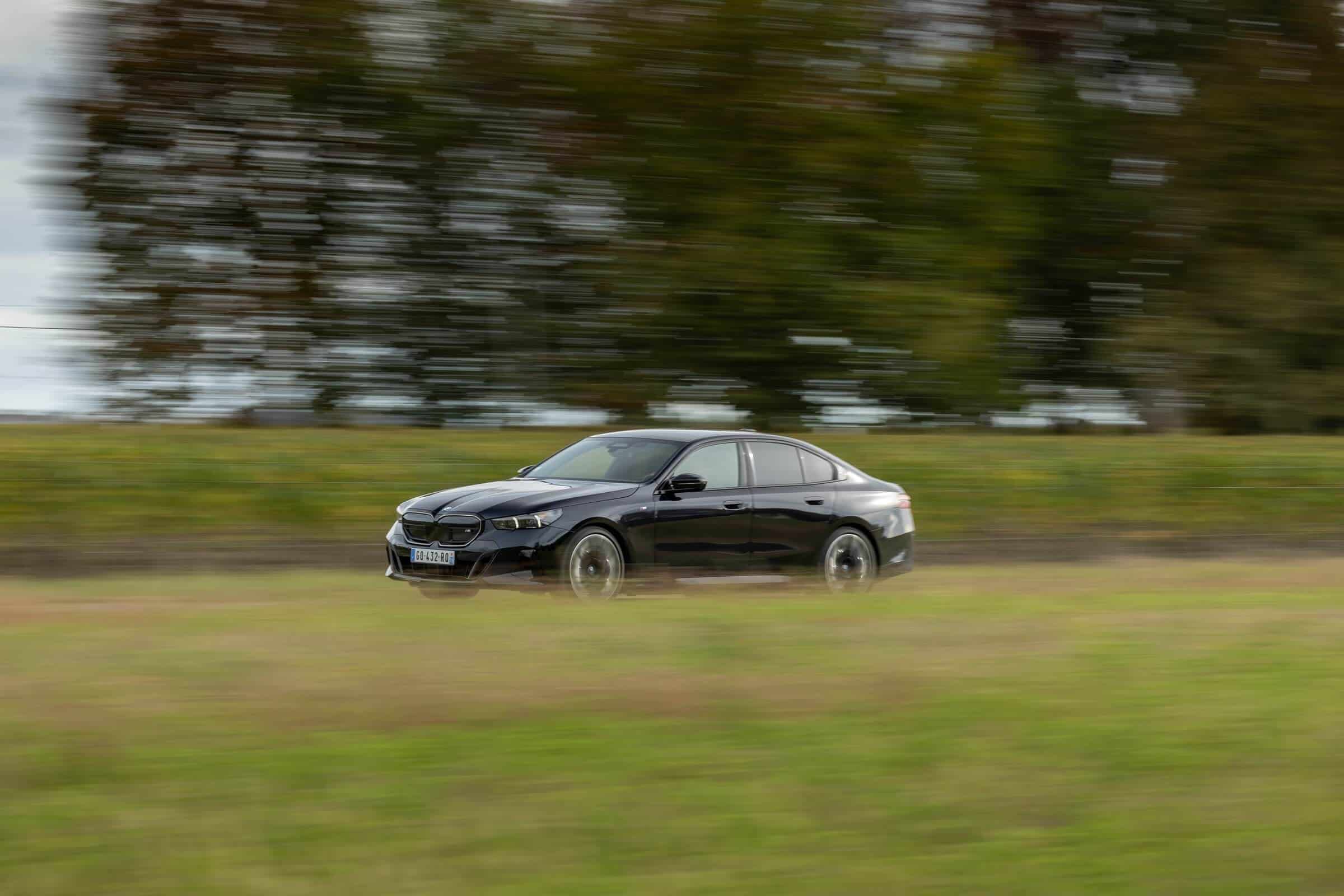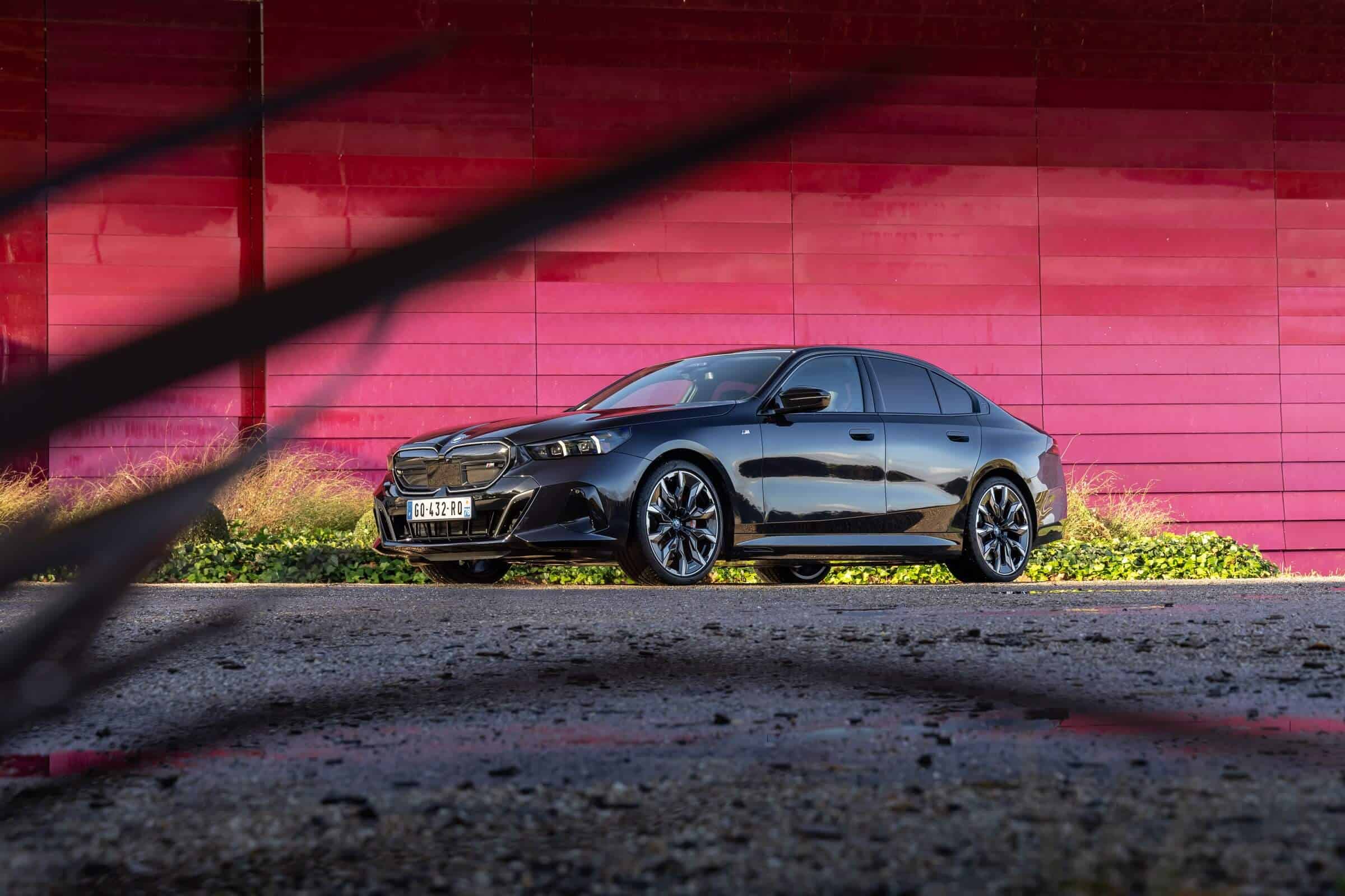 We’re being given the opportunity to see the electric M Performance variant from just about every angle with an M Carbon Black paint. The color looks a bit blue from some angles, depending on how the light hits the body, making it harder to distinguish it from Individual Tanzanite Blue. The latter is a lot more expensive though as BMW France is charging €2,500 whereas M Carbon Black can be had for less than half, at €1,200. This car also happens to have 21-inch wheels – the largest set ever offered from the factory on a 5er.