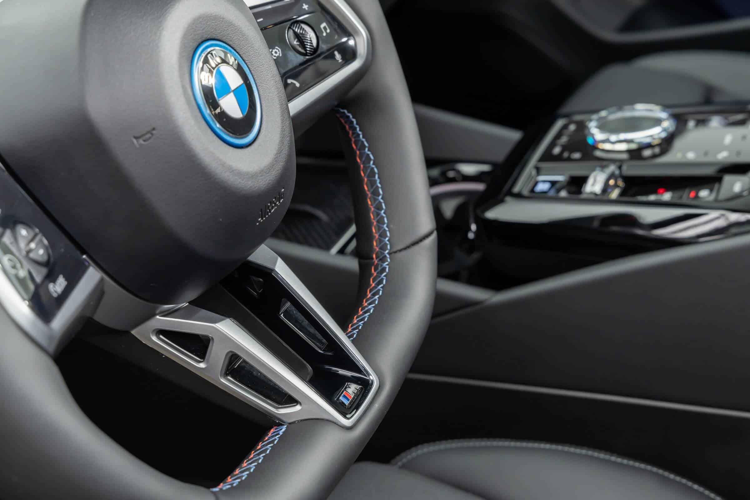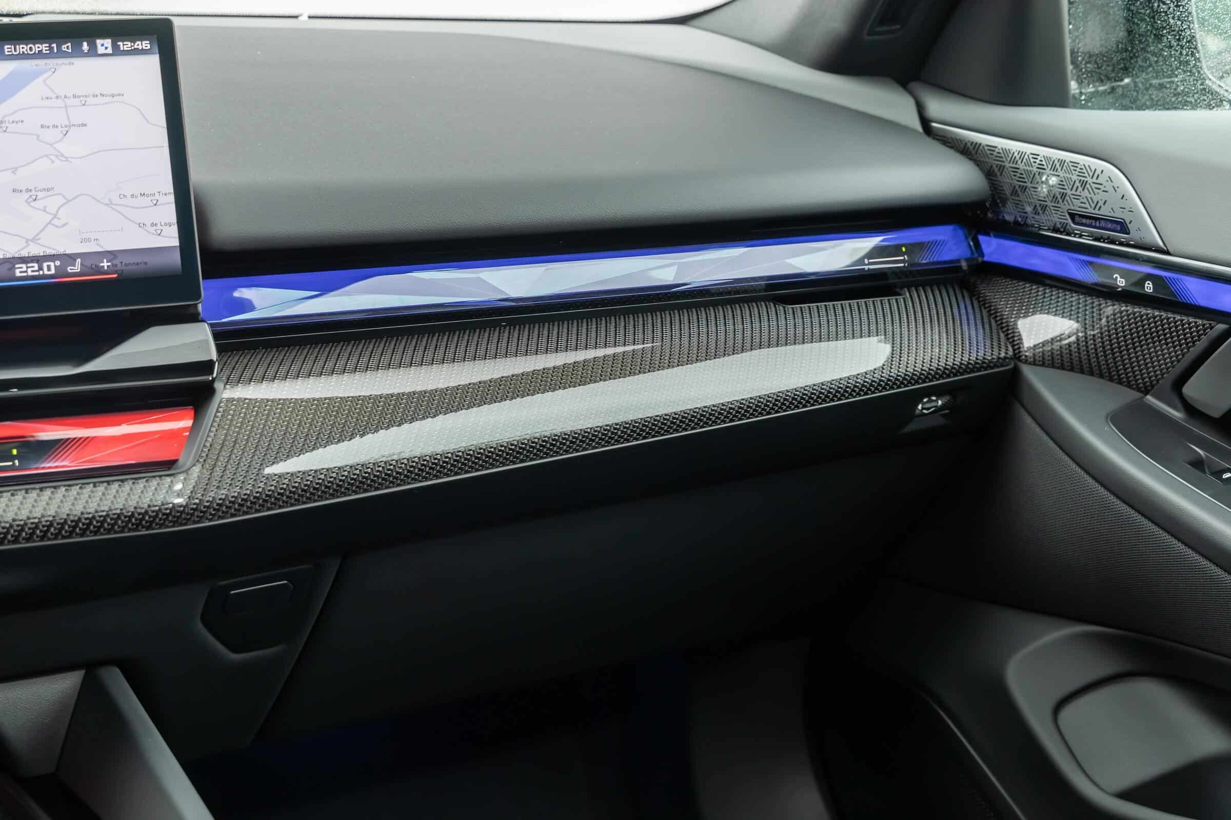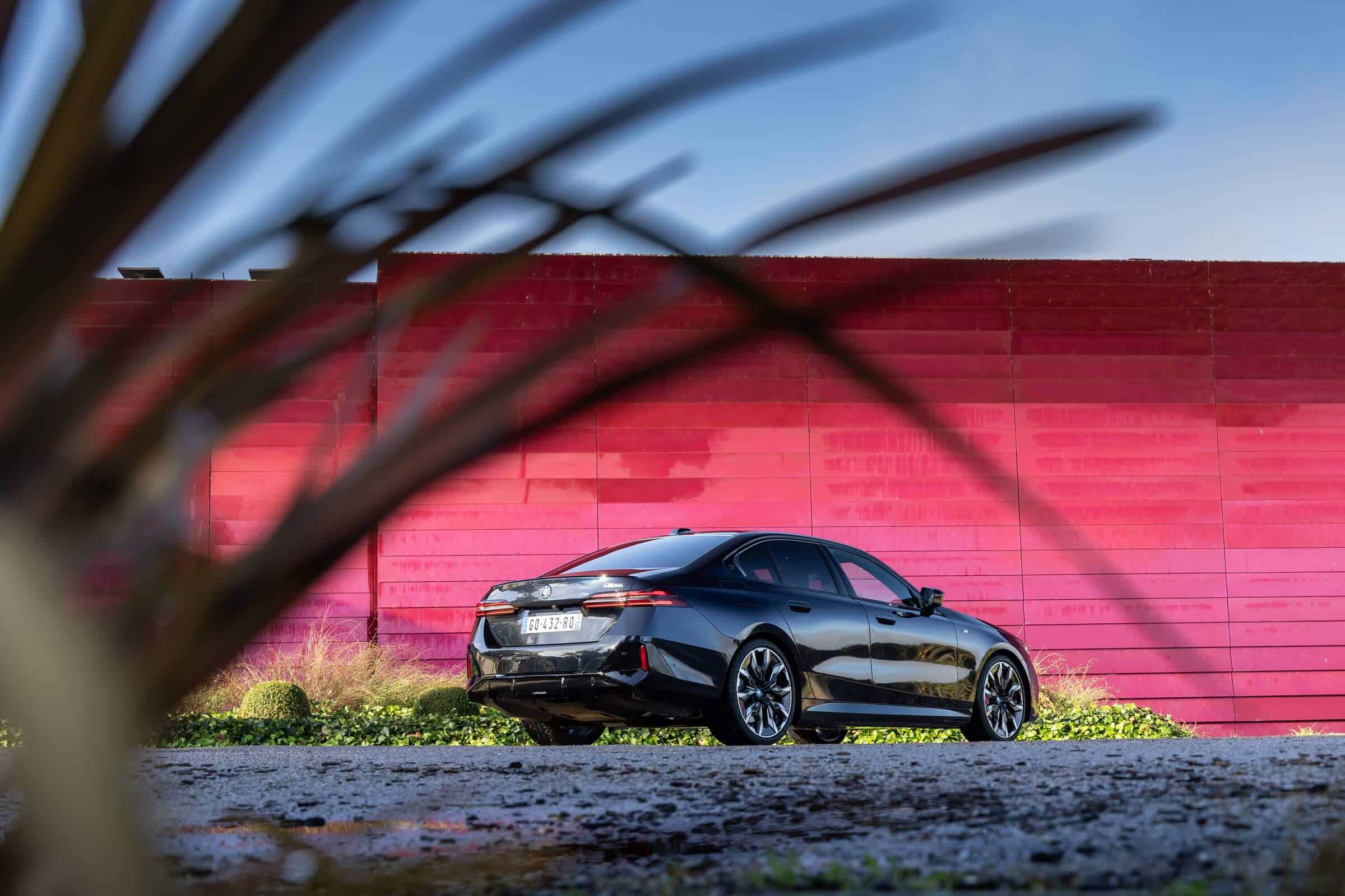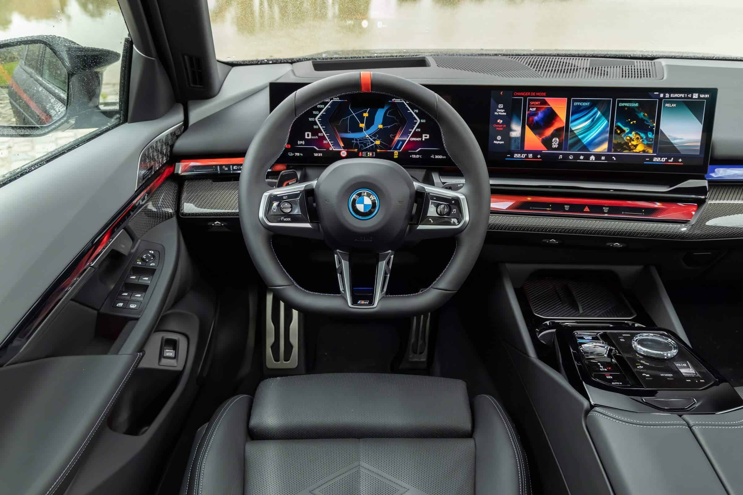 We’re being given the opportunity to see the electric M Performance variant from just about every angle with an M Carbon Black paint. The color looks a bit blue from some angles, depending on how the light hits the body, making it harder to distinguish it from Individual Tanzanite Blue. The latter is a lot more expensive though as BMW France is charging €2,500 whereas M Carbon Black can be had for less than half, at €1,200. This car also happens to have 21-inch wheels – the largest set ever offered from the factory on a 5er.