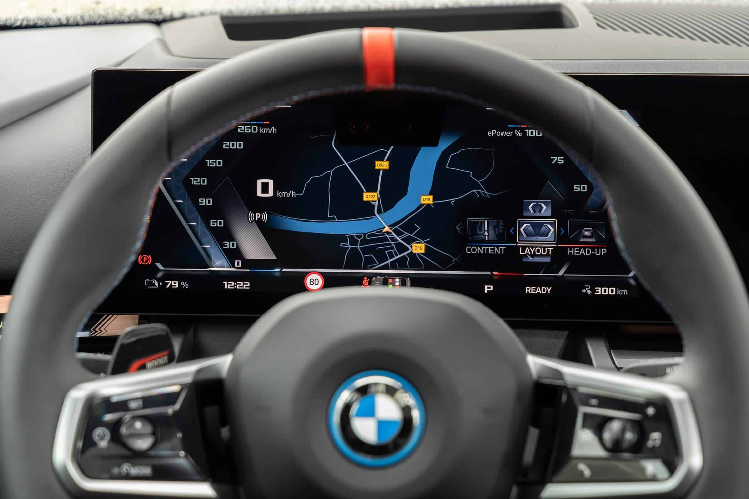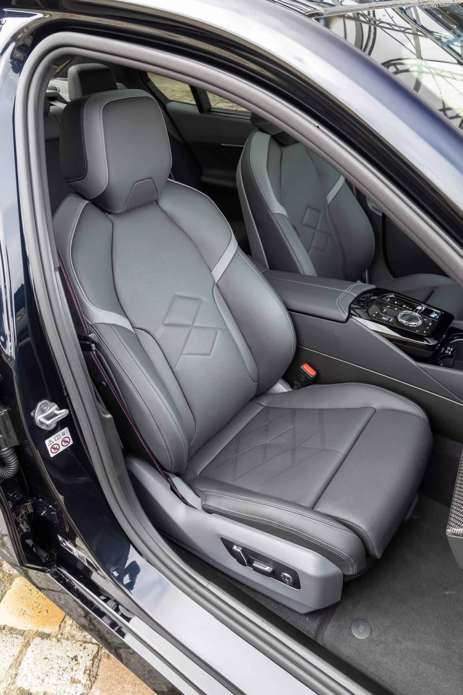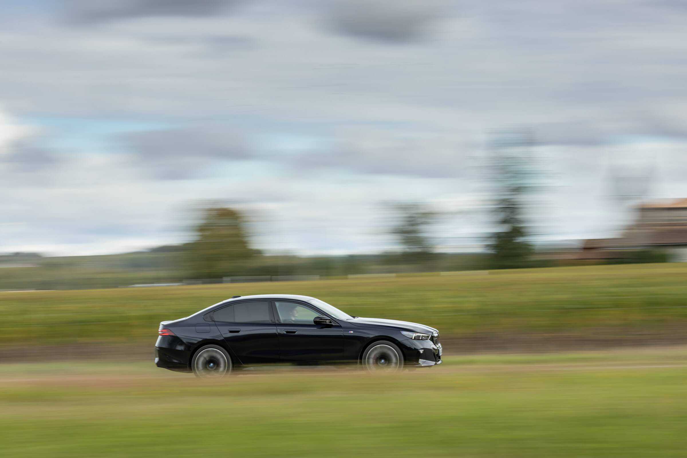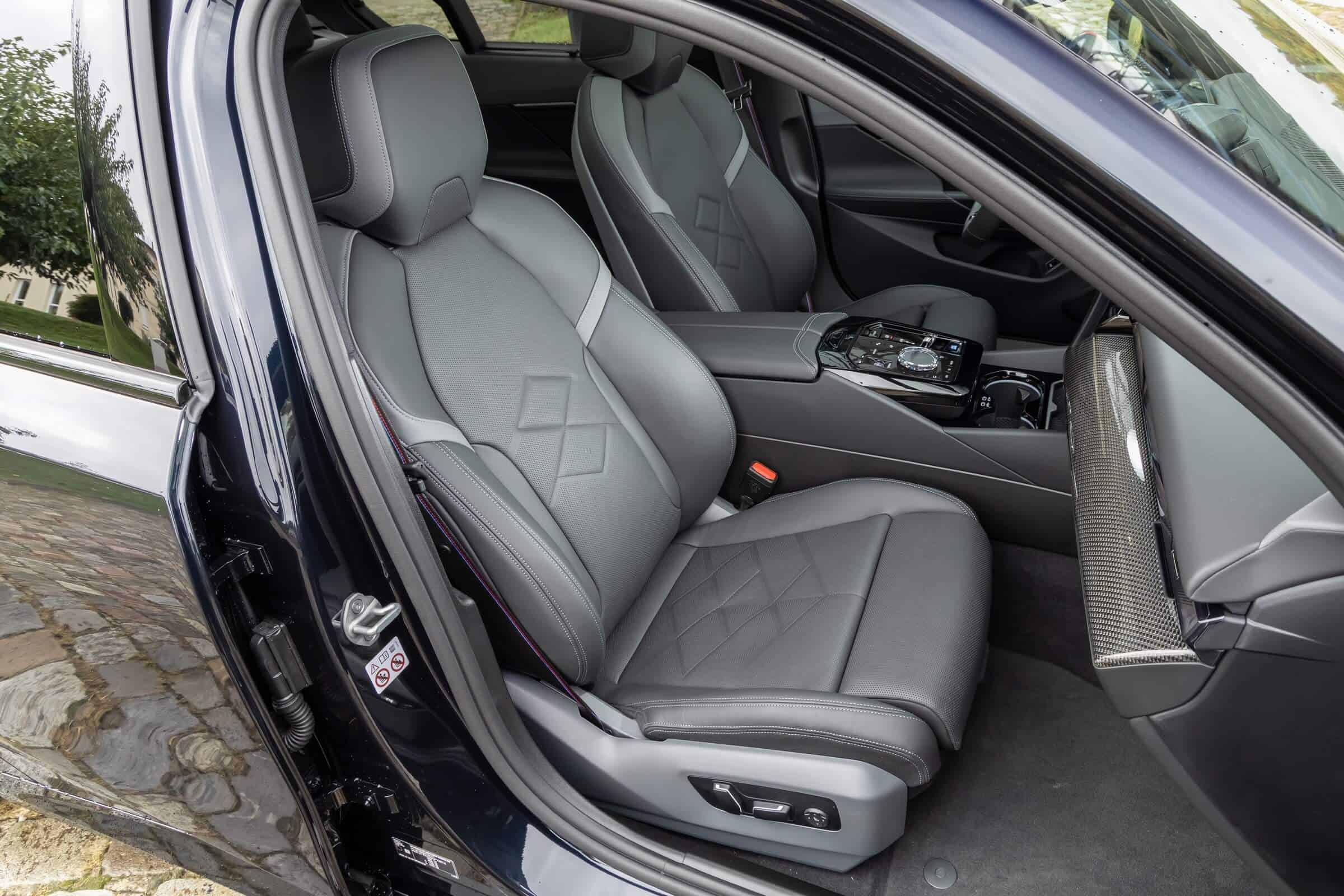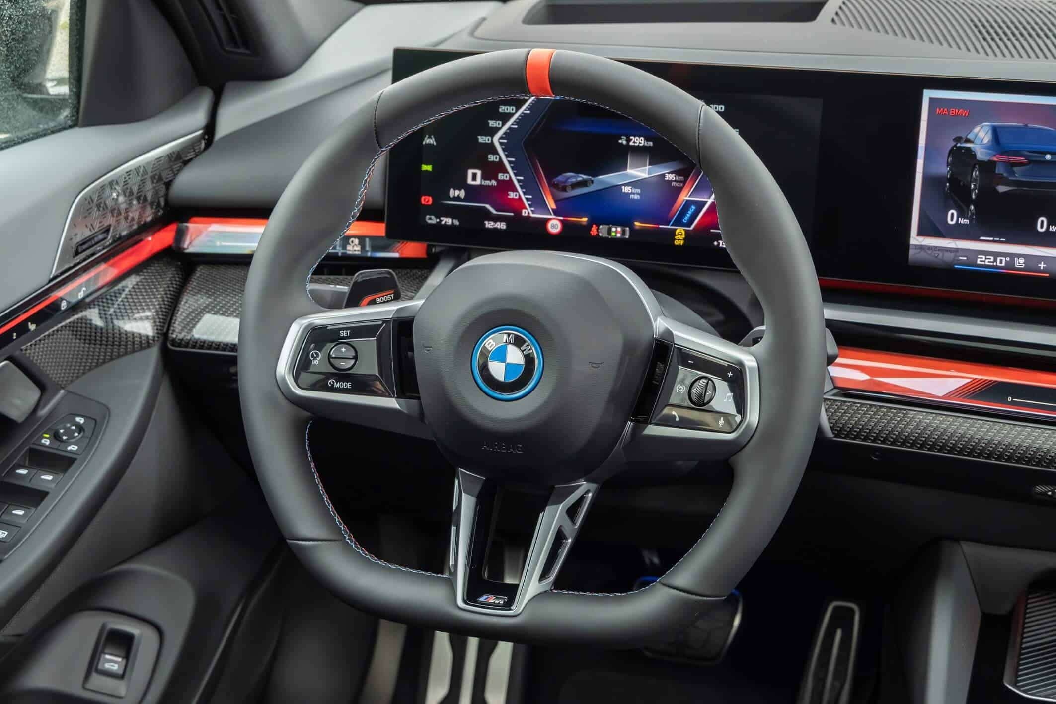 We’re being given the opportunity to see the electric M Performance variant from just about every angle with an M Carbon Black paint. The color looks a bit blue from some angles, depending on how the light hits the body, making it harder to distinguish it from Individual Tanzanite Blue. The latter is a lot more expensive though as BMW France is charging €2,500 whereas M Carbon Black can be had for less than half, at €1,200. This car also happens to have 21-inch wheels – the largest set ever offered from the factory on a 5er.