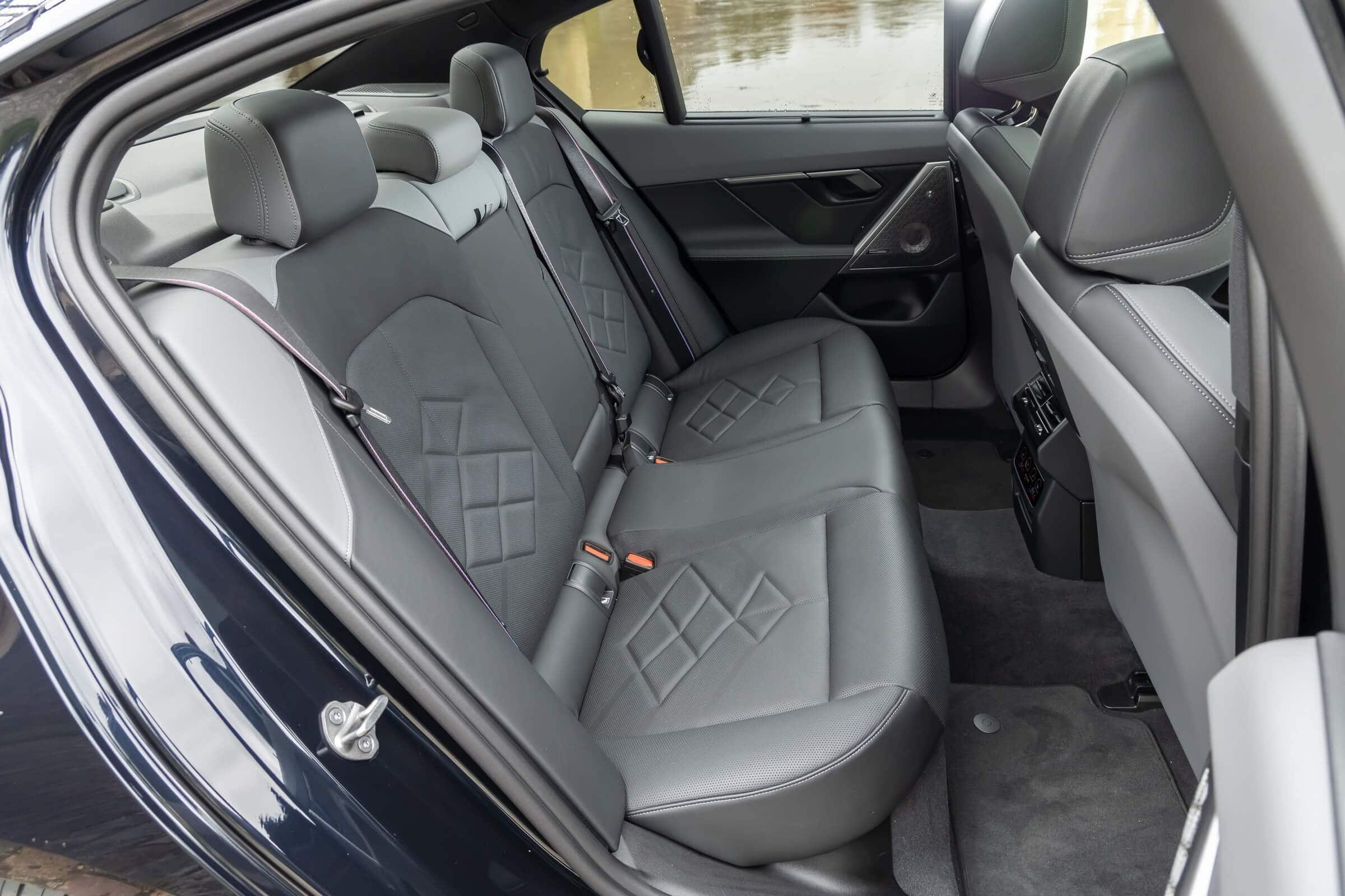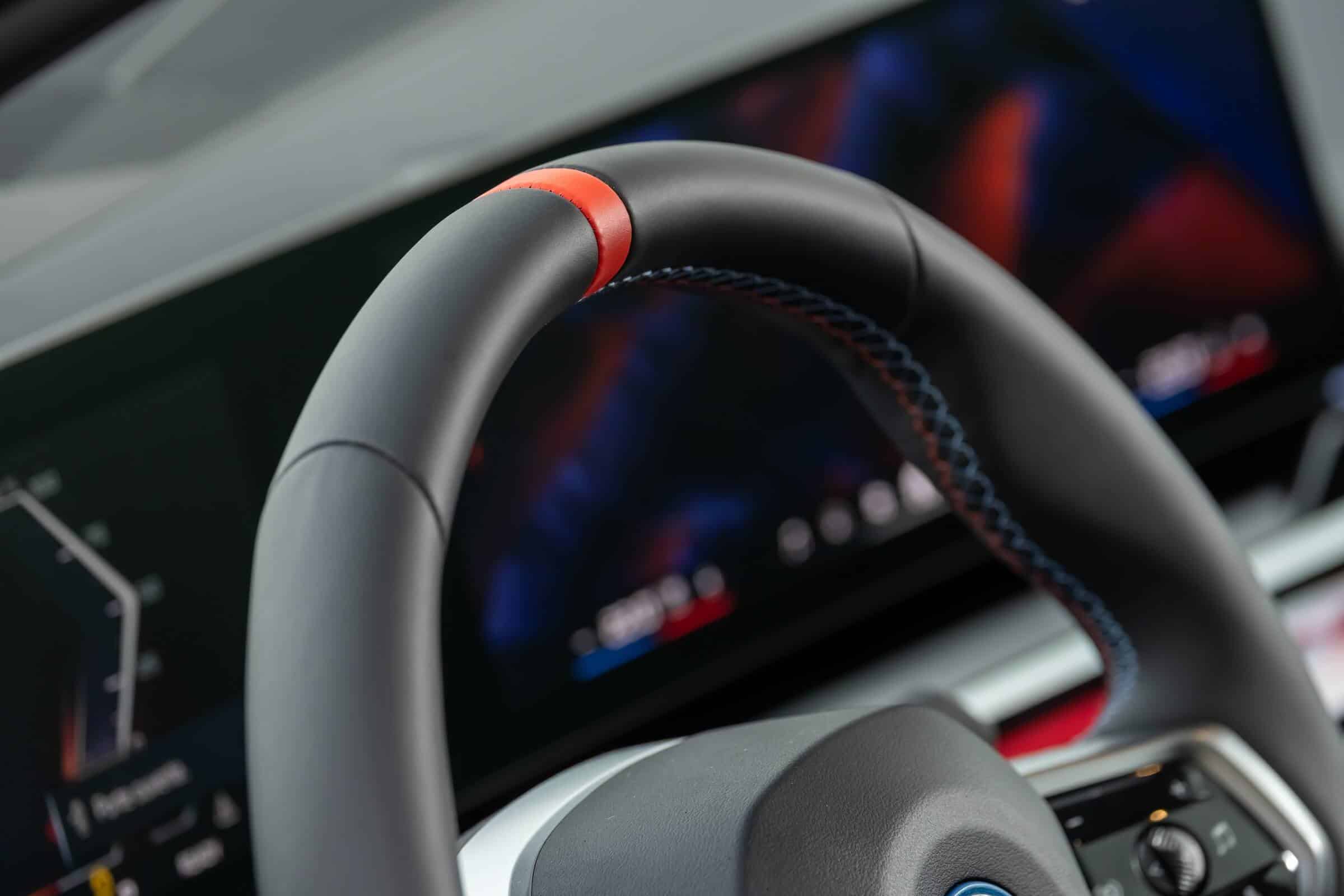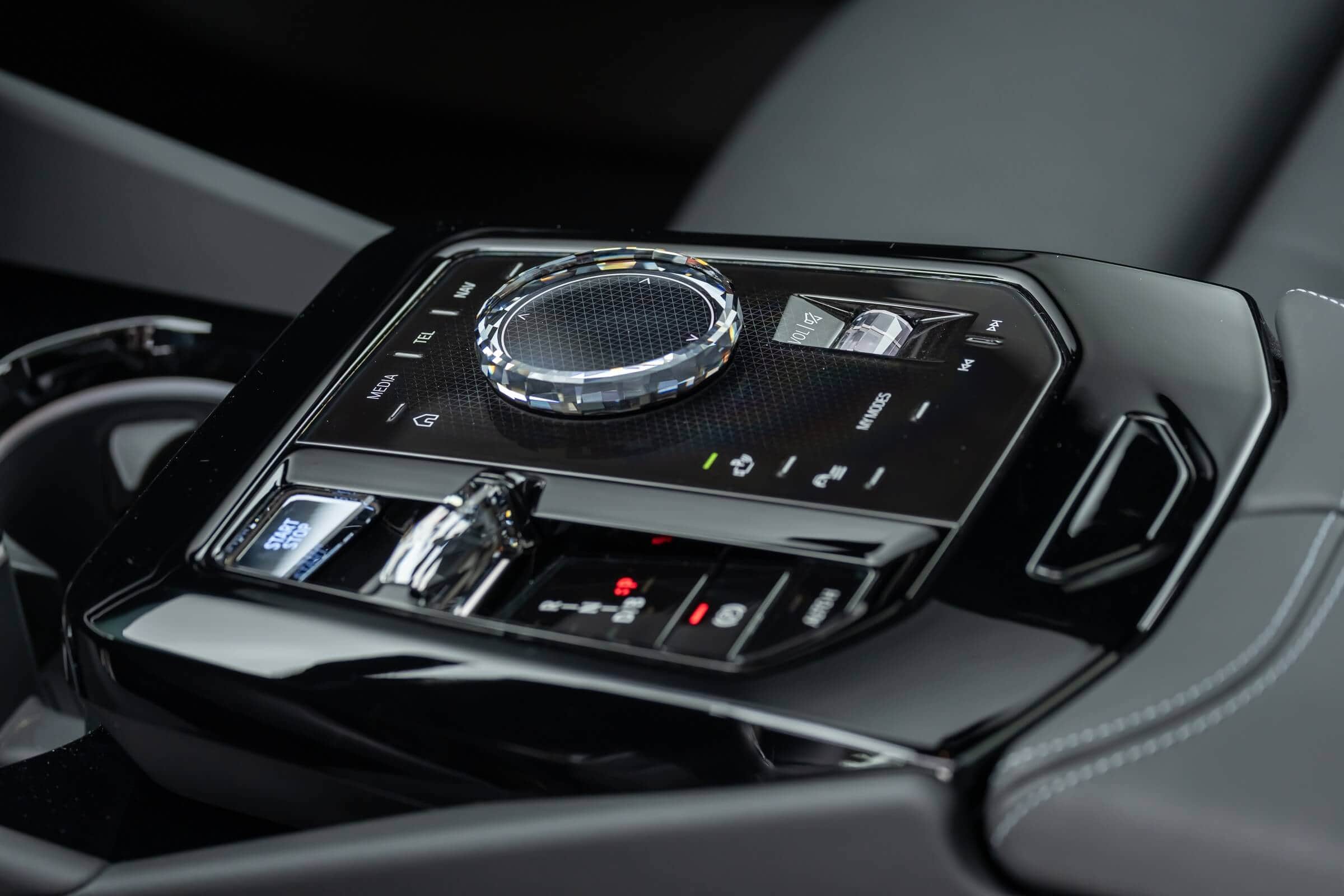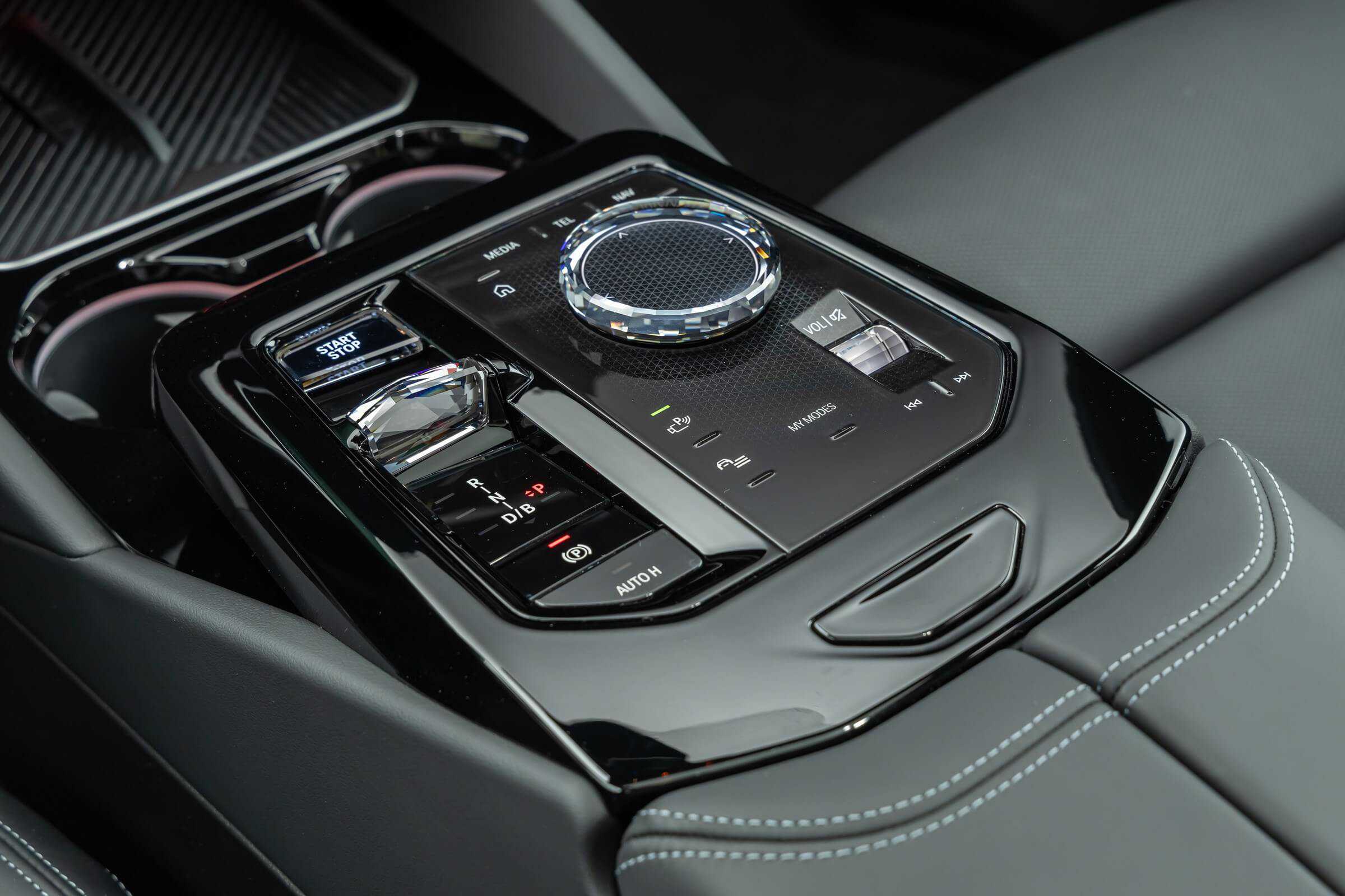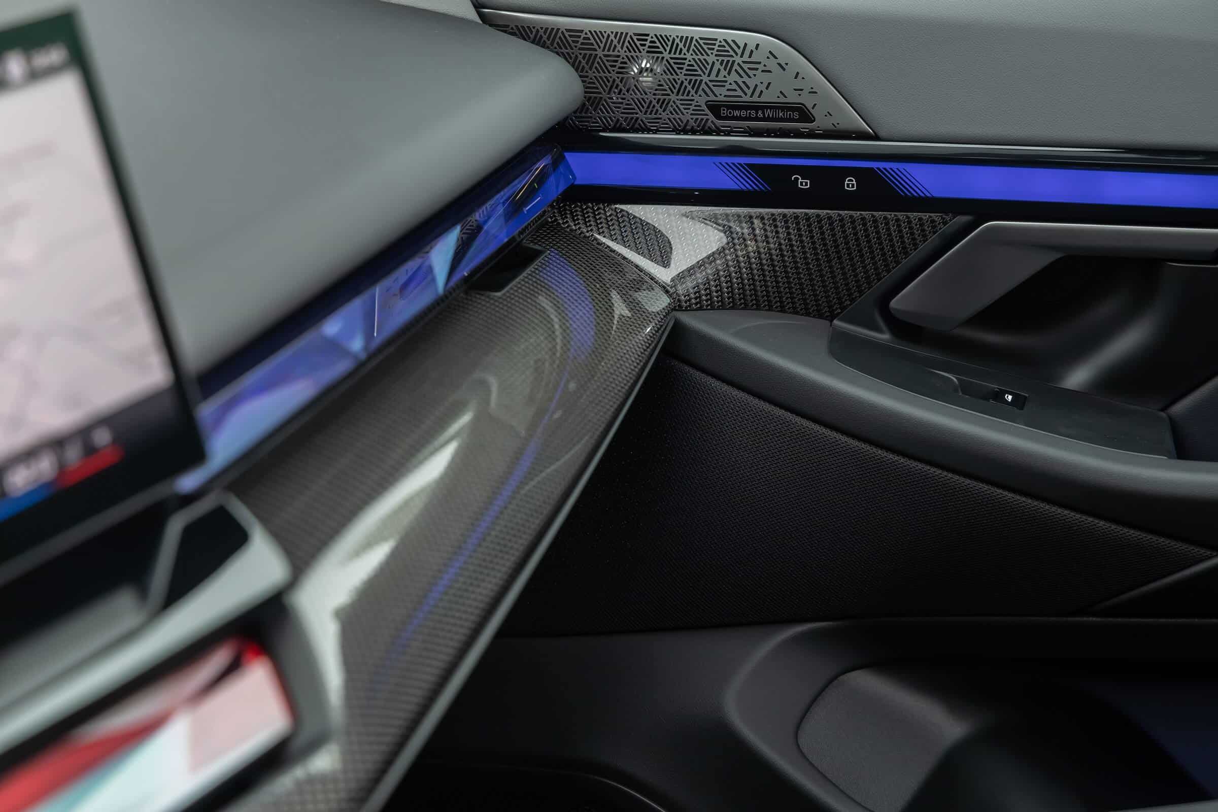 The electric sports sedan’s predominantly black look is enhanced by the dark kidney grille, Shadowline headlights, and black trunk lid spoiler, while the red brake calipers provide a nice contrast. The interior complements the body in the sense it’s also nearly black, or if you prefer, dark grey. It has a carbon fiber dashboard trim and those fancy crystal controls for the iDrive’s rotary knob as well as the gear selector. Another notable upgrade is the Bowers & Wilkins surround sound system with 17 speakers.
