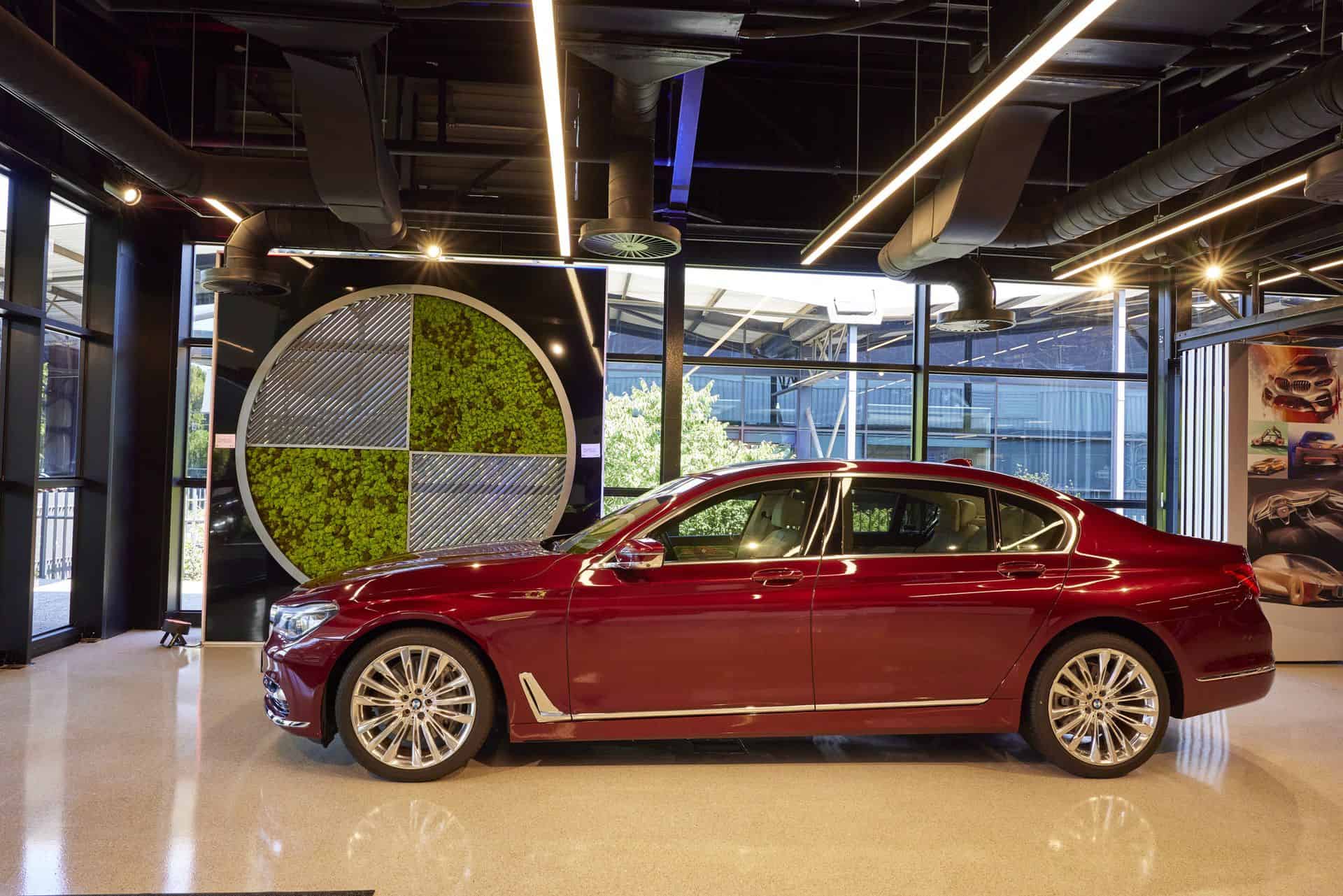 The BMW 750Li Individual by Esther Mahlangu is a right-hand drive vehicle featuring an array of equipment from the comprehensive BMW Individual Collection. The 20-inch light alloy wheels in w-spoke styling add to the car’s elegant appearance, and the exterior bodywork is coated in BMW Individual Aventurine Red Metallic.