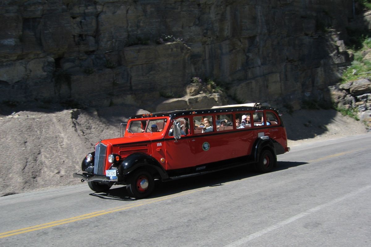 The White Motor Company custom-built more than 500 of these Model-706 tourist buses for national-park duty in 1936-39. Glacier’s entire fleet was sidelined by widespread chassis cracking in 1999—after averaging 600,000 miles—that threatened its existence. Ford Motor Company rode to the rescue with a $6.5-million, mass “restification” that returned the buses to Montana two years later. Beneath each restored body, a stretched (176-inch-wheelbase) van frame carries a 5.4L powertrain, fueled by propane.