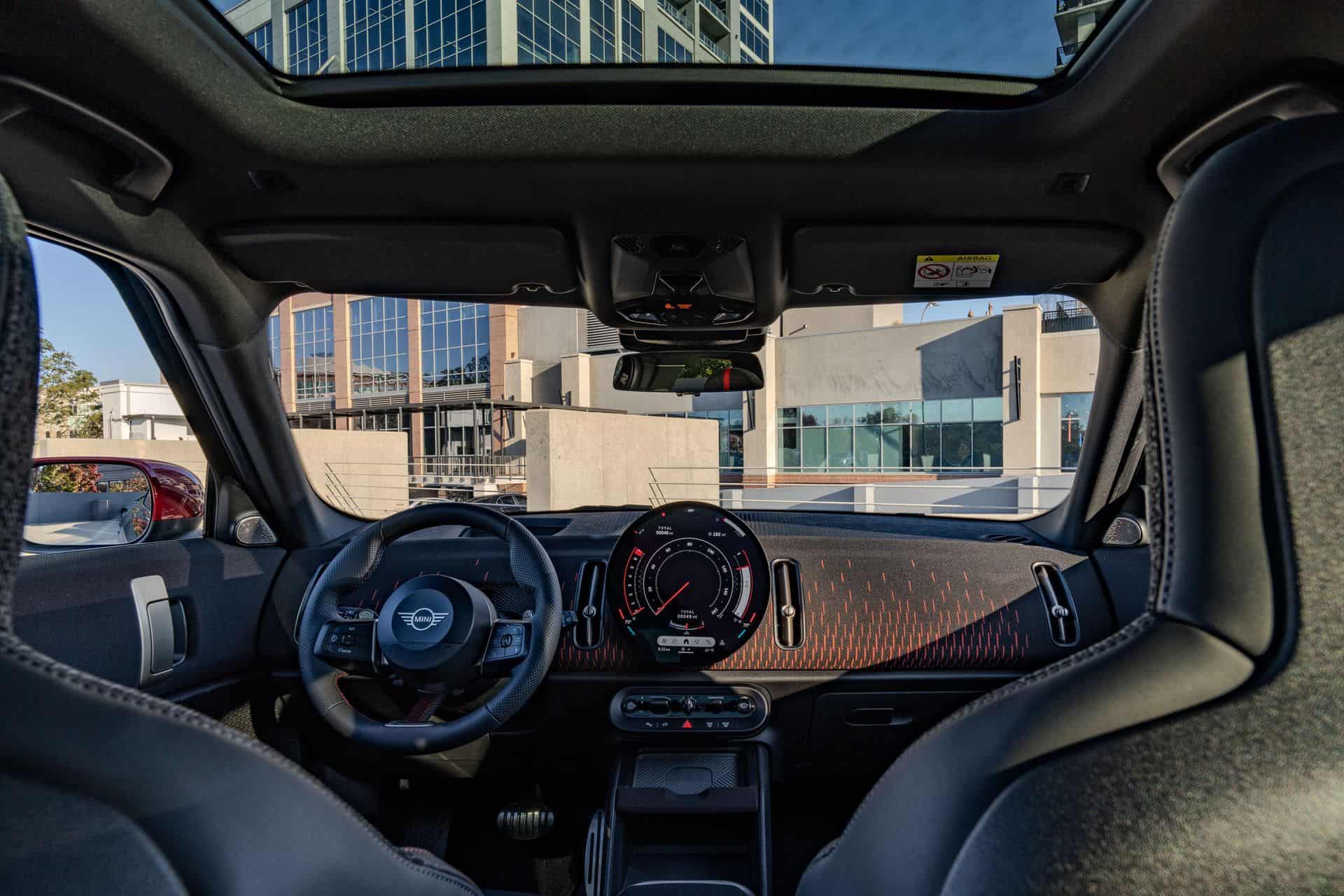 Flaunting an updated JCW logo, the athletic Countryman rides on 19- or 20-inch wheels exclusive to this version, both of which have been aerodynamically optimized. By the way, we’re being told the drag coefficient of 0.26 makes it one of the most aerodynamic models in the segment.