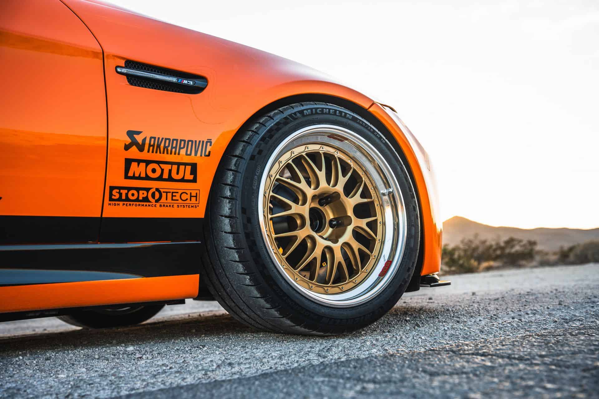 The chassis upgrades include SPL suspension components and StopTech’s 380mm Trophy kit for optimal braking performance. The drivetrain is reinforced with a 3.15 DCT differential and MOTUL’s 75w140 gear oil. Weight reduction measures include an Akrapovič titanium exhaust and a Driveshaft Shop carbon fiber driveshaft.