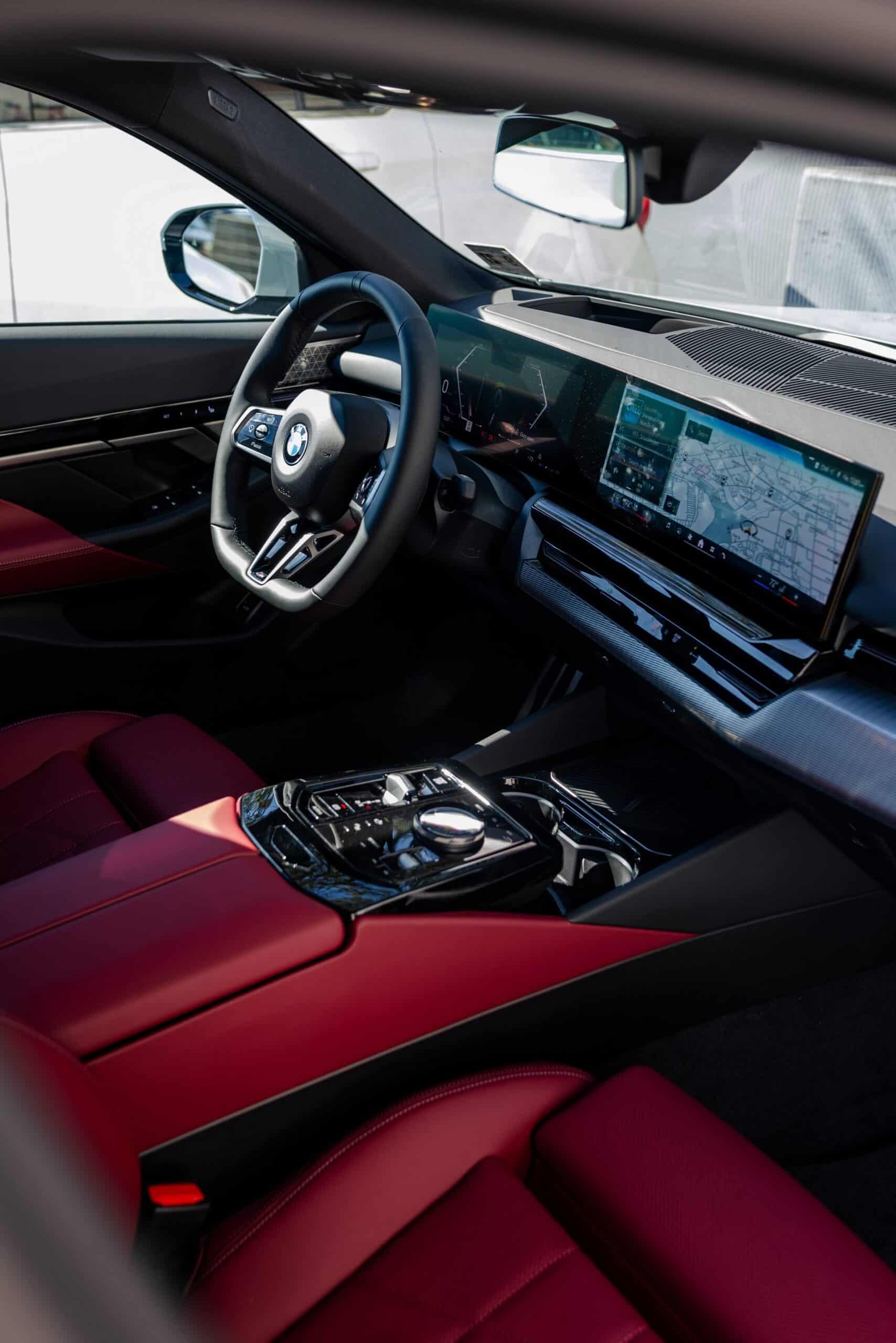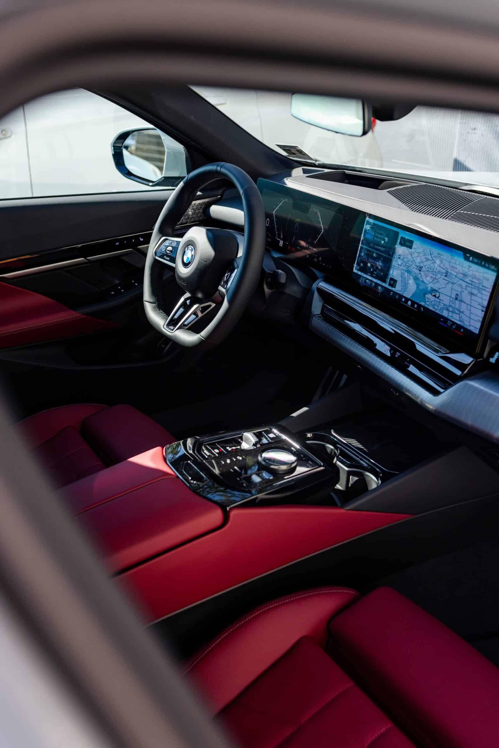 BMW USA was also kind enough to share with us images of a different G60 that has those swanky glass controls with diamond-cut glass for the iDrive rotary knob, the gear selector, and the start/stop button. This 5 Series also has different upholstery and trim since the seats are wrapped in white leather while the dashboard and doors are adorned with carbon fiber.