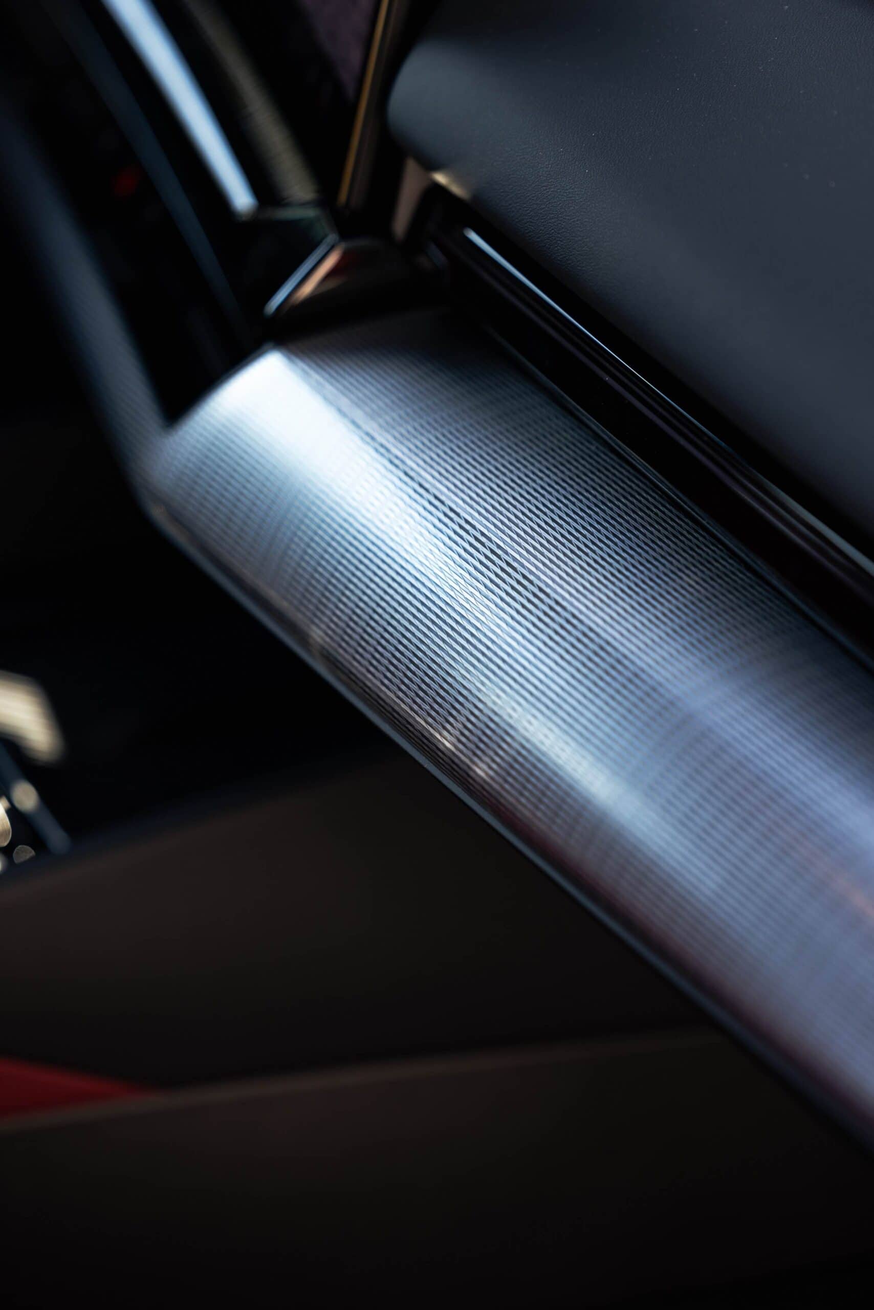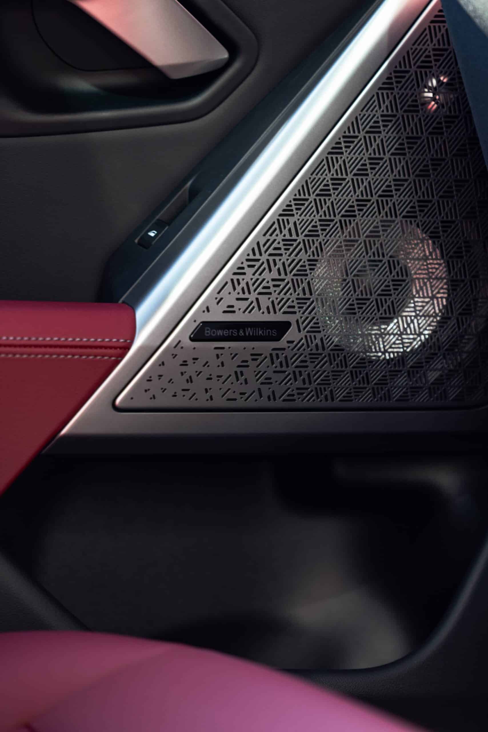 As for the paint, Brooklyn Grey Metallic is a $650 option. Inside, the Veganza (vegan leather) upholstery is finished in Burgundy Red for which you’re not paying extra. The same can be said about this car’s Aluminum Rhombicle trim on the dashboard and door cards since it’s a no-cost option. Should you want to swap out the standard Harman Kardon sound system in favor of this superior Bowers & Wilkins setup, you’re looking at another $950.