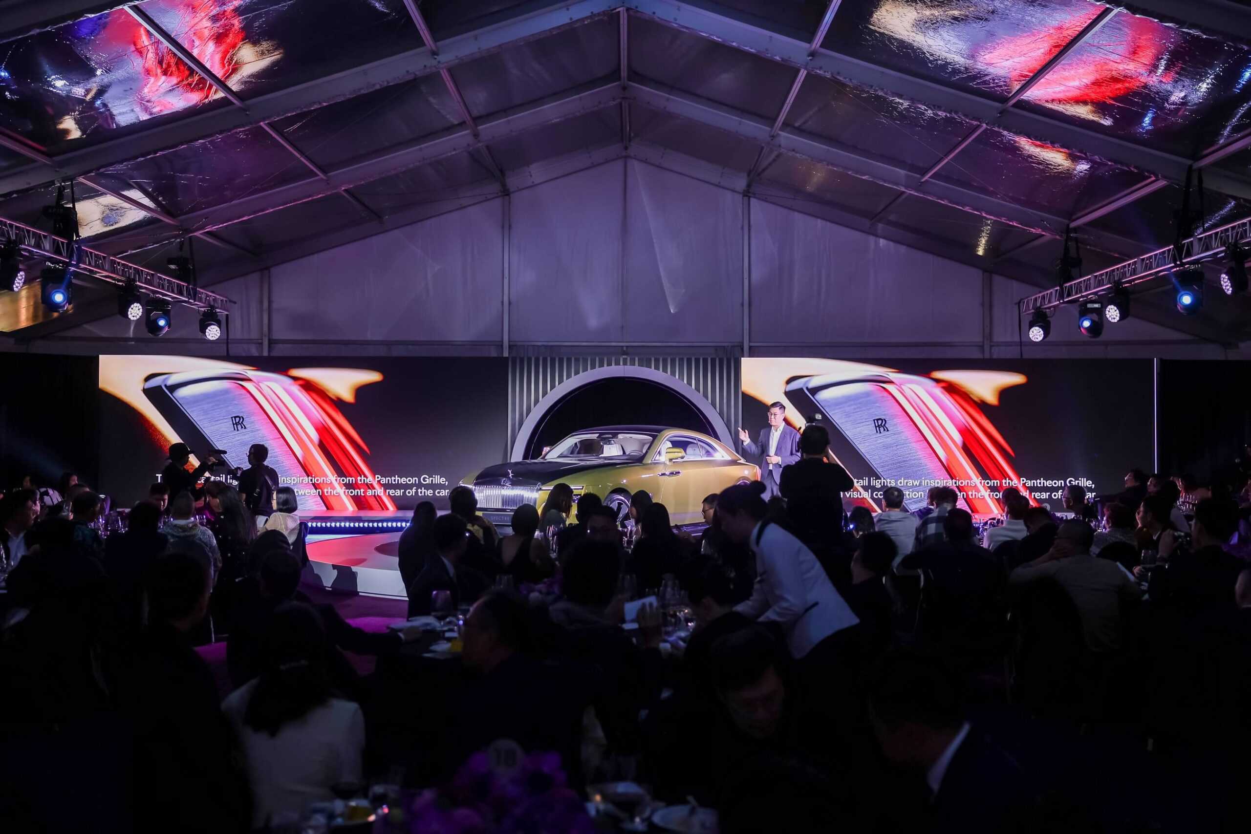 To celebrate the arrival of the Rolls-Royce of electric cars, the only dealer in the region organized a gala dinner at the Wynn Palace Cotai, a five-star hotel with no fewer than 1,706 rooms located in Macau. Over 200 people were invited to attend the local debut of the Spectre, which was presented alongside the company’s V12 trio: Ghost, Cullinan, and the flagship Phantom. Of course, many of the guests arrived at the glitzy event in their very own RR models.
