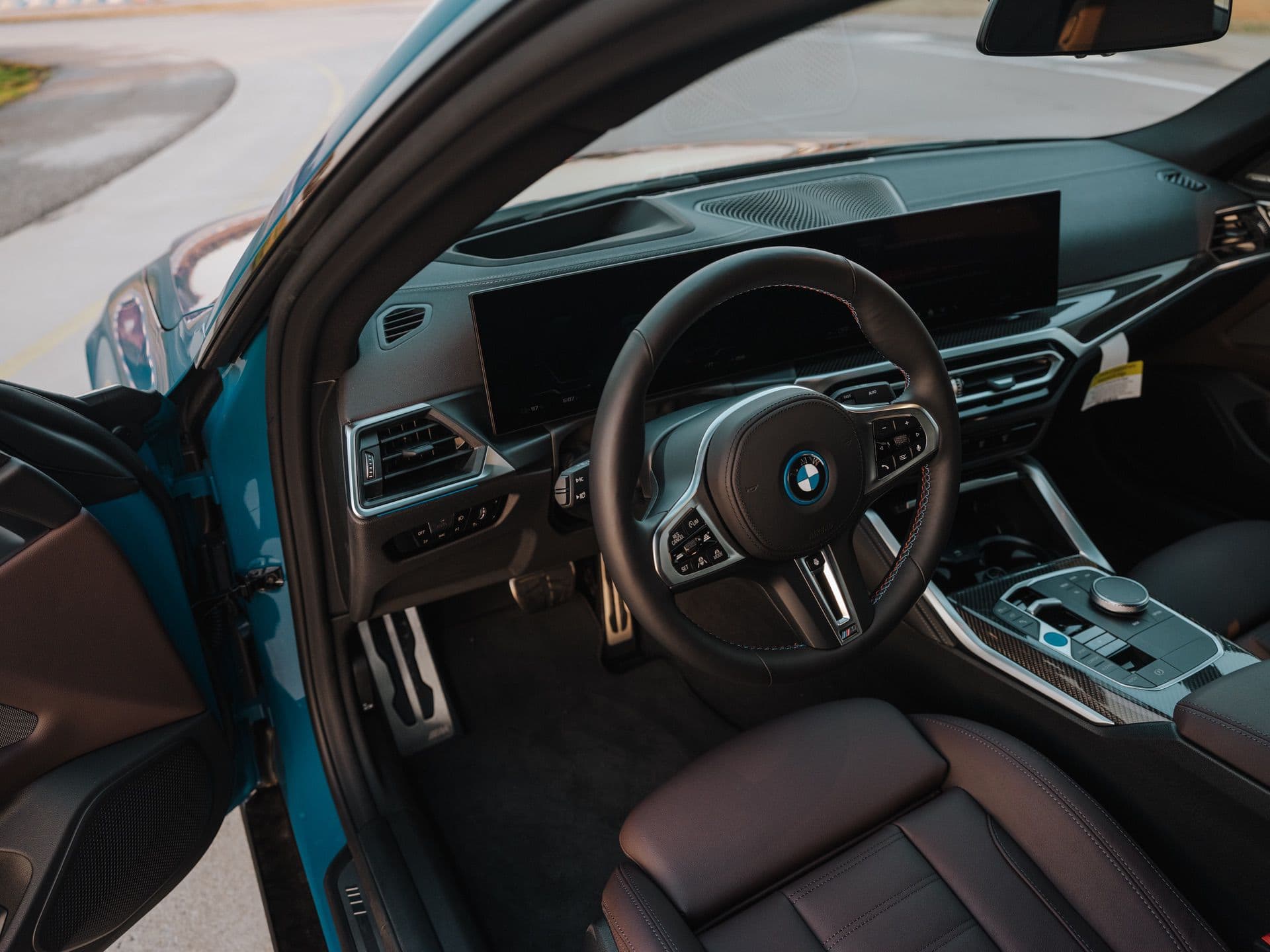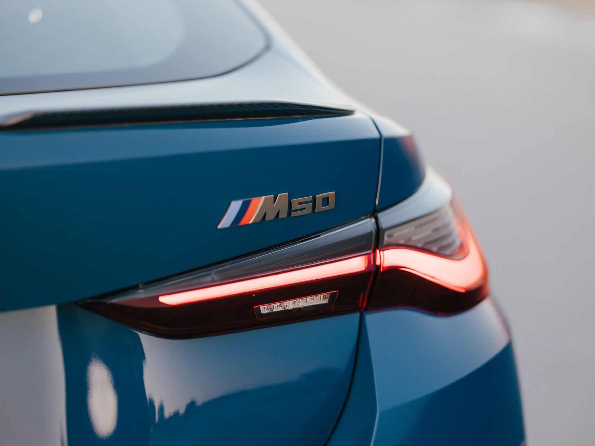 Another substantial item that doesn’t come standard but has been added here is the High Performance Tire Package. It costs $2,500 and bundles two-tone 20-inch M wheels with a body-colored rear spoiler and the M Technology Package. The latter encompasses upgraded brakes for superior stopping power. BMW configured this i4 M50 with the $400 Shadowline Package to further boost its visual appeal.