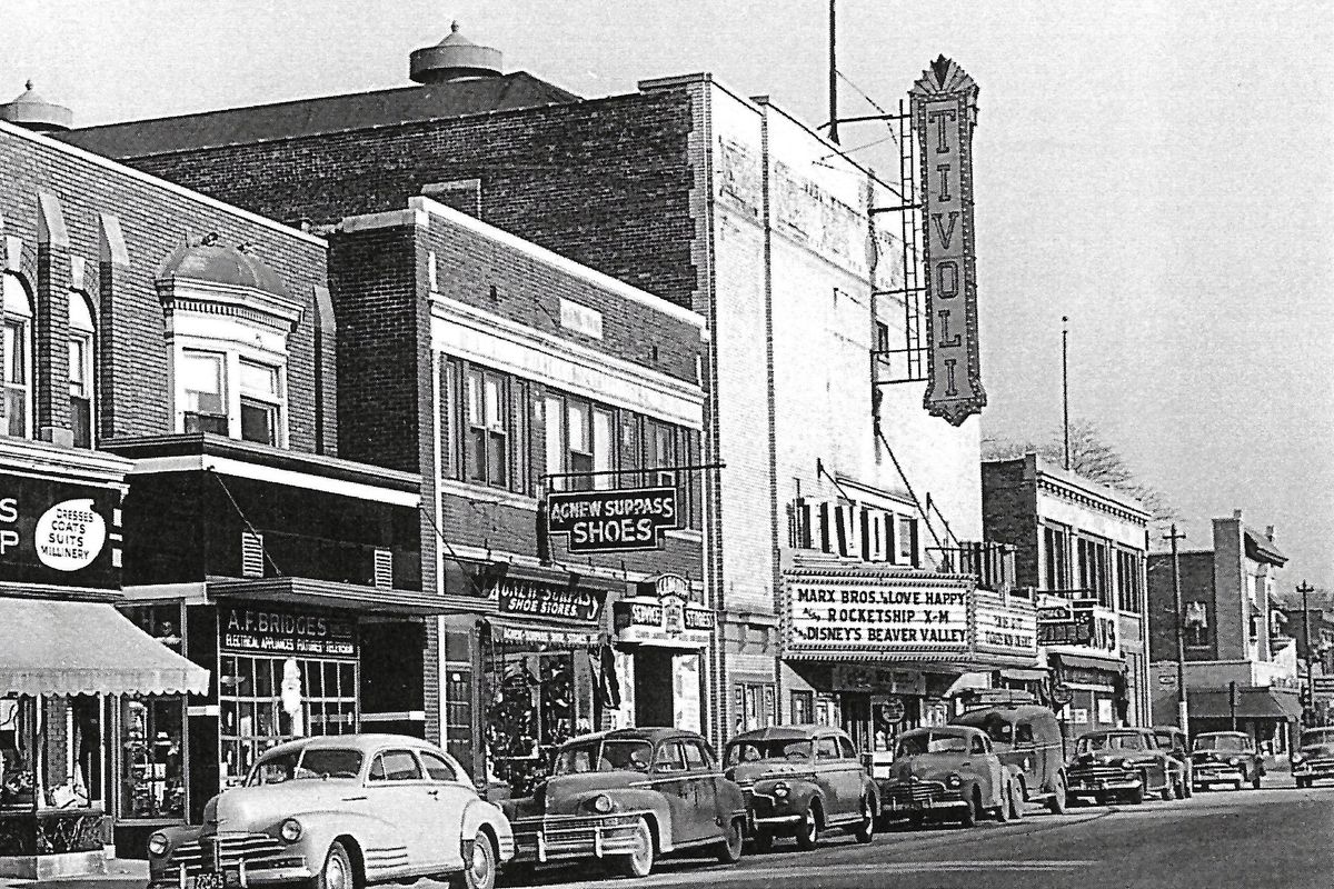 Across the river from Detroit — and technically south of its American neighbor — the city of Windsor, Ontario was the longtime heart of the Canadian auto industry, with all of the Big Three setting up subsidiary factories there. This scene along Wyandotte Street, east of the downtown core, was snapped in 1950, according to the feature shows highlighted on the Tivoli Theatre’s marquee. Wyandotte Street is still bustling and the theater remains, but it was renovated and renamed Old Walkerville Theatre in 2014.