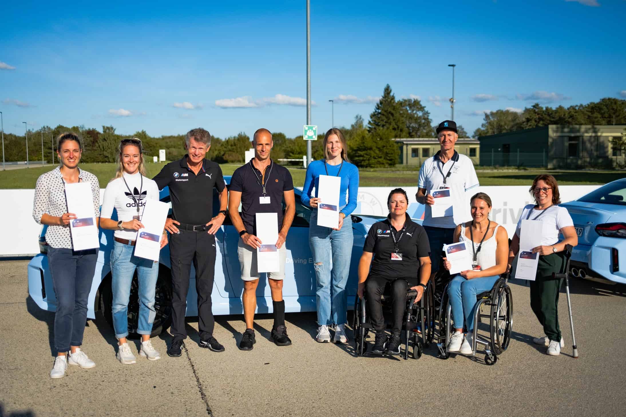 The BMW M Driving Experience traces its roots back to 1977 when it was initially established as the BMW Fahrertraining (driver training). The safety training courses for people suffering from physical disabilities cost €165 per day and are organized in groups of up to eight people. Various BMW and MINI models, equipped with hand controls, are available. Before driving, participants receive a safety briefing. The fee includes insurance and lunch. Additionally, participants receive a souvenir upon completion.