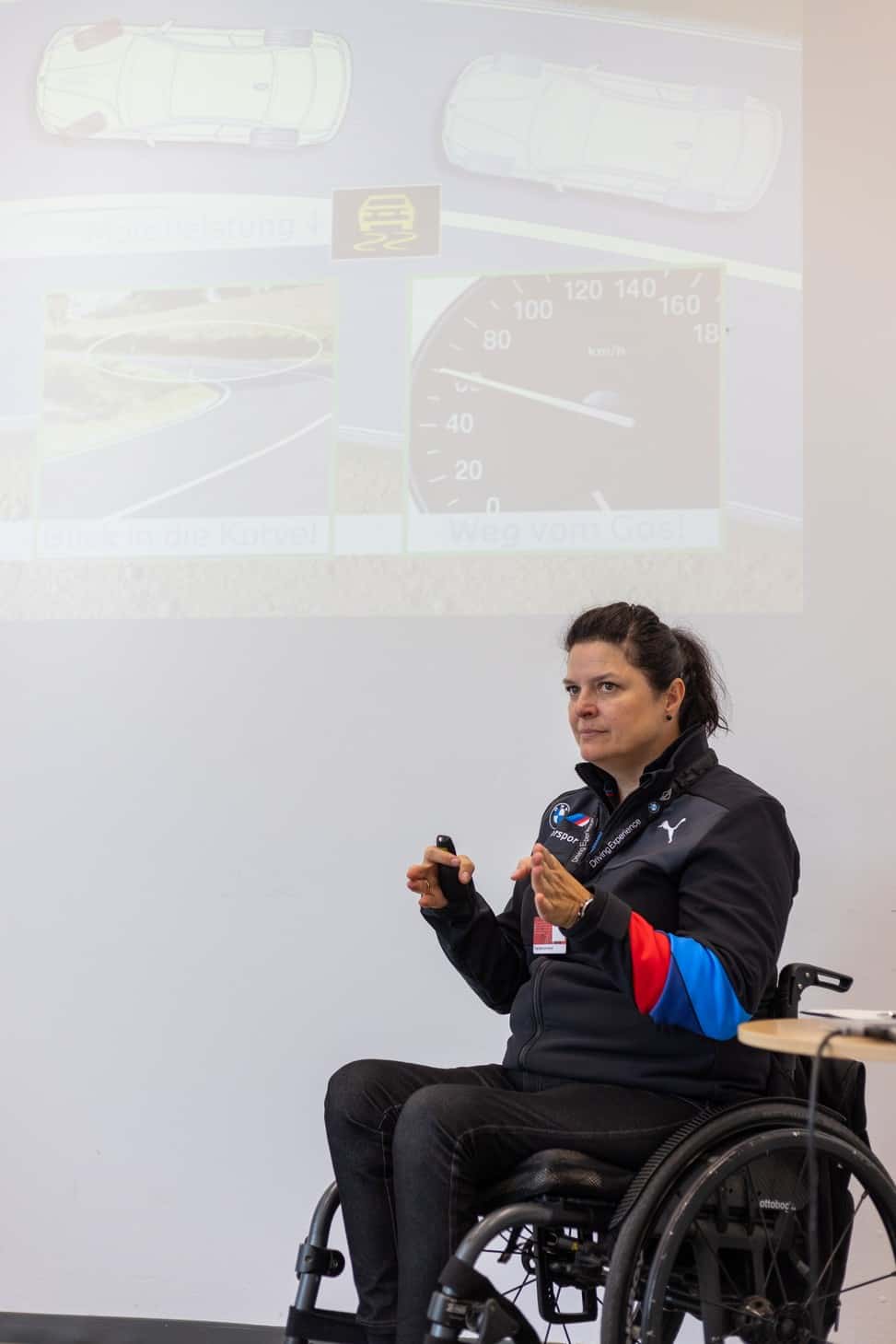The training course has been created by Tina Schmidt-Kiendl, head of project management at BMW M GmbH and also an instructor. Athletes from the Bavarian disabled and rehabilitation sports association (Behinderten- und Rehabilitations-Sportverband Bayern e.V.) are participating in the program as part of the BMW M Driving Experience. The courses take place in Maisach, a municipality in the district of Fürstenfeldbruck, in Bavaria, Germany.