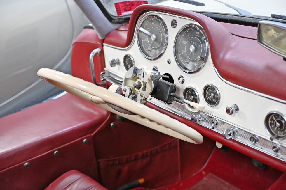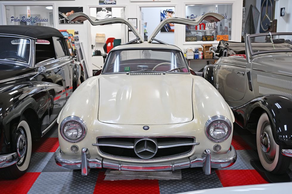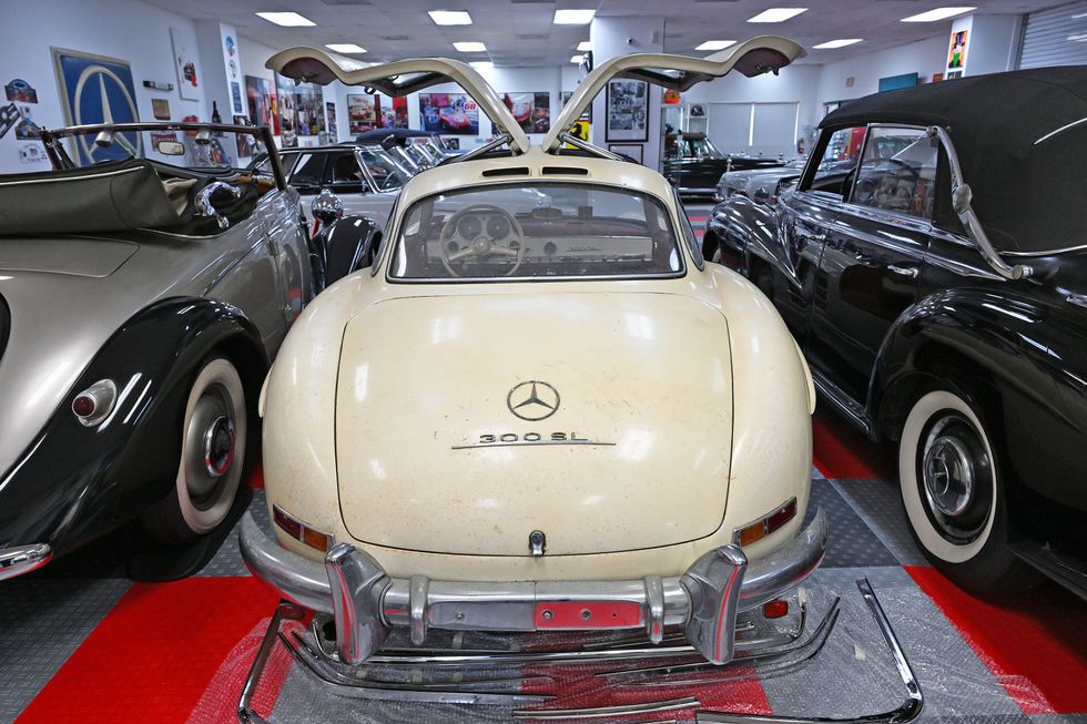 Gomez never drove the 300 SL, instead opting to sit in it once. He found the seating position “rather uncomfortable.” Still, it’s a unique vehicle. “There aren’t too many 1955 300 SLs that are in this type of condition,” said Palm Beach Classics owner Sydney Vallon, whose company is brokering a sale or restoration of the Mercedes.