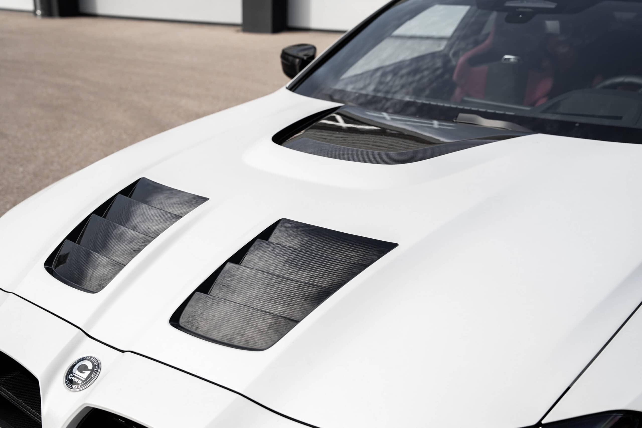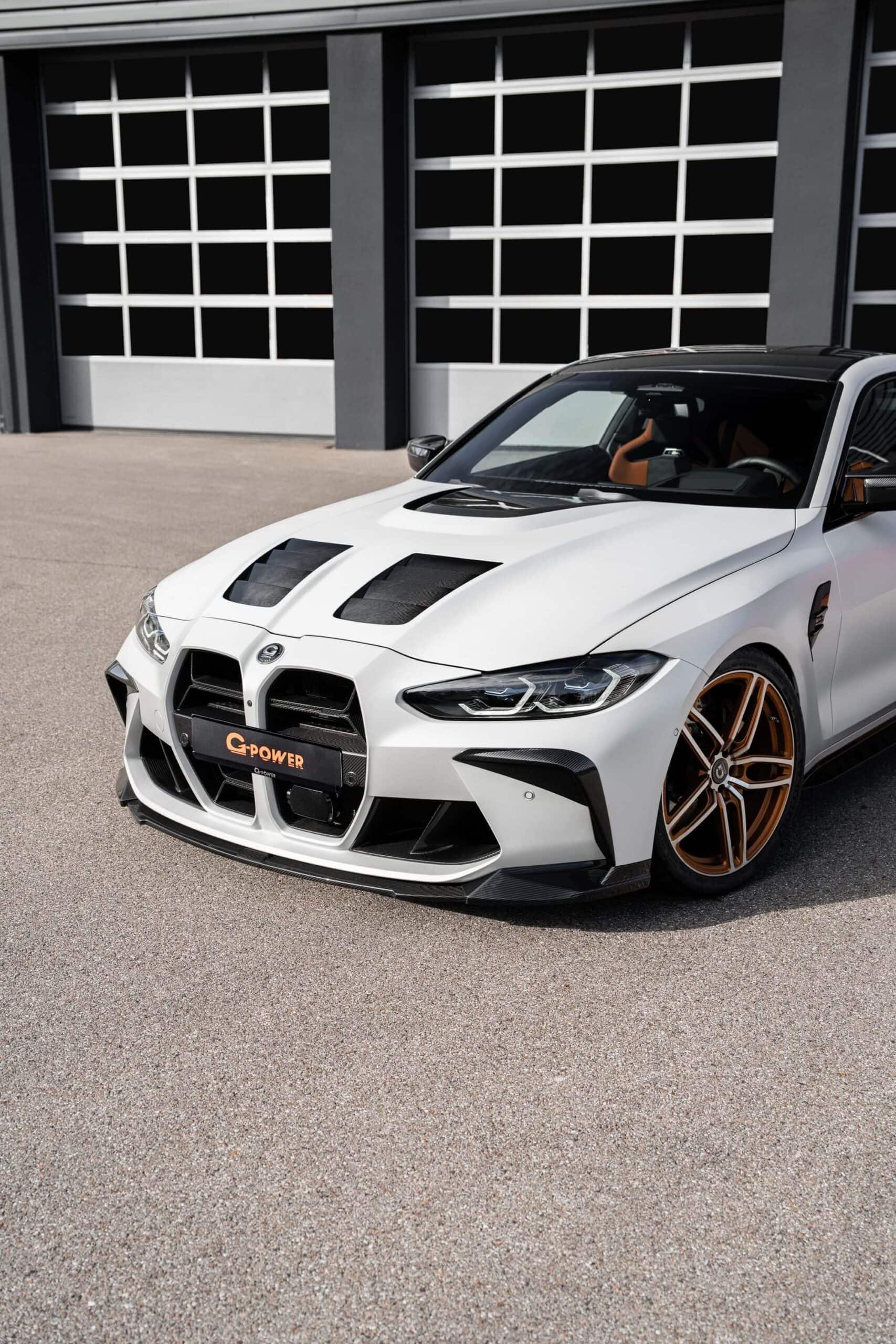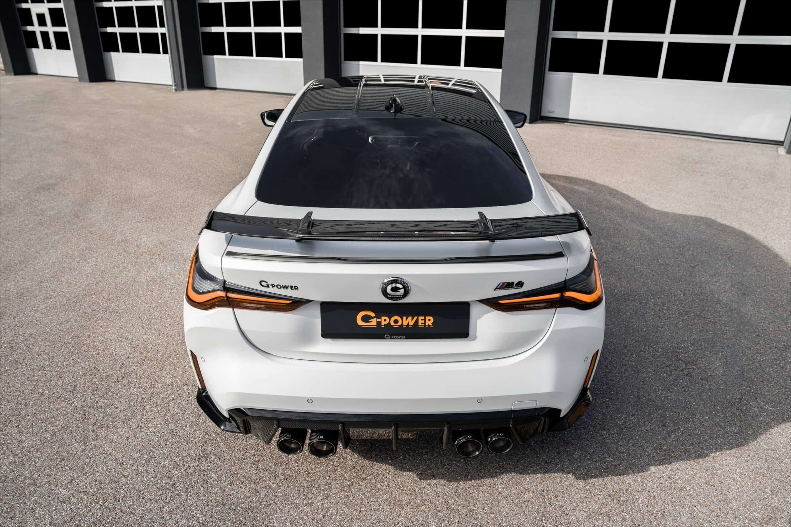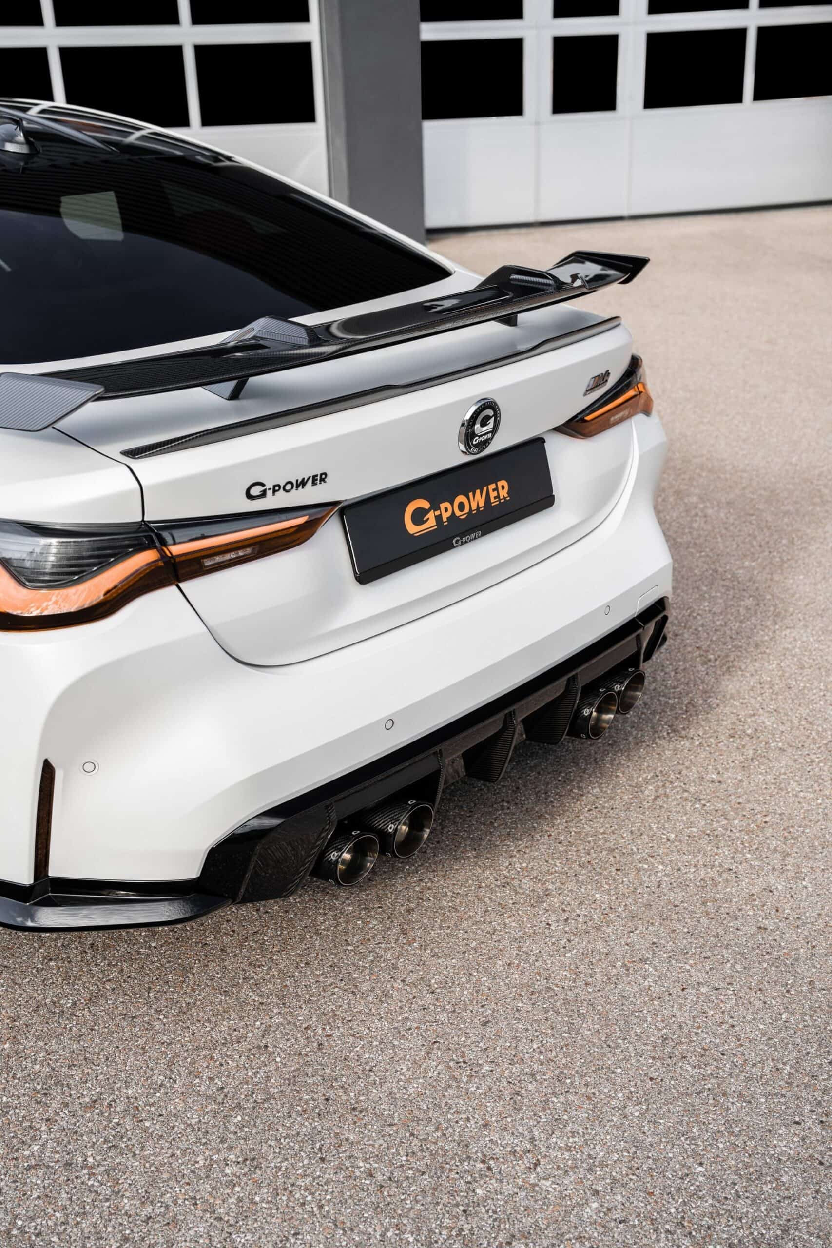 Painted in an Individual Frozen White matte color, the amped-up G82 has had its twin-turbo inline-six boosted for significantly more oomph. The 3.0-liter engine now churns out 700 hp and 850 Nm (627 lb-ft) after tweaking the S58’s software and upgrading the exhaust. G-Power equipped the M4 with an aftermarket stainless steel exhaust featuring custom downpipes and 200-cell catalytic converters. For a bit more visual drama, the quad tips are now covered in carbon fiber.