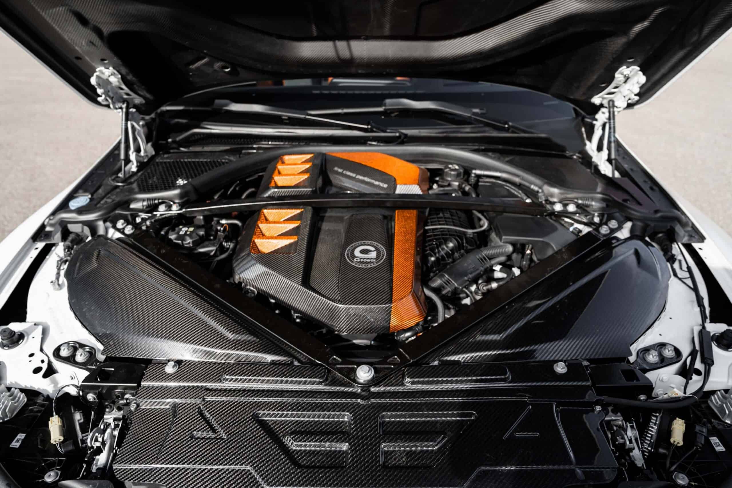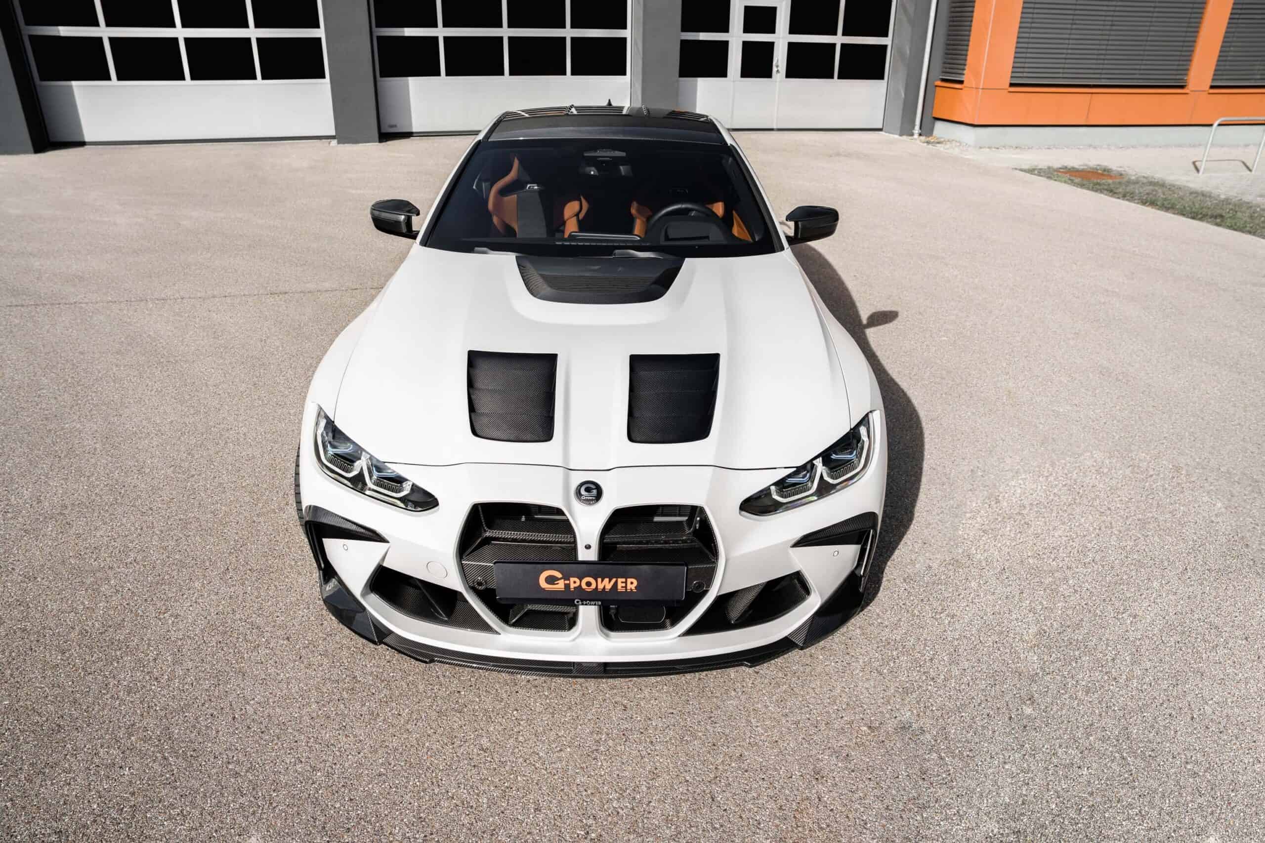 You can immediately tell that this isn’t your run-of-the-mill M4 Competition from just about every angle. This G82 build, from the vented hood to the rear wing, has undergone a comprehensive makeover. G-Power has added beefier side skirts, a prominent front spoiler lip, and a carbon fiber kidney grille. Notably, they swapped out the famous BMW roundel to make room for their own logo.