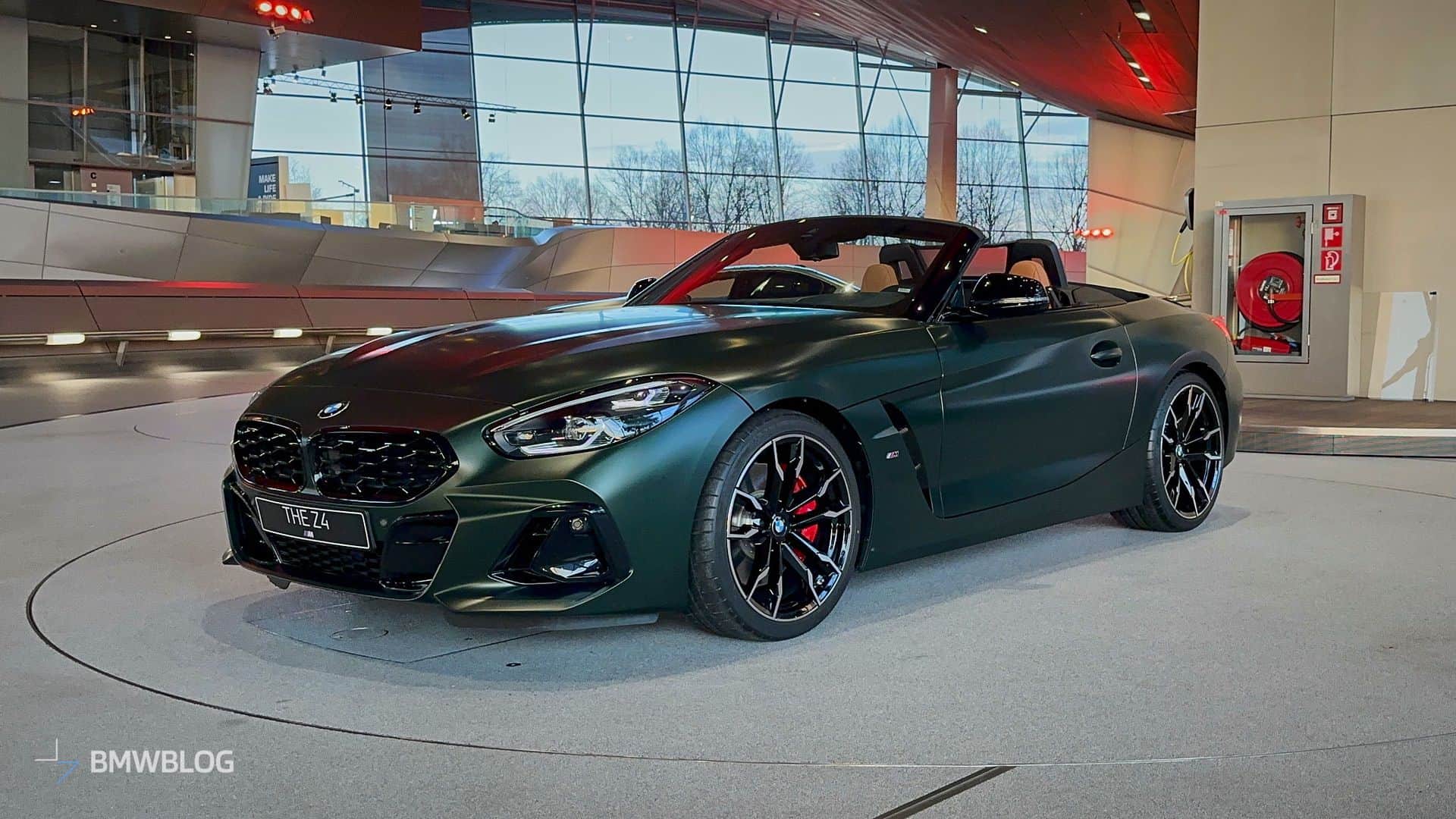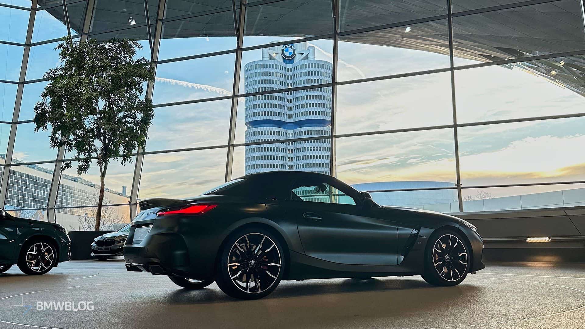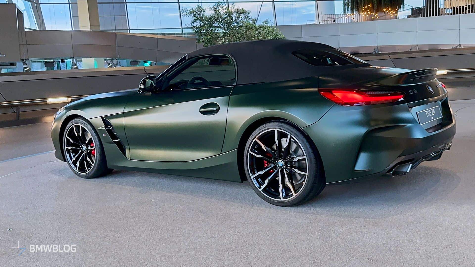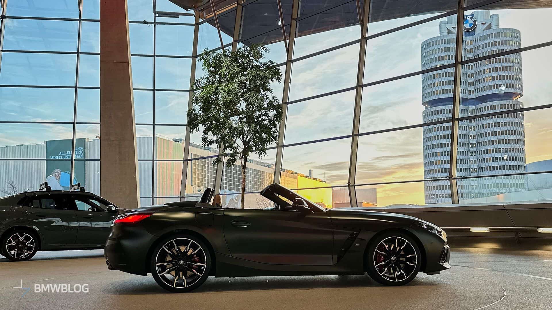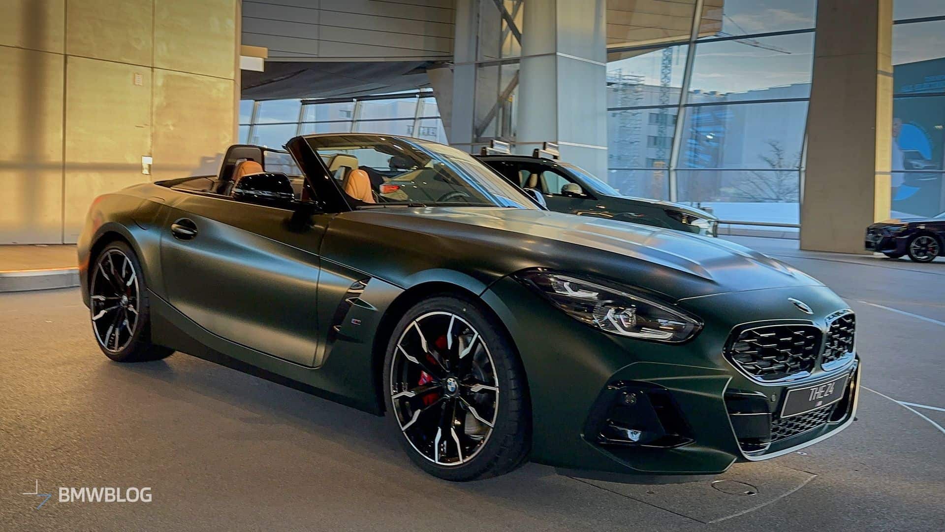 BMW is finally putting a manual gearbox in the Z4 M40i and is understandably proud to showcase the three-pedal M Performance roadster at the Welt. We’re in Munich and we couldn’t resist the temptation to shoot the stylish convertible in all its Individual glory. Made famous by the M5 CS, this Frozen Deep Green matte paint looks the part on the “analog” open-top sports car.