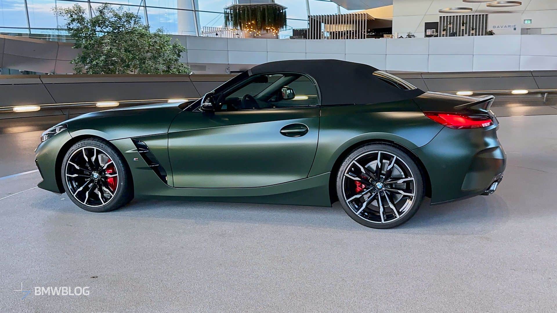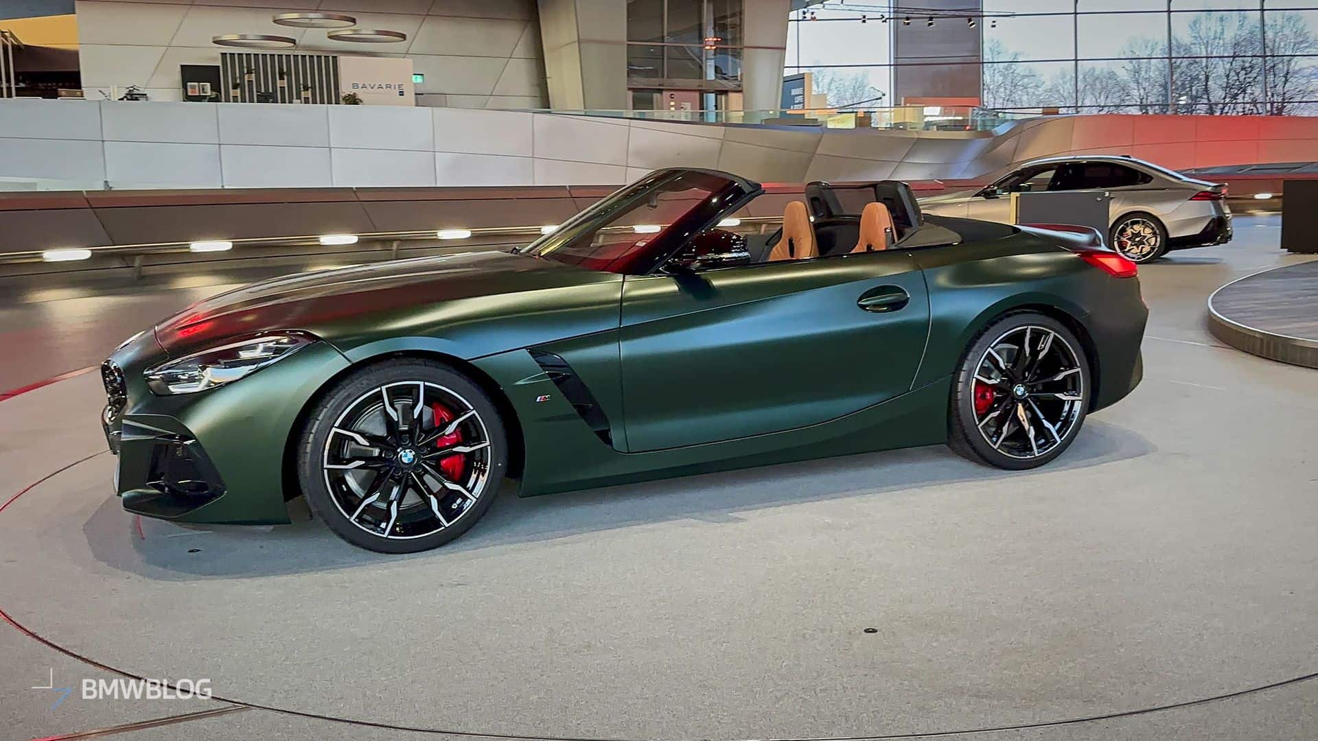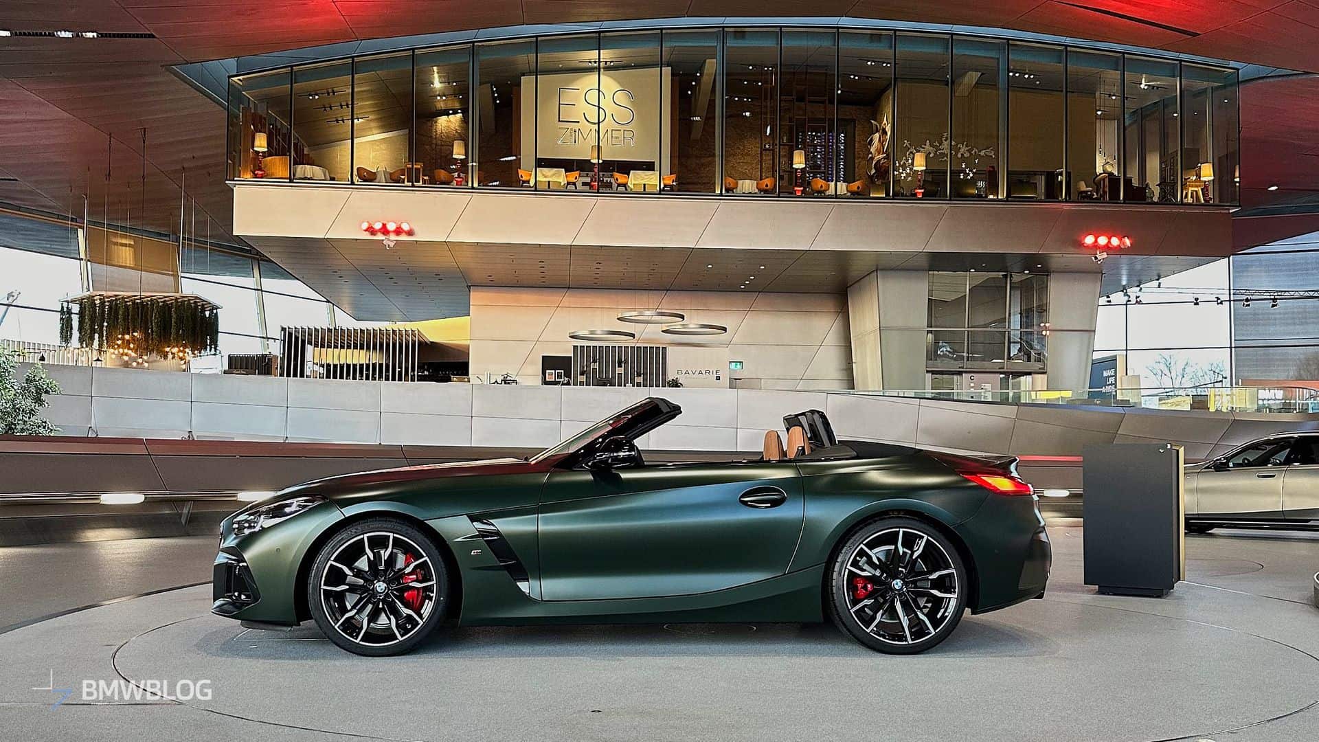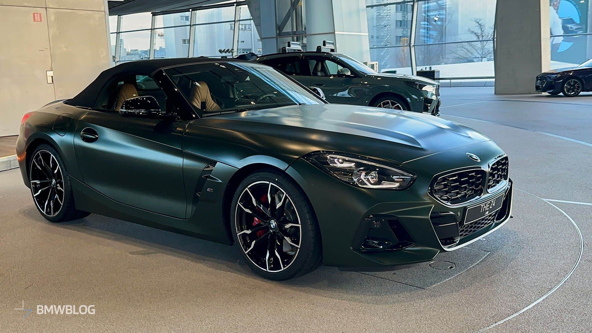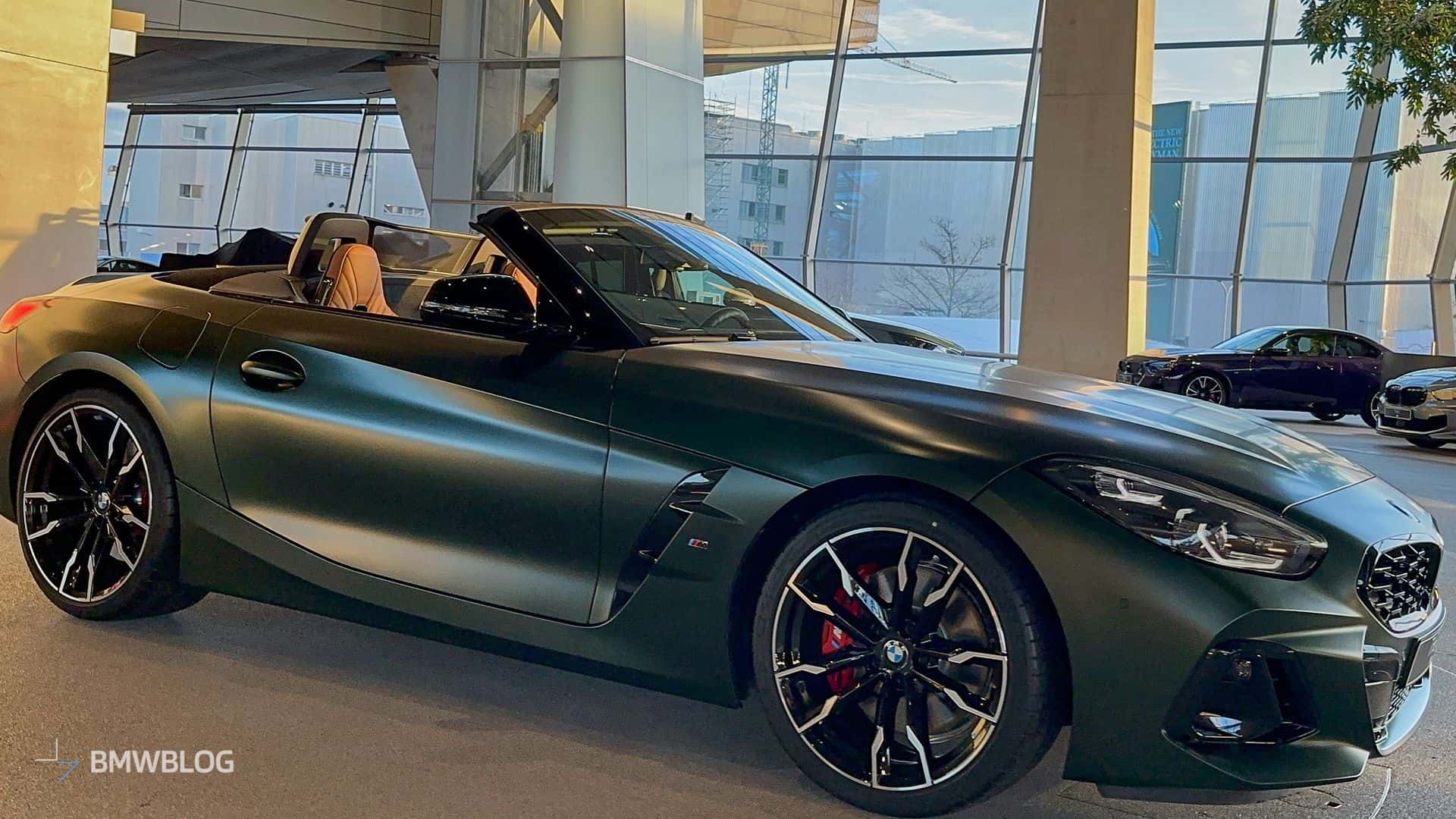 BMW is finally putting a manual gearbox in the Z4 M40i and is understandably proud to showcase the three-pedal M Performance roadster at the Welt. We’re in Munich and we couldn’t resist the temptation to shoot the stylish convertible in all its Individual glory. Made famous by the M5 CS, this Frozen Deep Green matte paint looks the part on the “analog” open-top sports car.