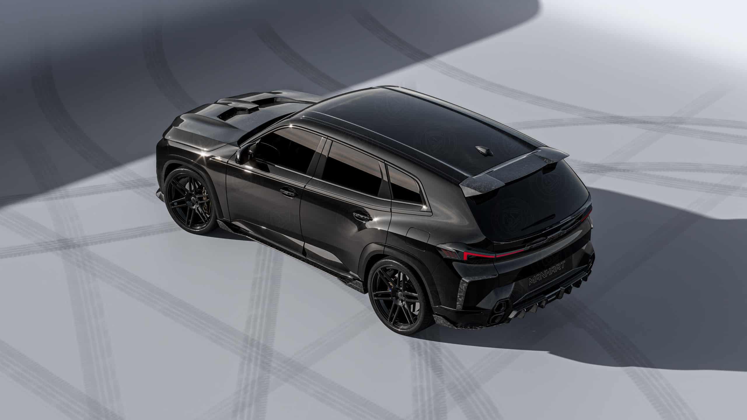 The pièce de résistance has to be the bulging hood featuring a pair of power domes bisected by a central strut. Manhart installed a huge splitter to make the front end look even more dramatic. Moving to the back, a roof spoiler and another aero element on the tailgate below the glass enhance the overall aesthetic. The stacked exhaust tips from the factory now flank a redesigned diffuser. Interestingly, the taillights are now interconnected through a carbon fiber trim piece with an XM logo in the center.