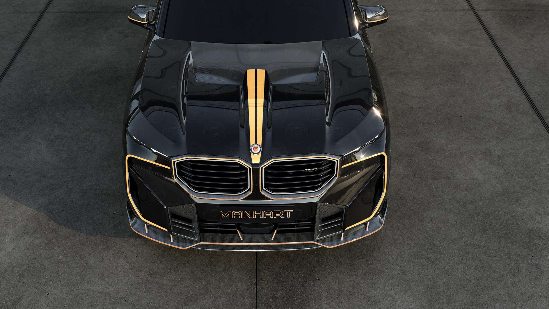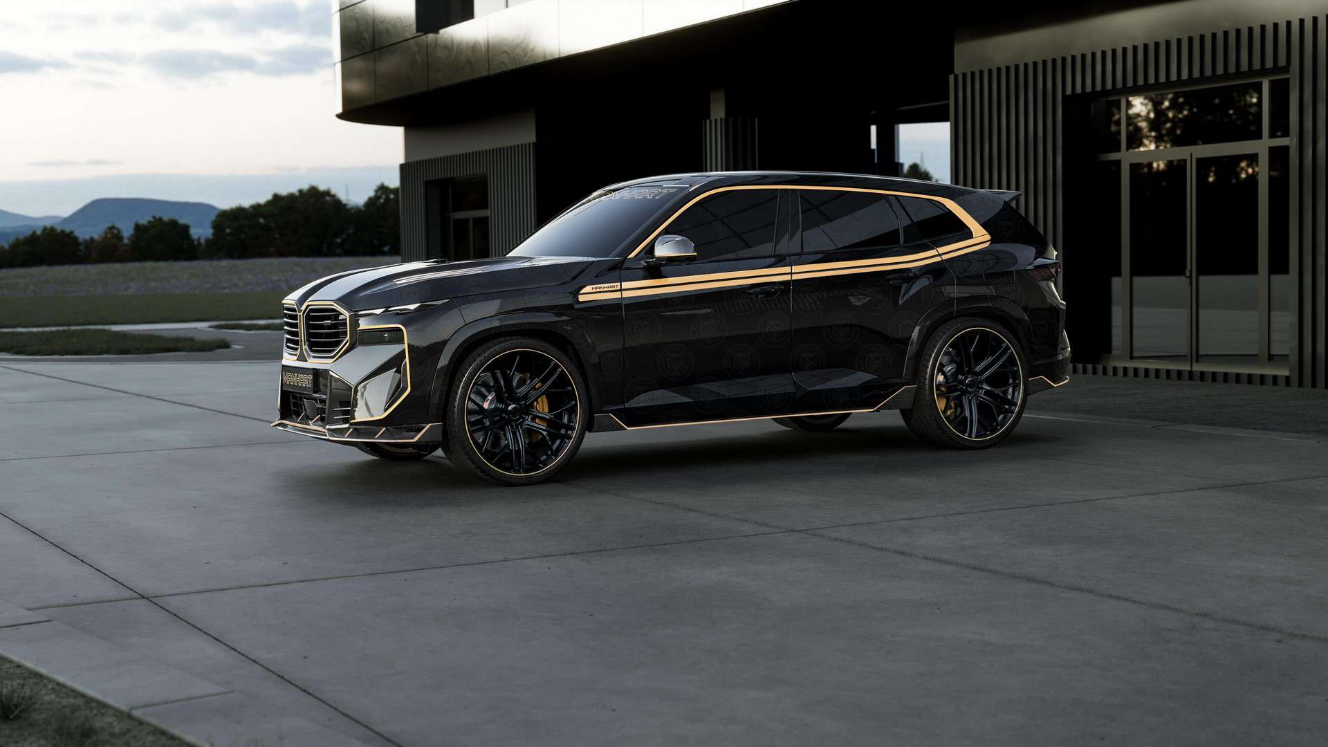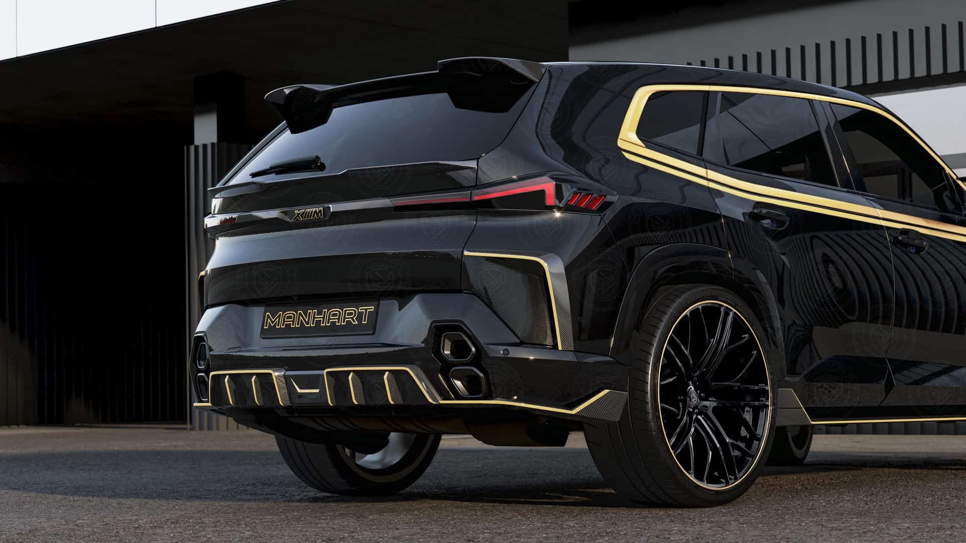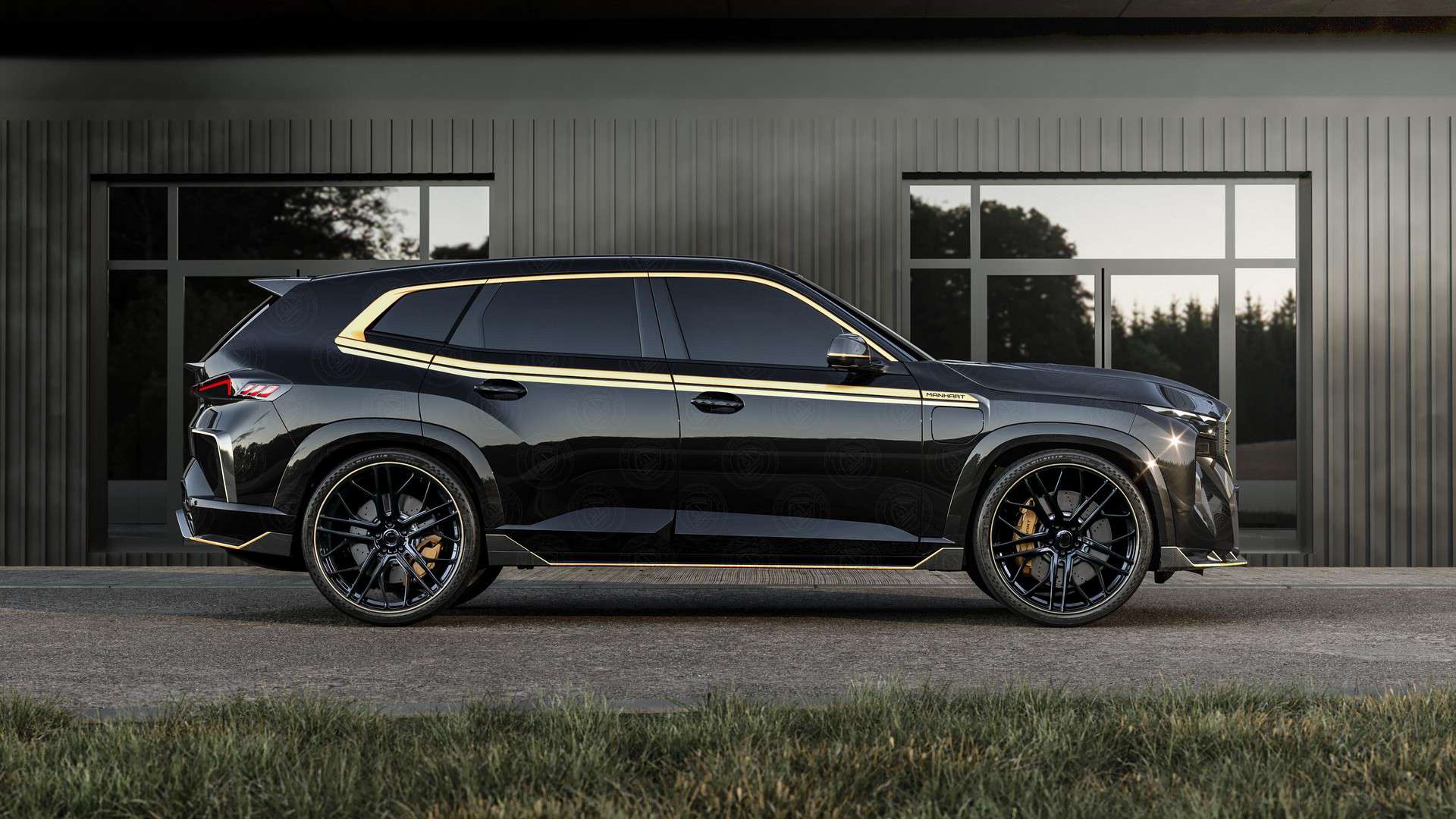 Custom wheels and Manhart’s typical contrasting gold accents round off the brutal makeover the controversial M model has received. These official renderings depict the electrified SUV with the tuner’s logo plastered all over the body, but we’re honestly not sure how many customers would want that since it’s overkill. The XM depicted here without the gold accents has the more expensive forged carbon body kit for those who want to go all out.