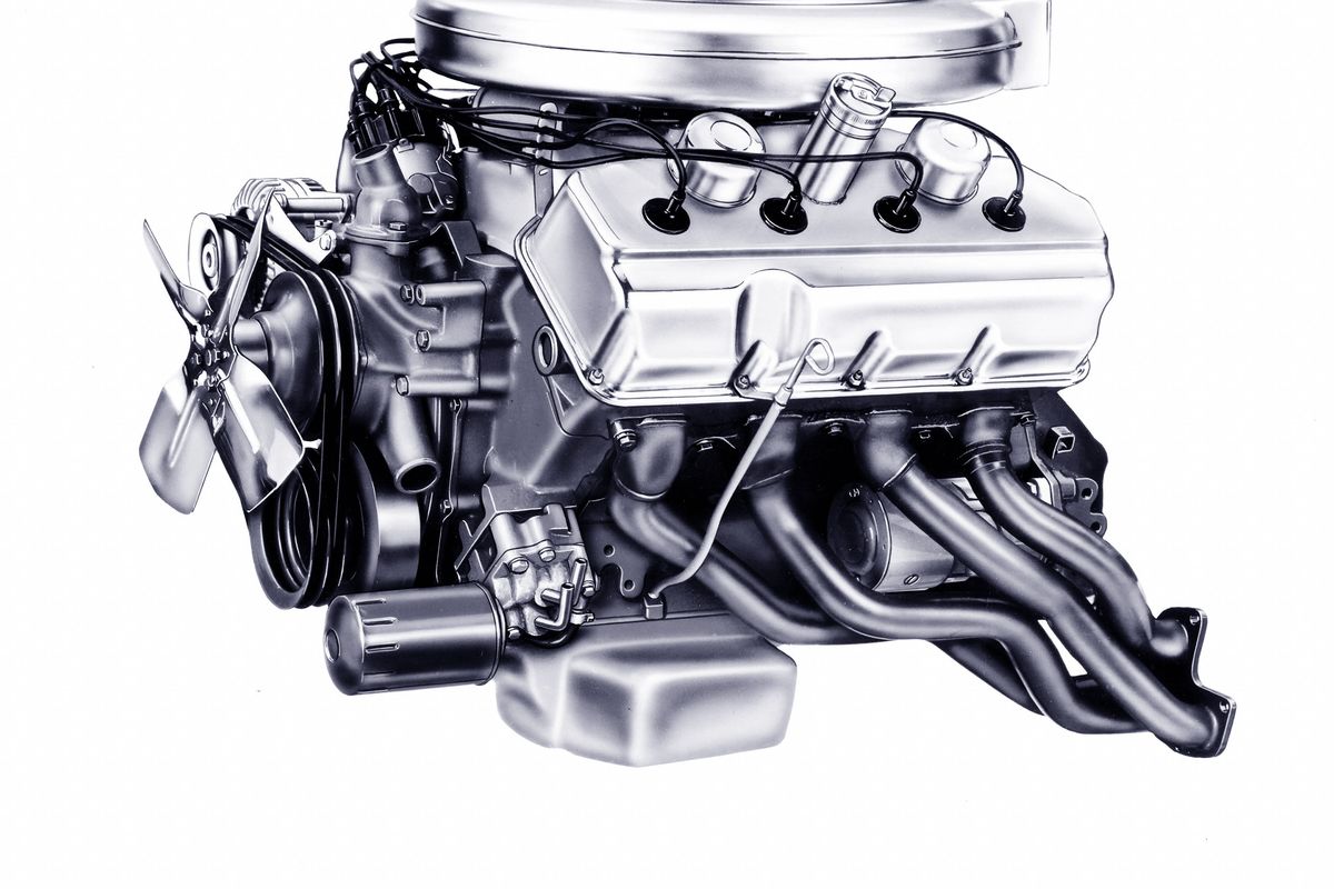(The ’66-vintage used the more distinctive and free flowing “bathtub” or “plenum ram” design intake) The carburetor was an 850-cfm with 1 11/16 x 1 11/16 in. throttle bores and “Le Mans-style” fuel bowls