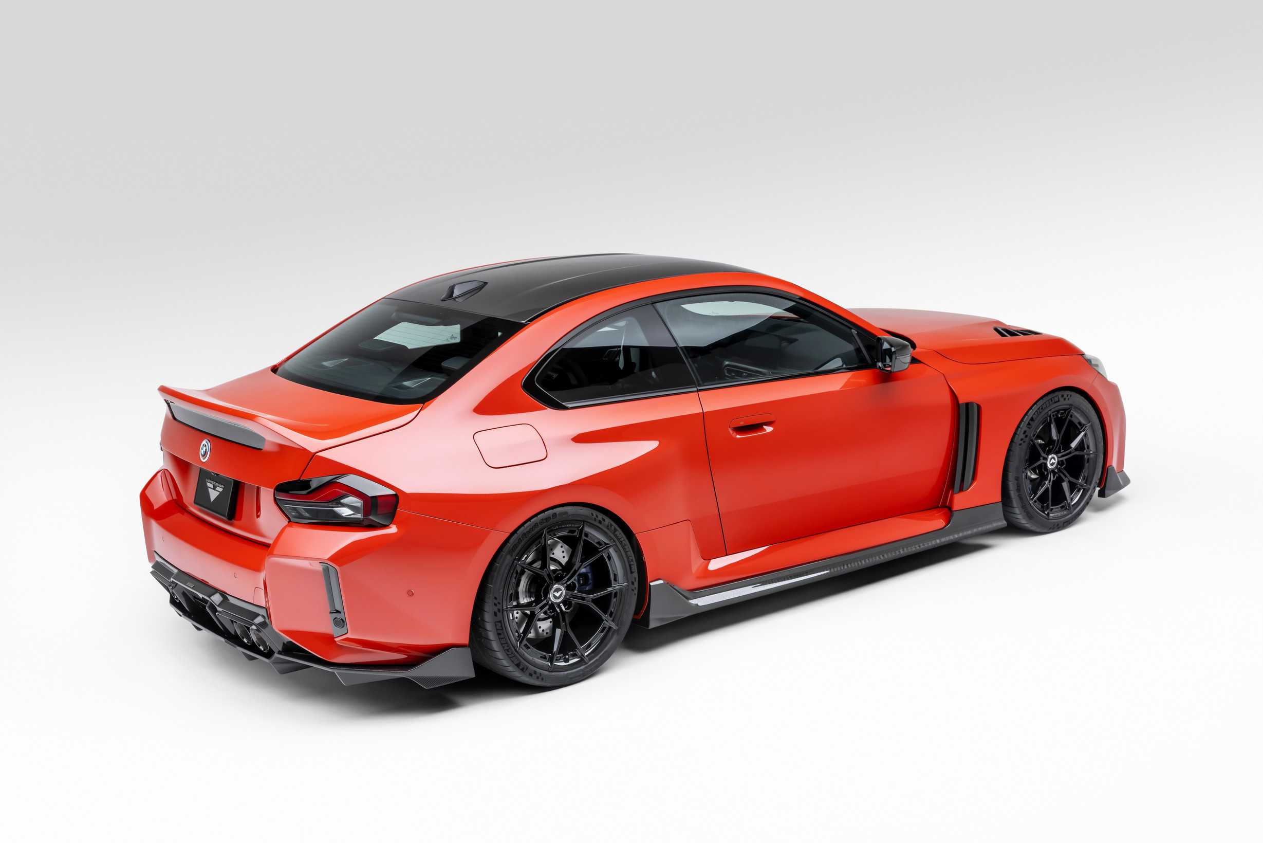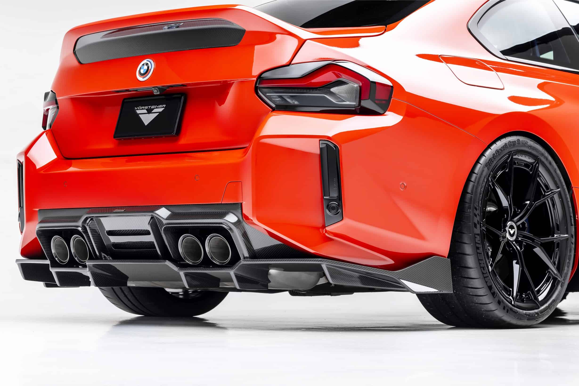 Much like the M2 CS we mentioned, Vorsteiner’s M2 VRS gets a ducktail spoiler neatly integrated into a carbon trunk lid as a nod to the M4 CSL and the M3 CSL before it. Alternatively, the tuner keeps the original panel to which it mounts a large wing for an even greater visual impact. Also at the back, the chunky diffuser looks like something you’d find on a race car. It’s also made from carbon fiber and is built around the quad exhaust tips.
