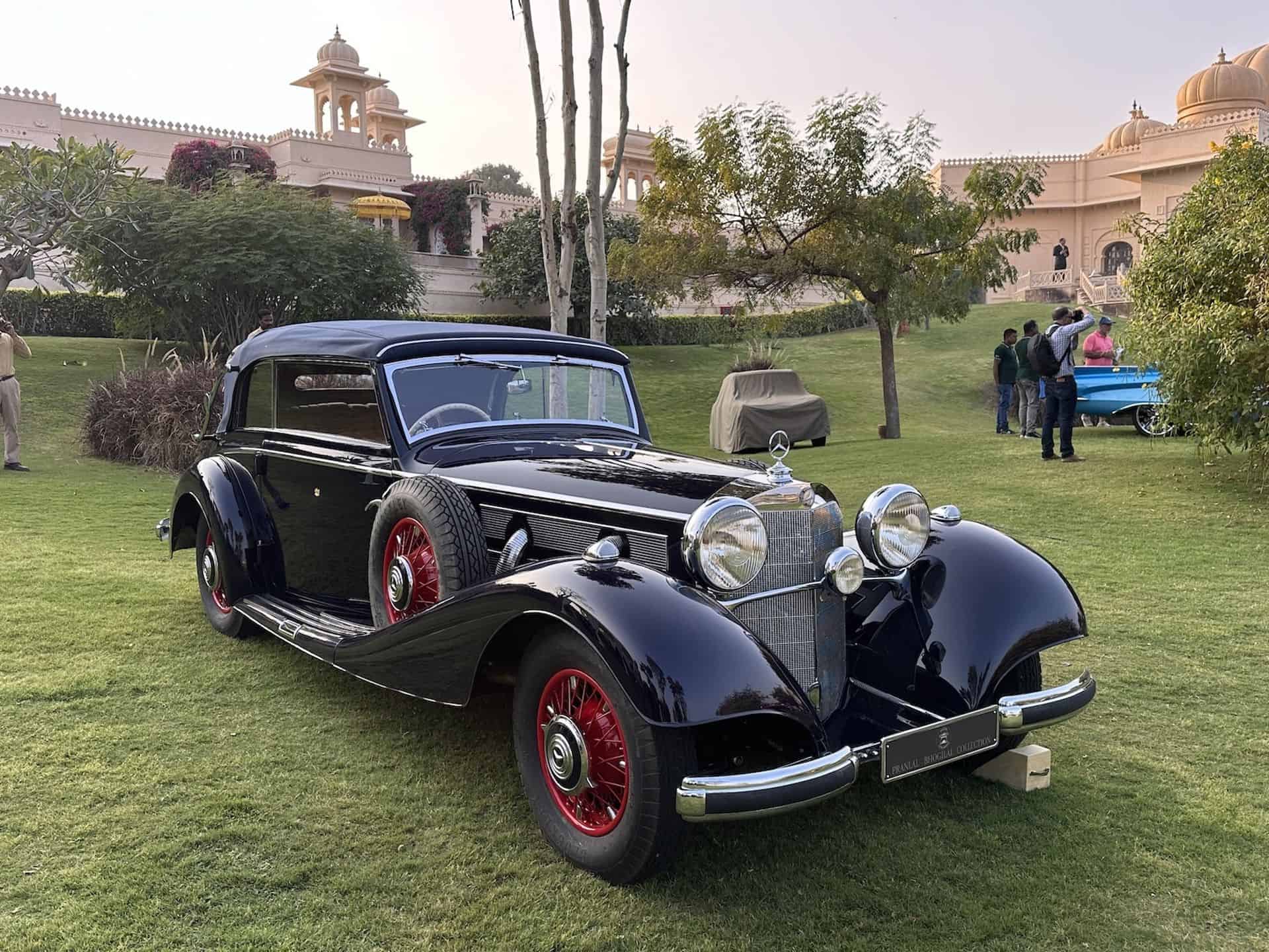 More spectacular than ever, beauties like the 1935 red Delahaye 135 MS Roadster by Maharaj Duleep Singhji of Jodhpur or the 1937 Mercedes 540 K Cabriolet B with a unique blue-red paint from the Pranlal Bhogilal Collection in Mumbai were presented in the warm sunlight. This collection, India’s first official vehicle collection established in the late 1940s following independence, has grown to include more than 100 notable classics worldwide. The automotive history of the subcontinent itself is unique.