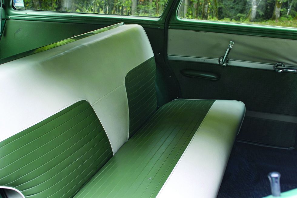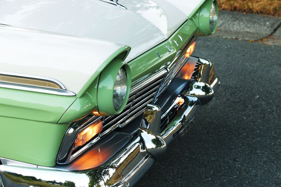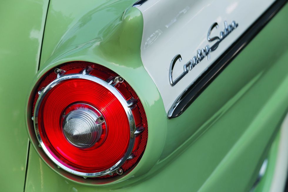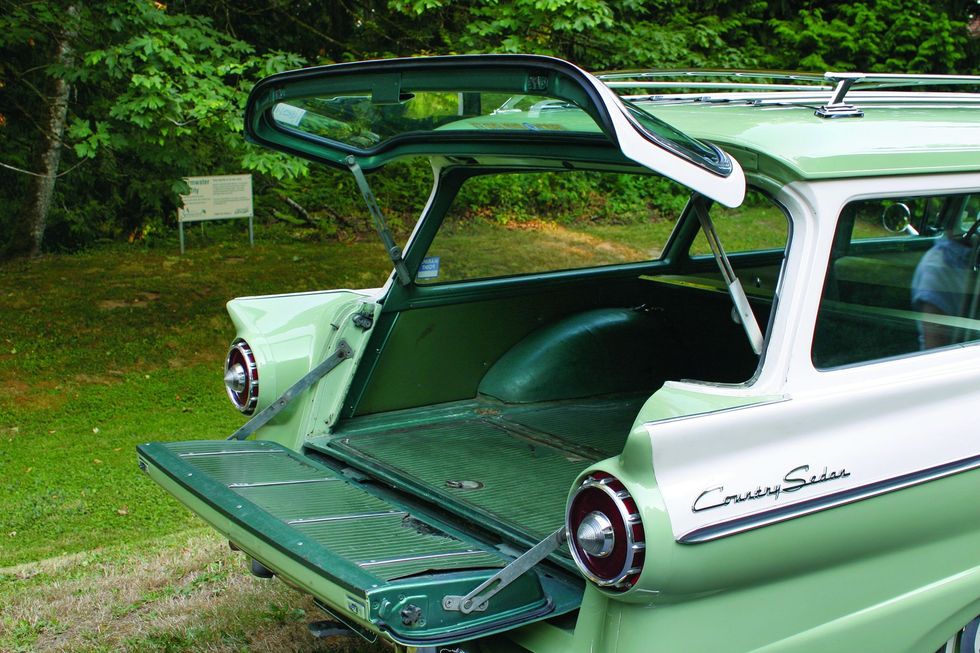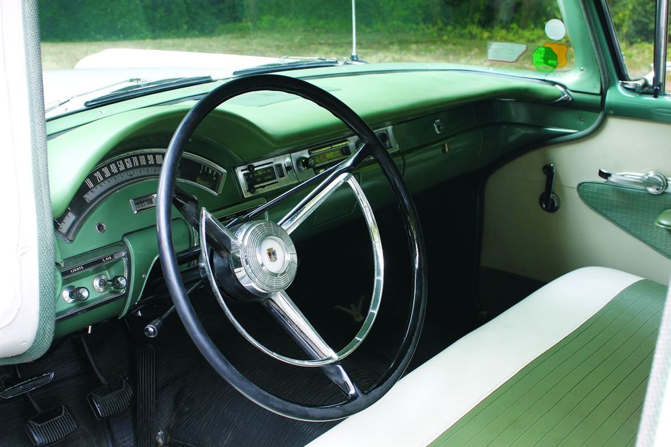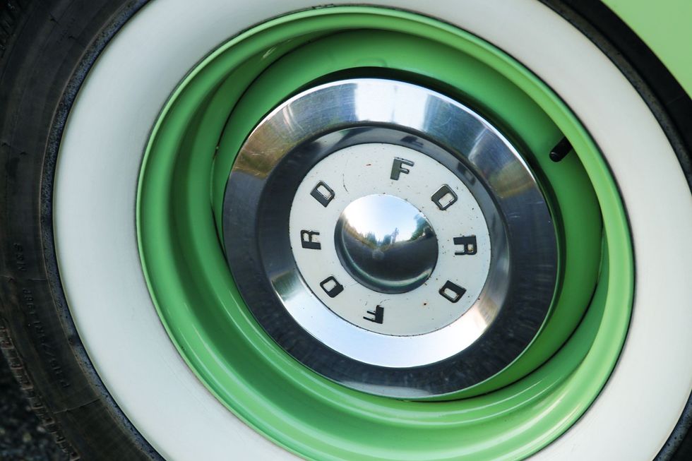 While Frank and Cathy have enjoyed owning the wagon for the past 23 years, Frank has been surprisingly restrained in what he’s done to it. “The car was a good driver when we got it, so we’ve mostly just enjoyed it. It was hit in the front at some point when Jerry owned it, and when it was repaired, the car got a full repaint in its original Willow Green and Colonial White two-tone. Unfortunately, the work also included replacing the damaged trim spears on the front fenders with incorrect Fairlane trim, which presented a slight mismatch where the trim transitions to the doors. It took me awhile to find nice correct spears, but I eventually replaced them. I also replaced the headliner, and of course general maintenance items. That’s really all I’ve ever done to it.”