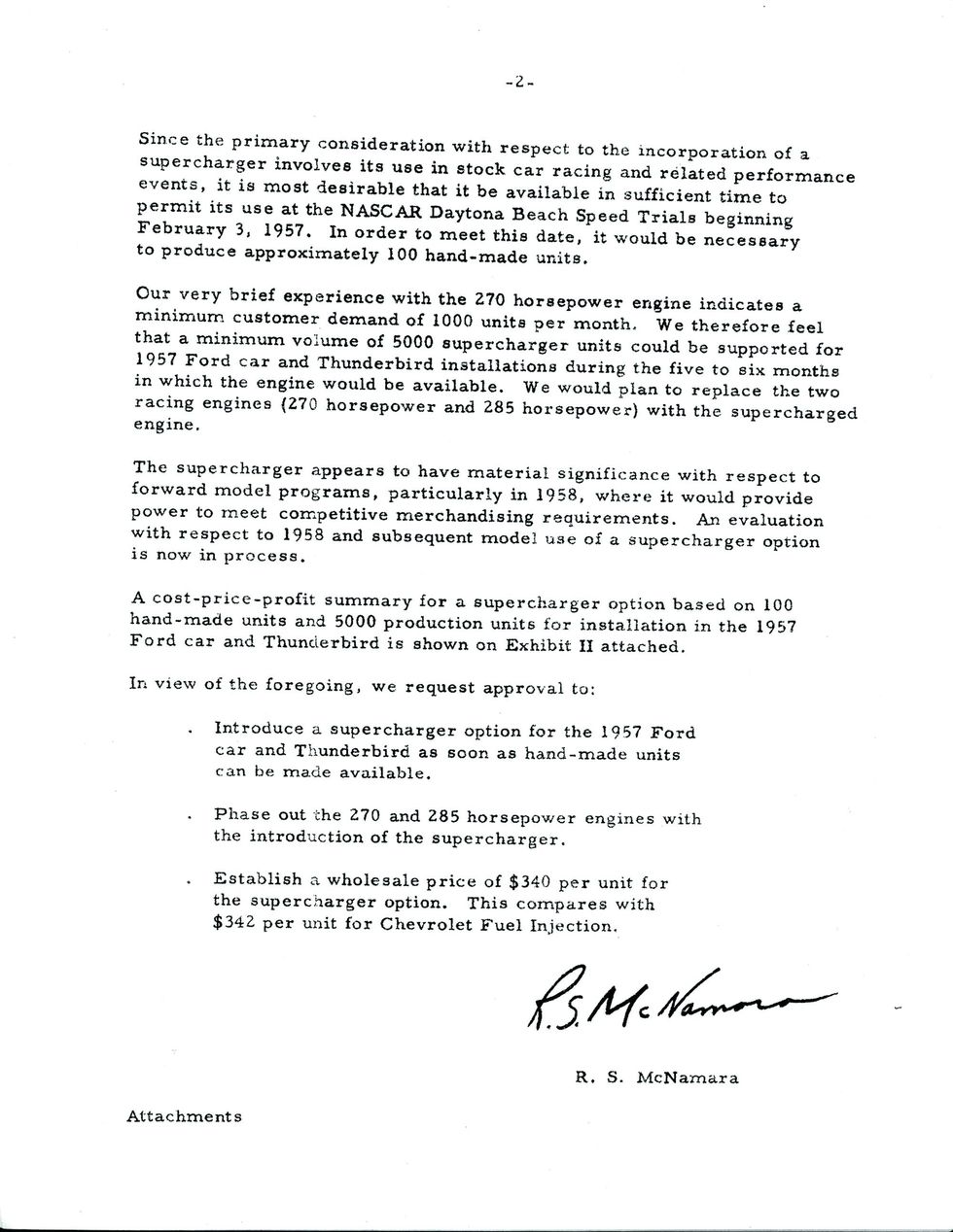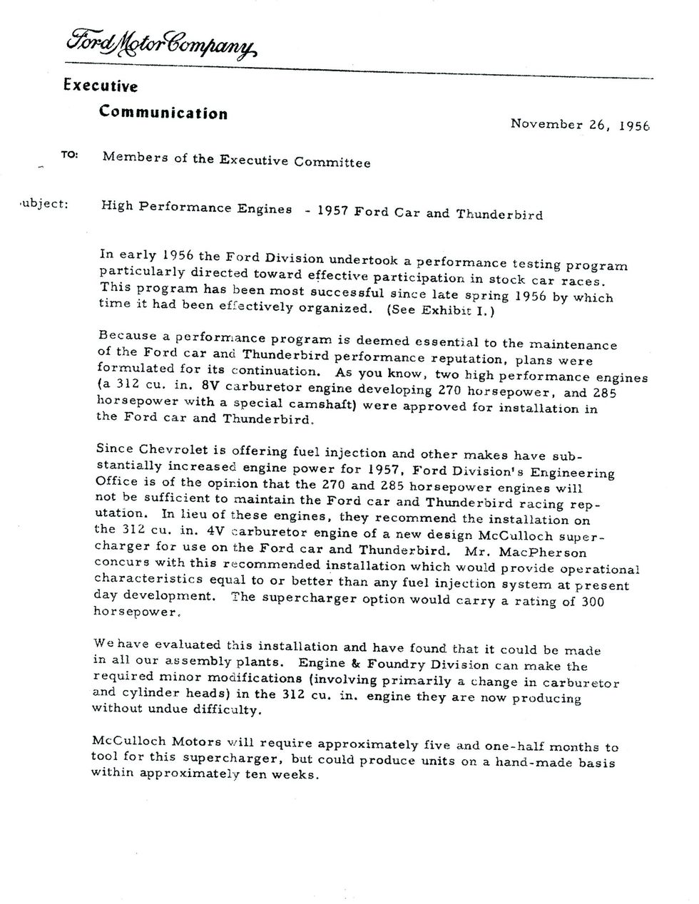 Questions relating to the correct attribution for VS and VR blowers of this era have long existed, with some calling them McCullochs, others McCulloch/Paxtons, and others Paxtons. We know that Paxton Products was established in 1950 and did the design and engineering for both superchargers, so where does the McCulloch name enter? It’s possible that McCulloch may have done the actual manufacturing, and a good clue to this can be found in the 11/26/56 Ford letter found elsewhere in this story. It states, “McCulloch Motors will require approximately five and one-half months to tool for this supercharger but could produce units on a hand-made basis within approximately ten weeks.” What’s clear is that the companies themselves identified the blowers as McCulloch during this timeframe, and that’s good enough for us. Paxton Products was sold to the Granatelli brothers in 1958, and subsequent products were clearly known by the Paxton name.