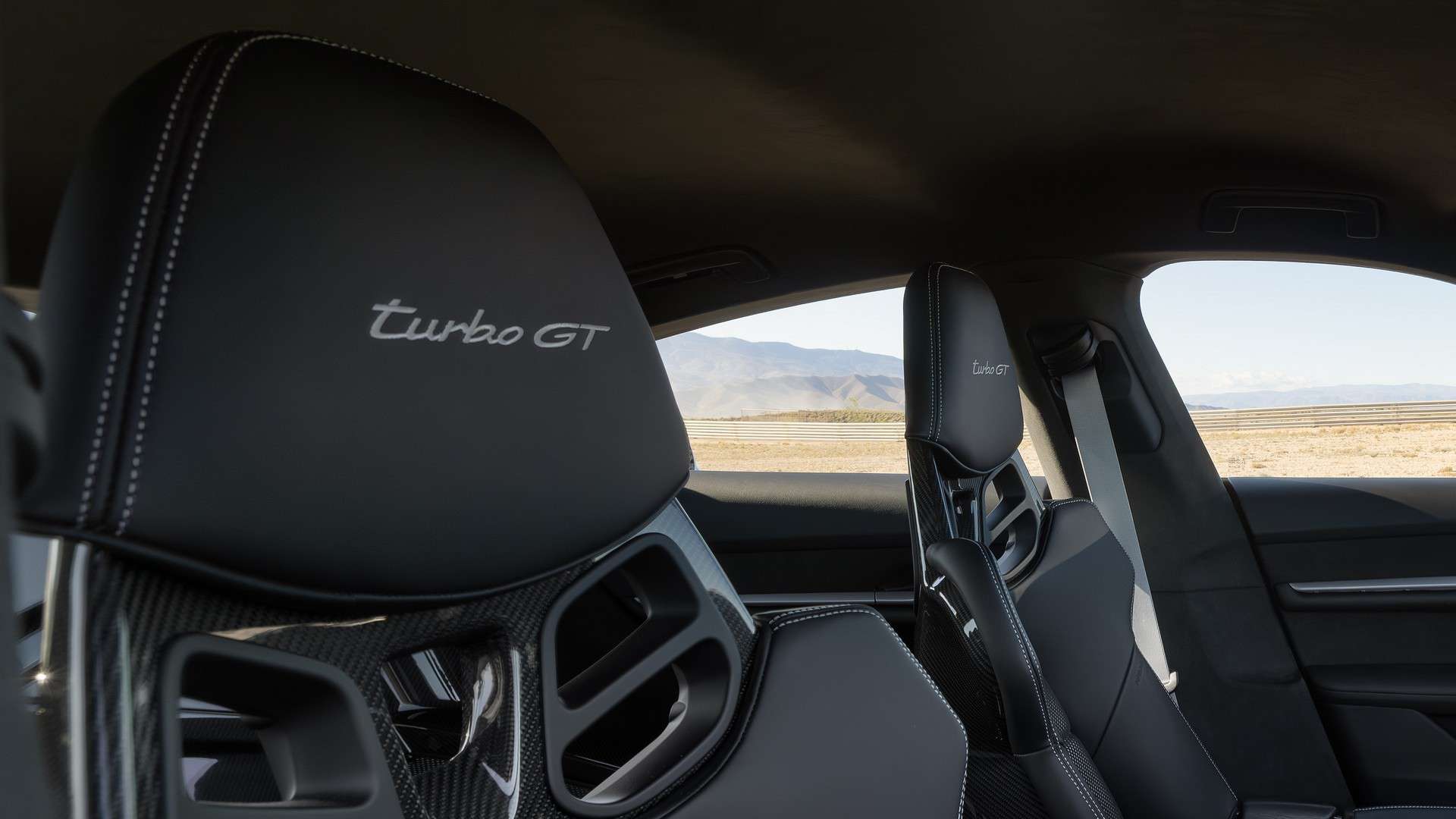 Just as impressive is the 0-124 mph (0-200 km/h) sprint in 6.6 seconds for the regular Taycan Turbo GT or 6.4 seconds if you get the hardcore Weissach Package. The latter is a no-cost option and removes 157 pounds (71 kilograms) of fat by getting rid of the rear seats and speakers. It also has a simplified trunk that does away with the electric soft-closing feature. Both flavors of the electric sedan make extensive use of carbon fiber and have 21-inch forged wheels. Porsche throws in lighter ceramic composite brakes and an adaptive rear spoiler with a Gurney flap.