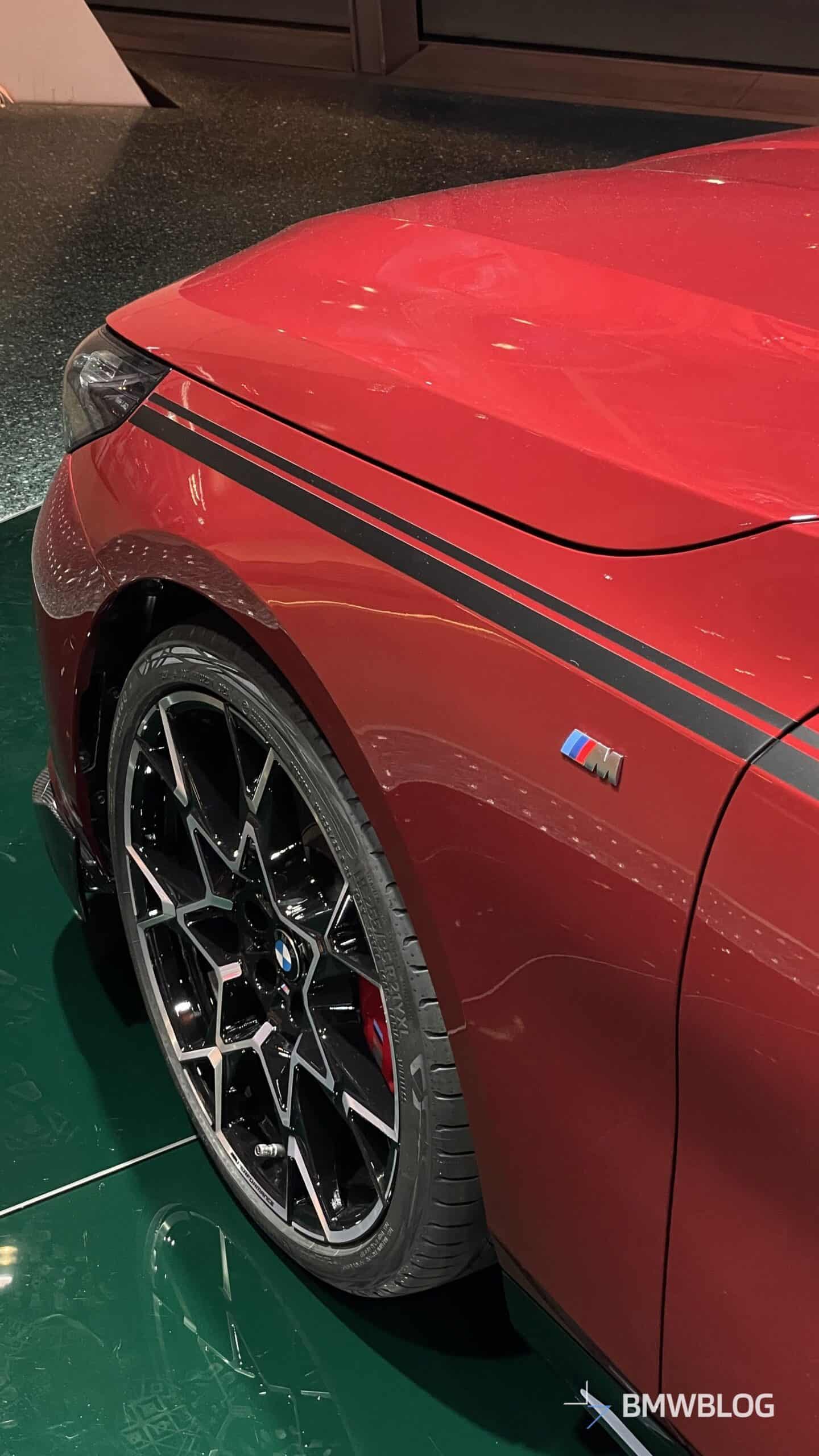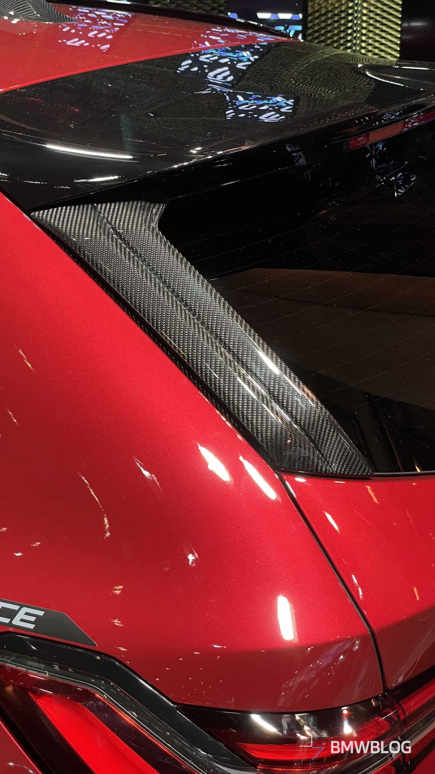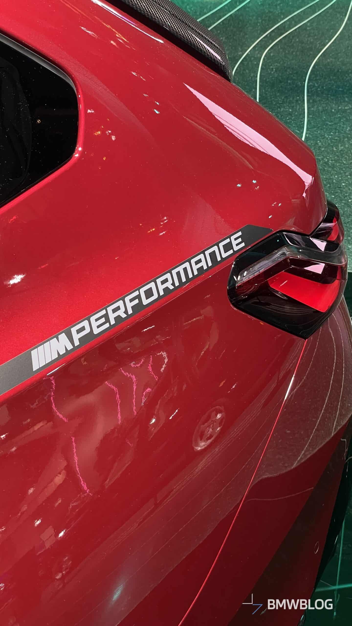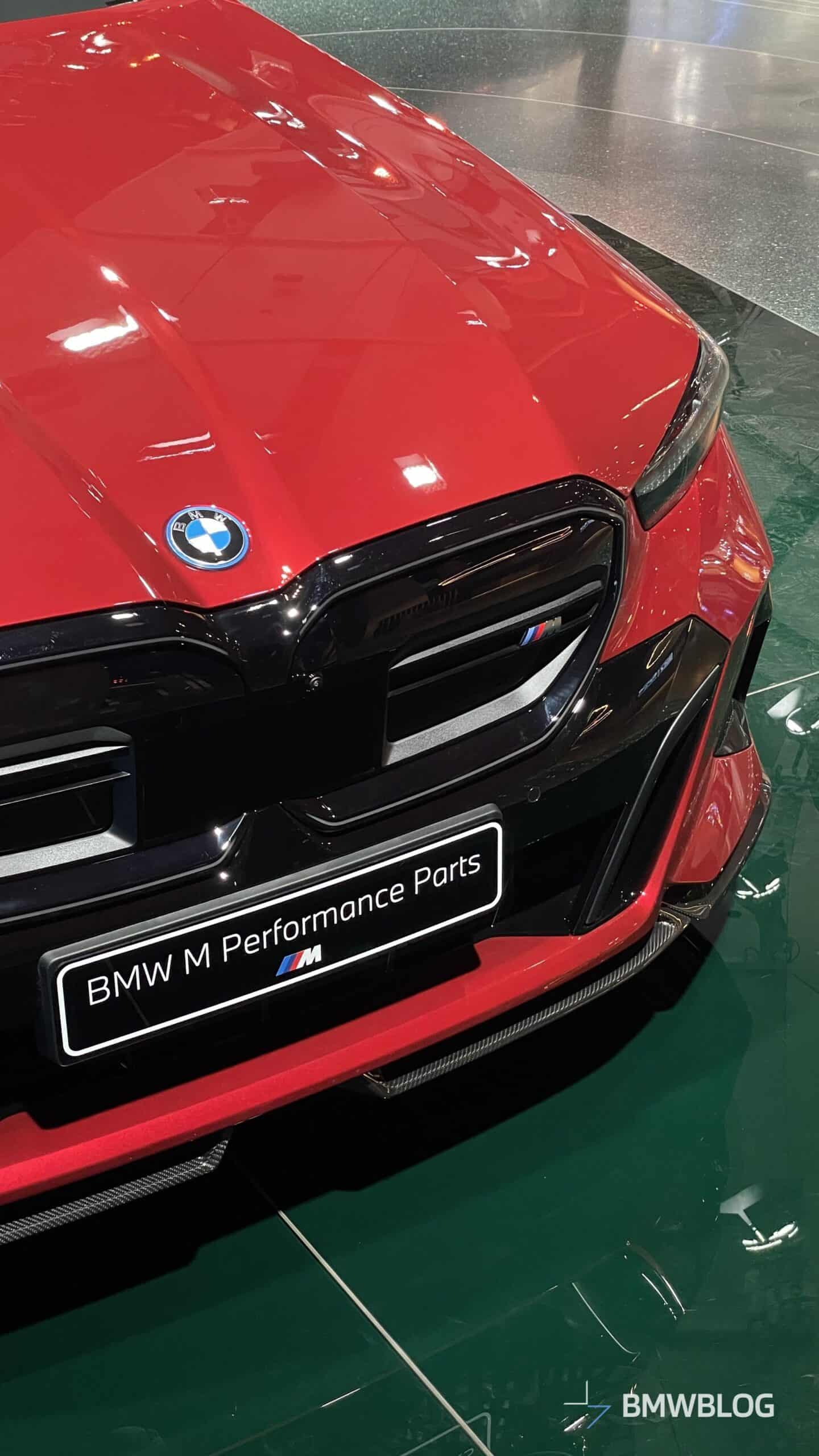 In an exclusive reveal at the BMW Welt, the first photos of the BMW i5 M60 Touring adorned with M Performance Parts have captured our attention today. The new M-tuned touring, painted in an eye-catching Fire Red, showcases a wide range of M Performance parts, starting with the usual carbon fiber aero bits.