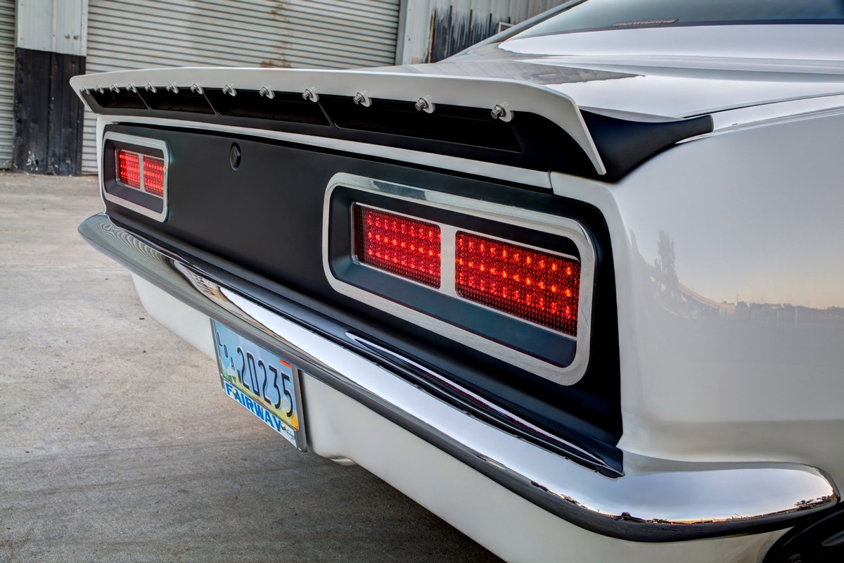 The Camaro’s front grille was custom-made, and the lower front valance was extended, not only for a distinctive appearance but also to accommodate a larger diameter fog light. The body was sprayed in Henrich’s favorite PPG Summit white paint, ensuring the car’s appearance was as stunning as its performance.