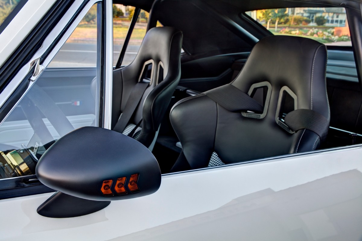 Behind the Forgeline wheels are a set of Wilwood 14″ brakes with highlighter yellow calipers, reminiscent of Porsche Carrera design cues. These brakes compliment the wheels and suspension package.