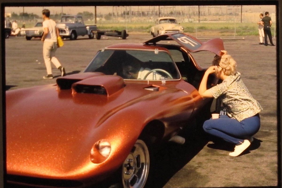 Even before Bill Thomas’s Cheetah factory burned down on September 9, 1965, this young couple was making and drag racing the virtually identical GTR prototype. Bill Thomas Race Cars had contracted with Marv and Darlene Eldridge’s Fiberglass Trends to create the first fiberglass Cheetah body for road racing, splashing molds from one of two aluminum prototypes. Thomas promptly switched vendors, and Fiberglass Trends used the rejected molds to create street or strip GTRs offered in any stage from a 120-pound body ($550) with plexiglass windows (add $125) to a rolling chassis. Marv drove this SBC-powered shop car to many Modified Sports trophies and records before graduating to Funny Cars. Later GTRs are identifiable from BTRC Cheetahs by A-pillars added to reinforce windshields at drag-strip speeds.