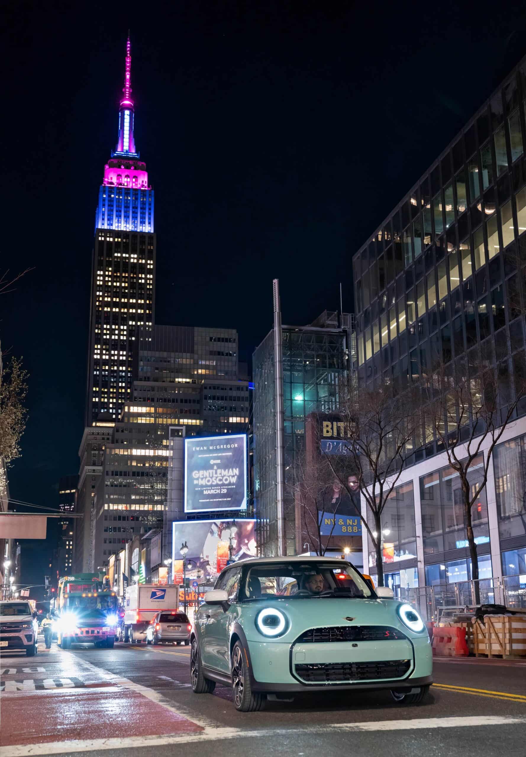 Exterior colors include the non-metallic Sunny Side Yellow and Chili Red II while the metallic paints are: Ocean Wave Green, Blazing Blue, Melting Silver III, Nanuq White, British Racing Green, and Midnight Black. Inside, there’s vegan upholstery in Beige and Nightshade Beige along with a combination of vegan and cloth upholstery in black/blue and grey/blue combinations. “Much like the dramatic presence of New York’s titanic skyscrapers on the compact island of Manhattan, the MINI Cooper S is power and poise in a small, space efficient package.” said Mike Peyton, Vice President of MINI of the Americas. “Seeing the new, MINI Cooper S having fun on the streets of New York is a testament to MINI as a small, fun-to-drive car with a big heart.”