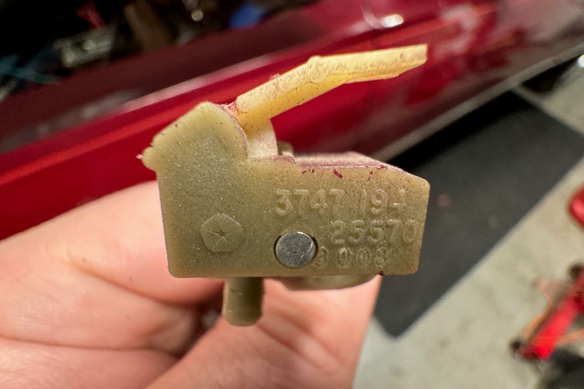 I have a 1977 Plymouth Fury and I recently encountered an electrical problem – it took me a month to identify the part that failed. The issue is the headlamp-warning and key-in buzzer stopped working. I discovered, by accident, that if I banged on the steering wheel, it worked temporarily. Further investigation determined a failed switch in the steering column. My problem is, I can’t locate the part in my factory parts book. My factory service manual identifies it as the “ignition key buzzer switch”.