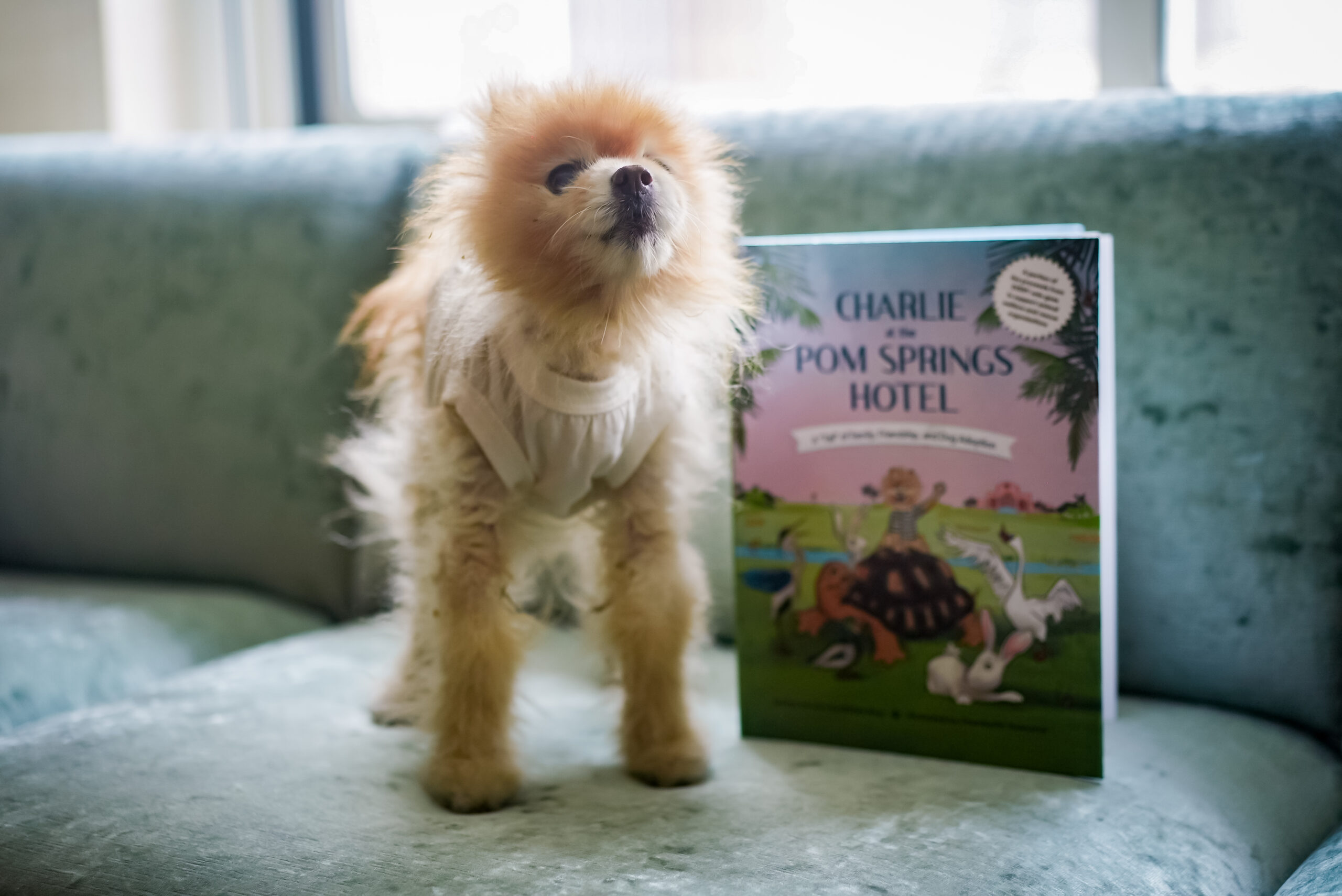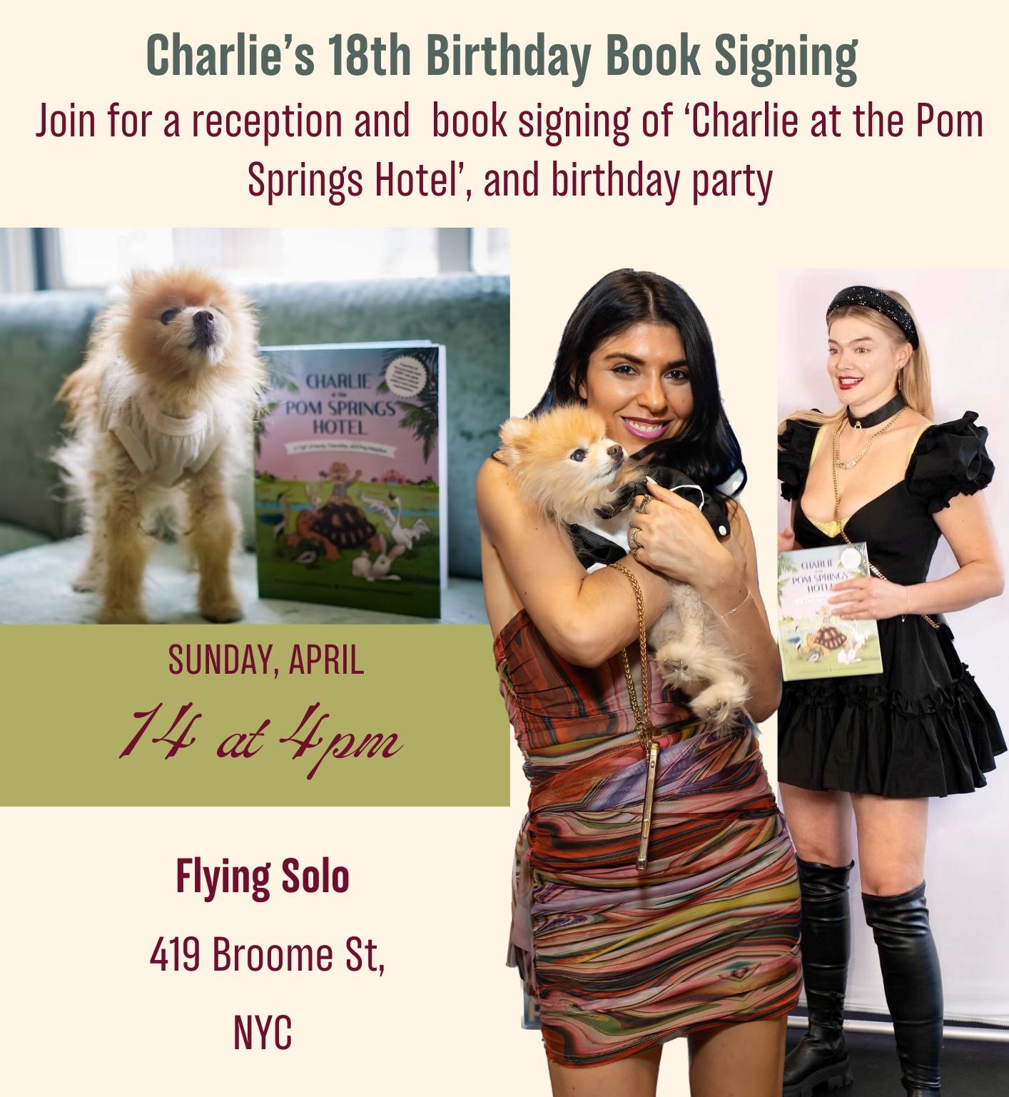 When your senior rescue dog, turned best-selling author, and beloved children’s book character, Charlie King of Charlie at the Pom Springs Hotel turns 18, we have to celebrate! We have a mix of adult, kids, and dog events below! If you’re in NYC, join us!