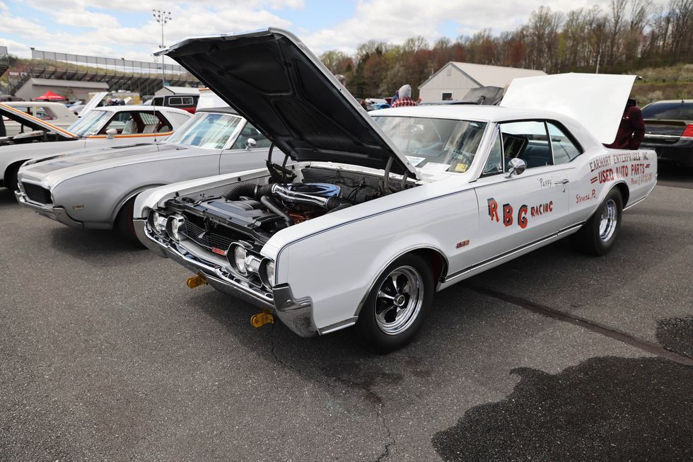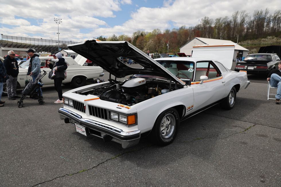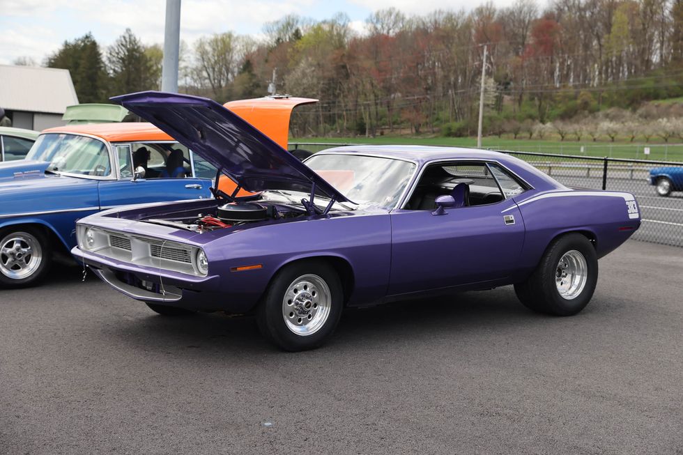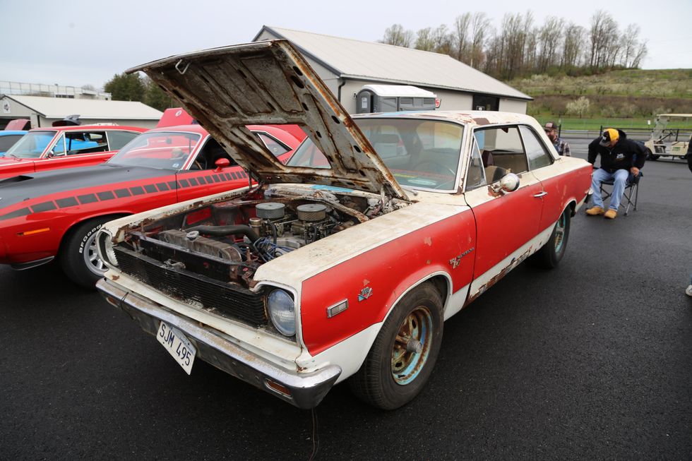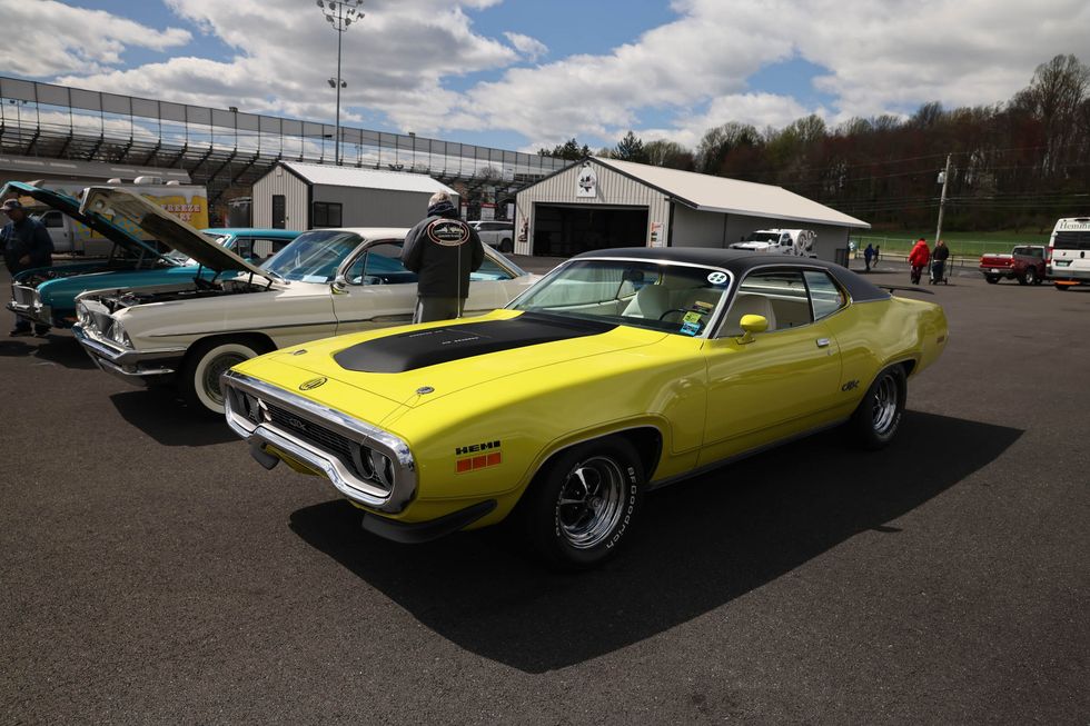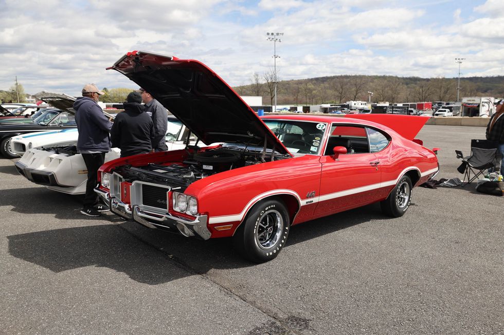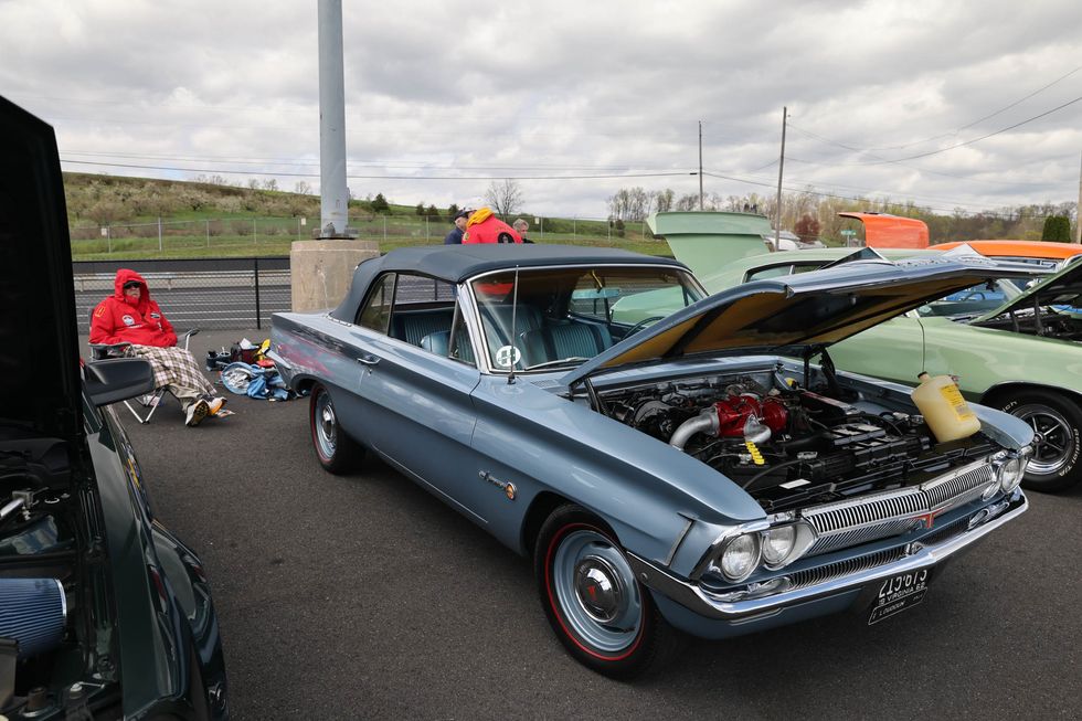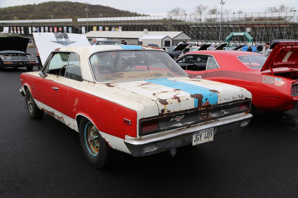 The car show field at the 2024 Hemmings Musclepalooza event at Maple Grove Raceway was exactly what you would expect to see: a colorful mix of some of the most notable and notorious muscle-packed machines of old and late-model. Despite the somewhat cold and dreary start to the morning, enthusiasts poured in through the gates and set up for the day. Hemi-powered royalty, big-block Buicks, Fords old and new, and even an AMC “The Machine” parked up. Owners chatted with spectators, eager to show off the details of their cars. Where else would you expect to see a bottle of Oldsmobile’s Turbo-Rocket fluid, or the full drag-racing history of a 4-4-2 in photos, or a Cougar Eliminator in Grabber Green posted up on the edge of a field like a wallflower? Look through our gallery of photos to see the machines that showed up and showed off at Maple Grove!